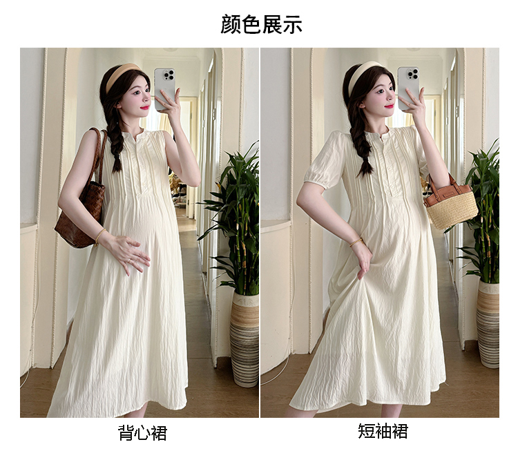 实拍孕妇新品夏装时尚宽松法式简约背心裙短袖孕妇连衣裙8299
