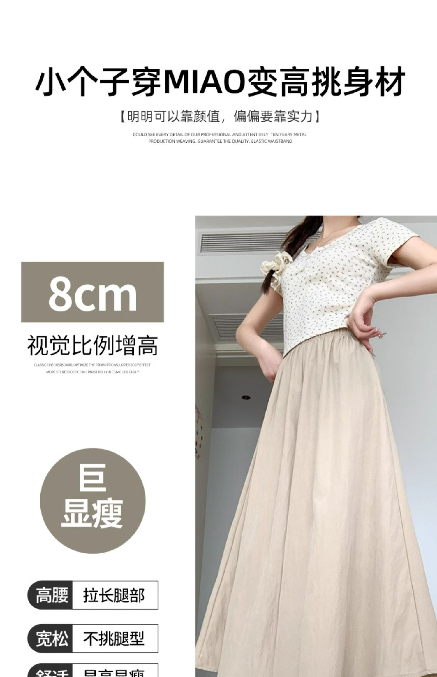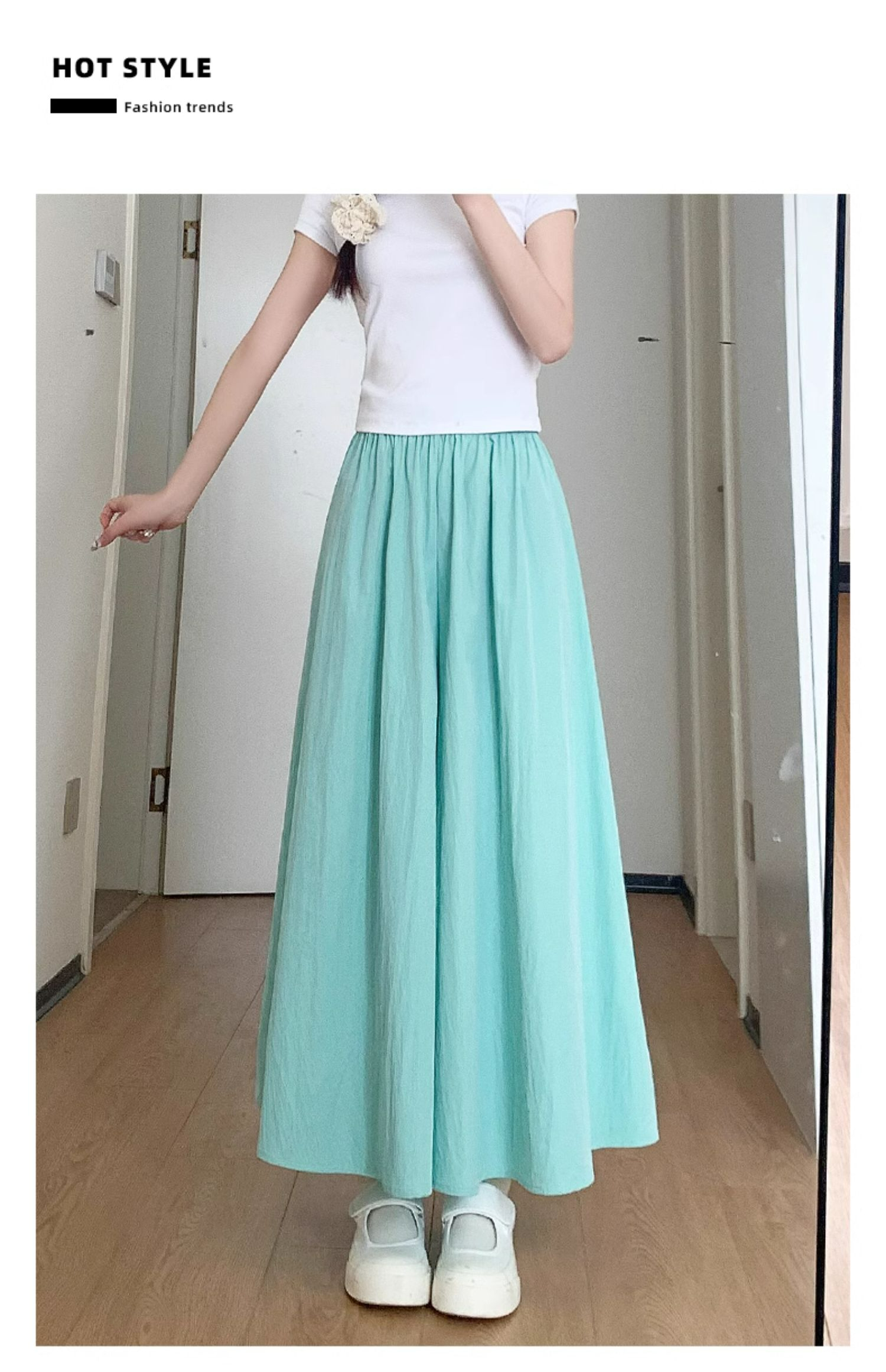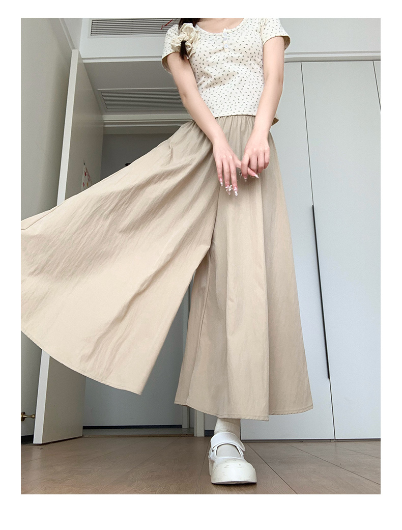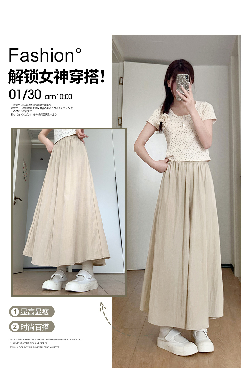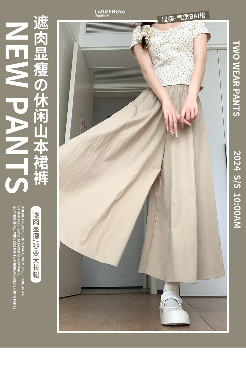 冰丝皱 立体腰头杏色山本裤裙女夏季休闲阔腿裤百褶半身裙