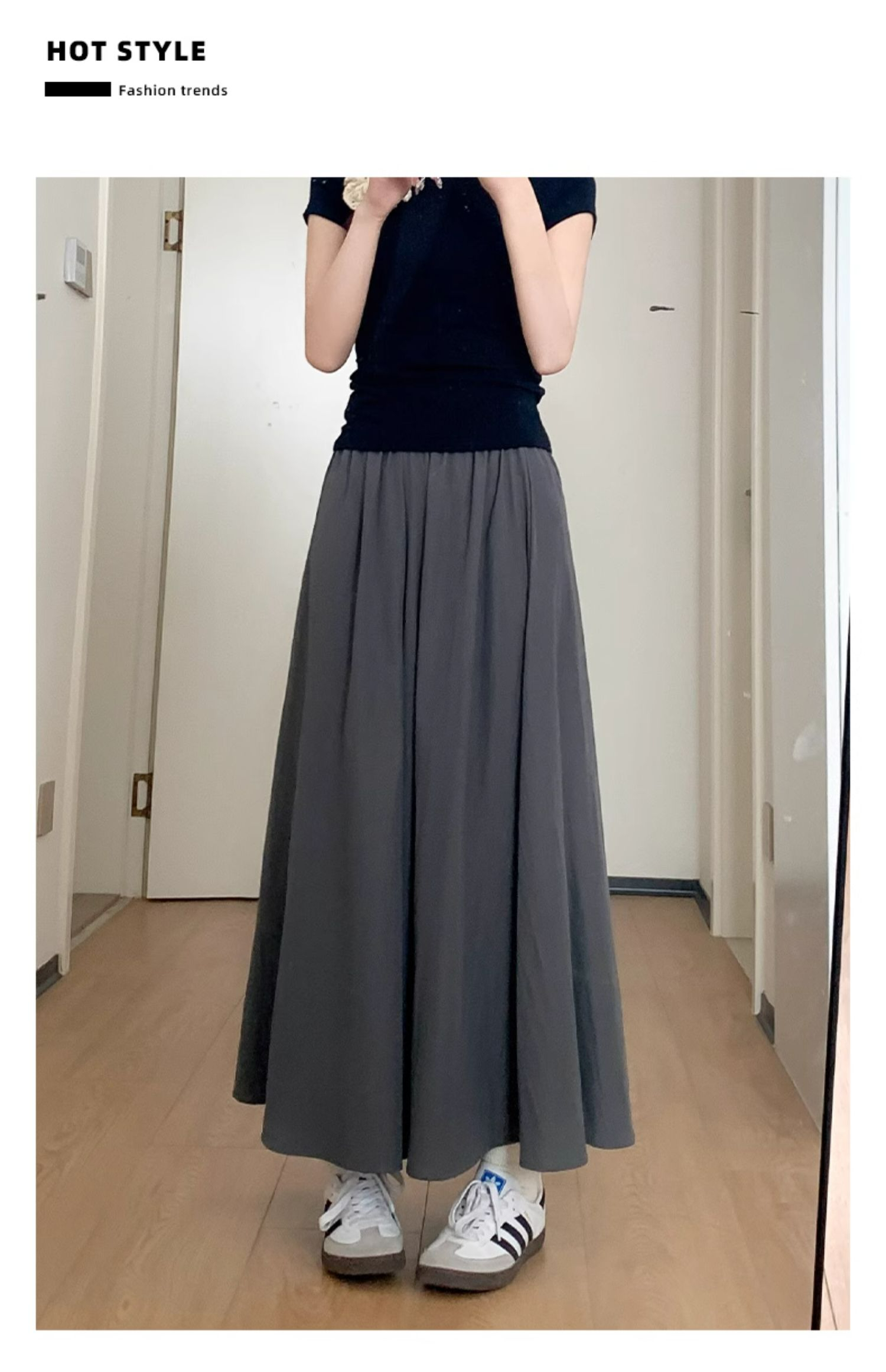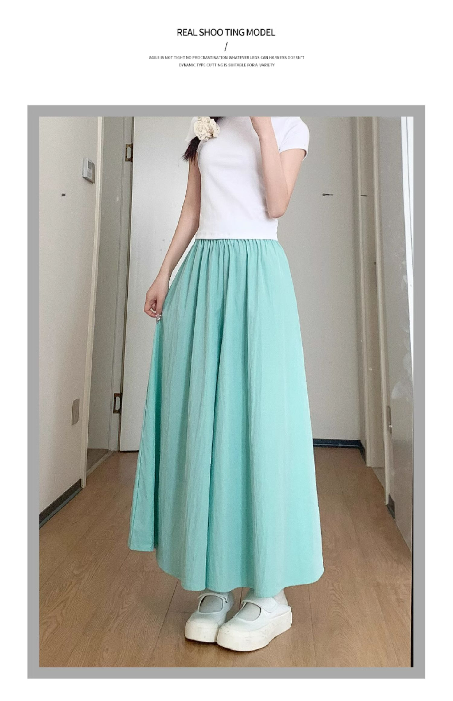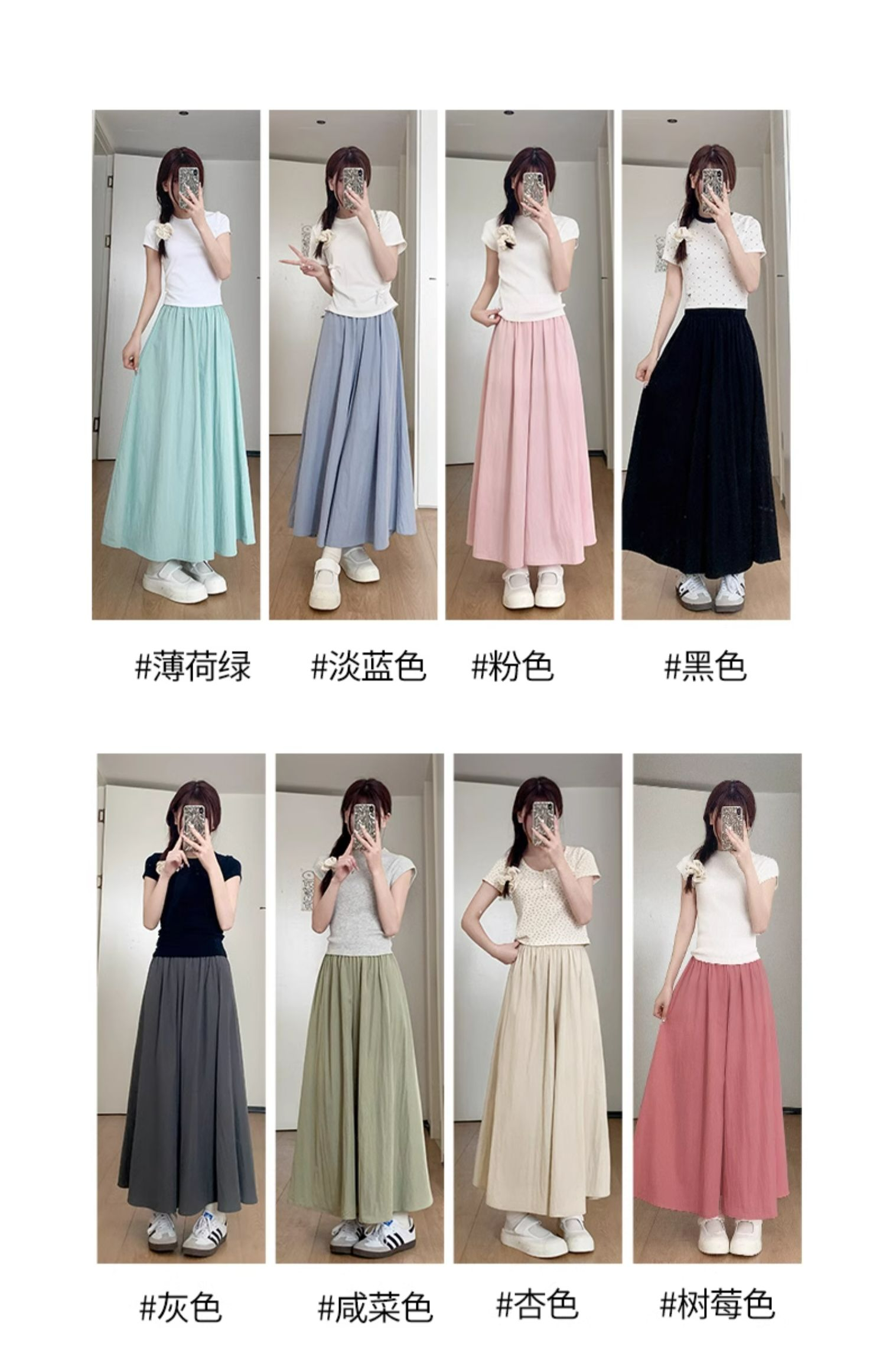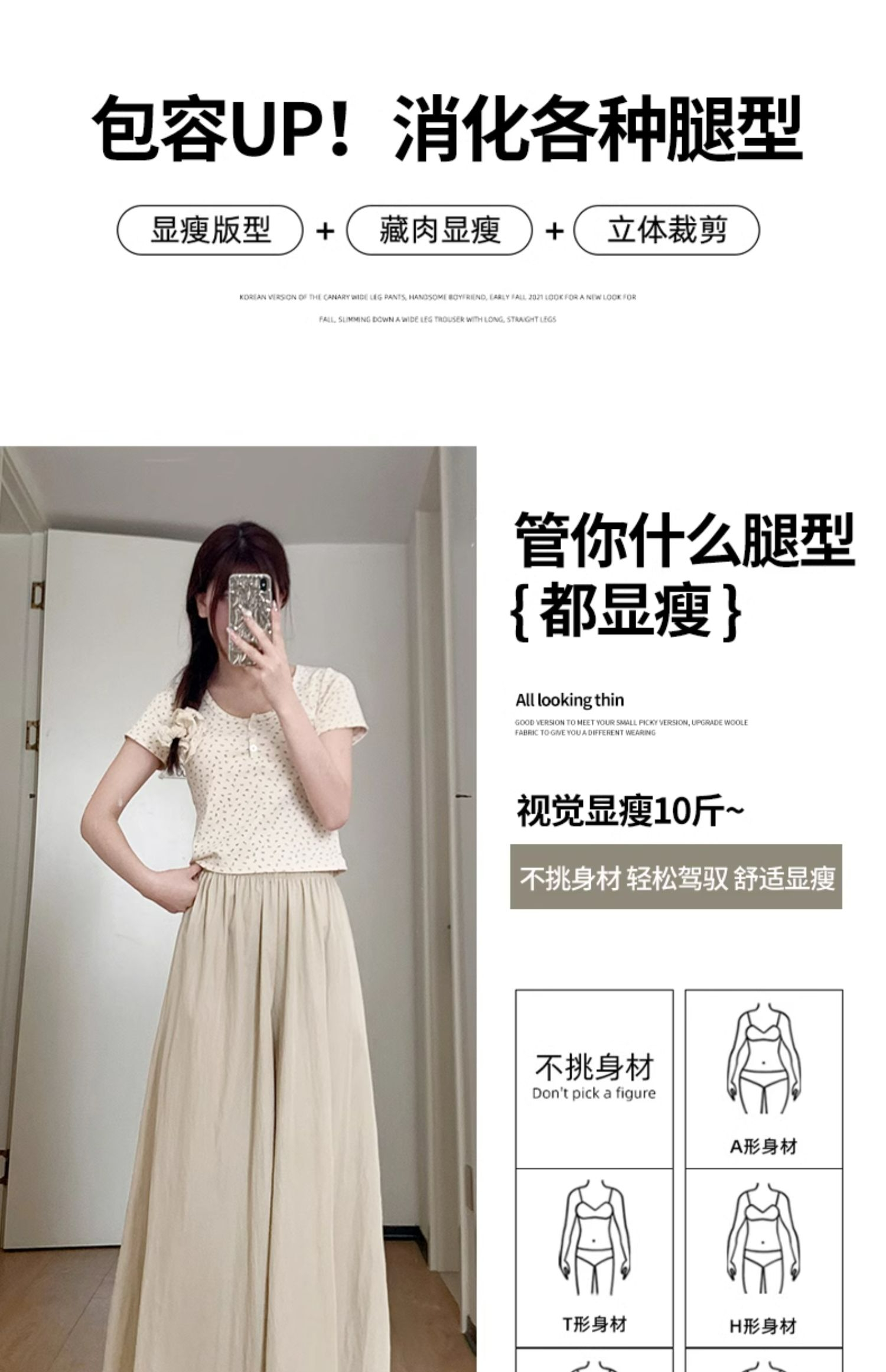 冰丝皱 立体腰头杏色山本裤裙女夏季休闲阔腿裤百褶半身裙