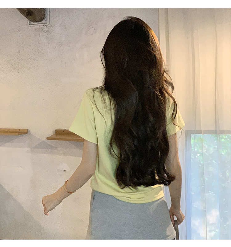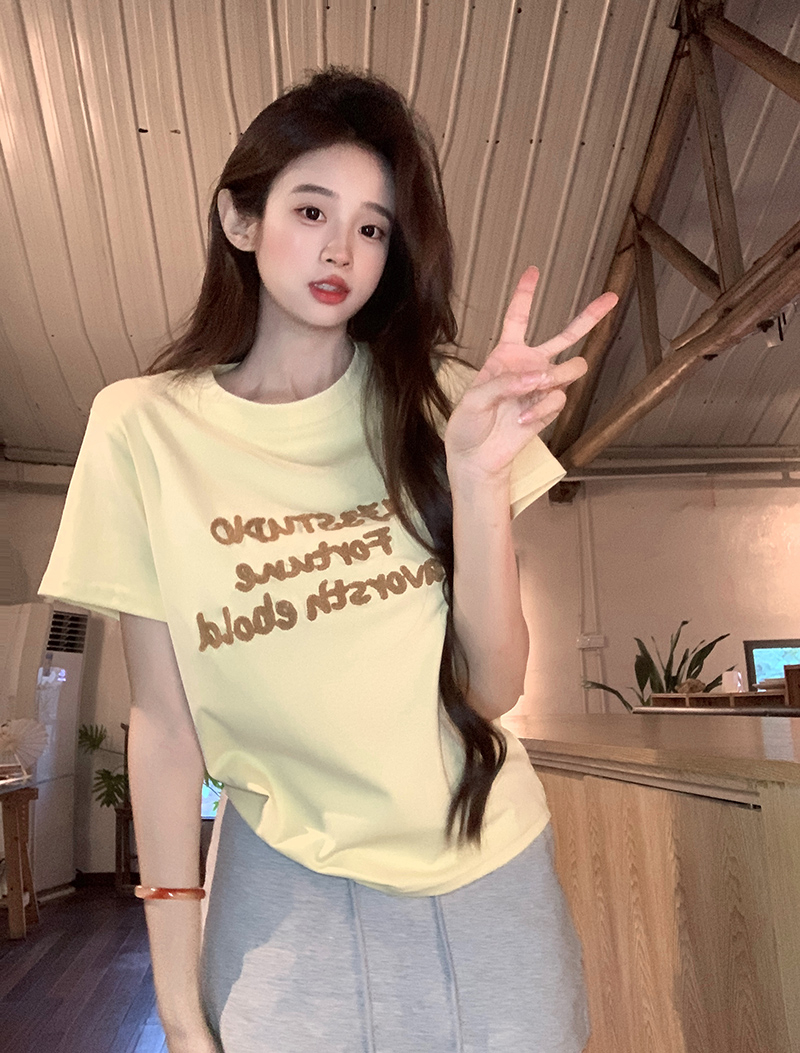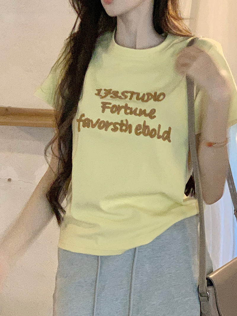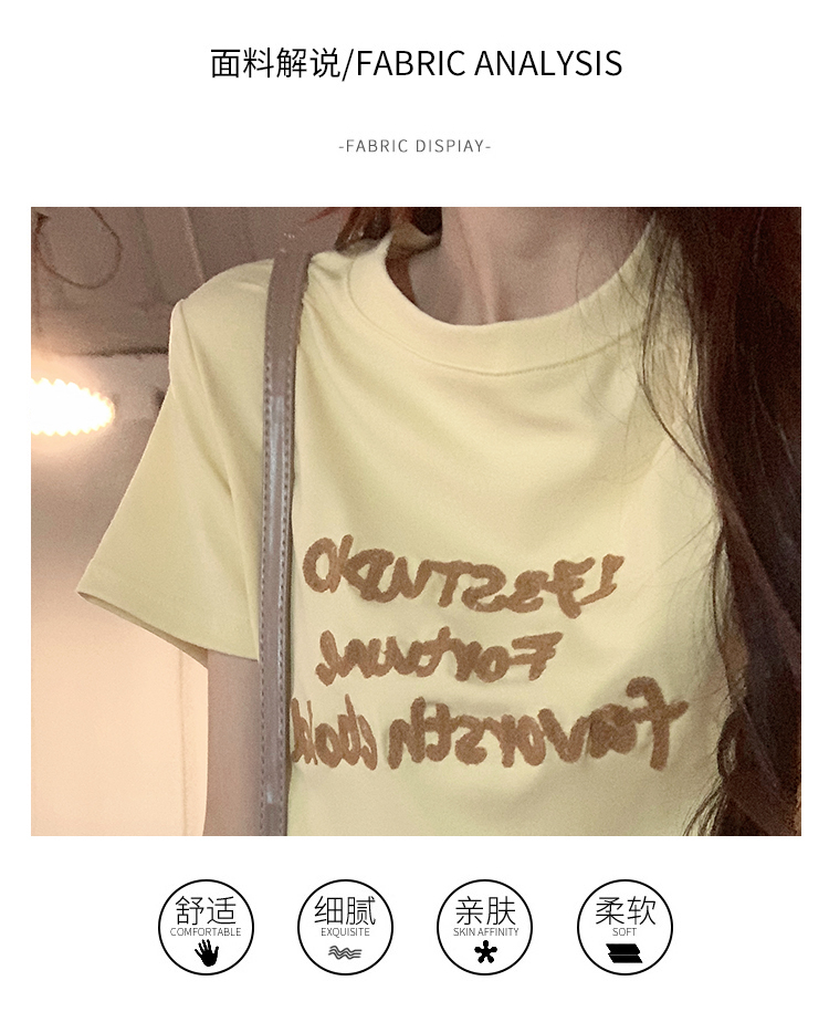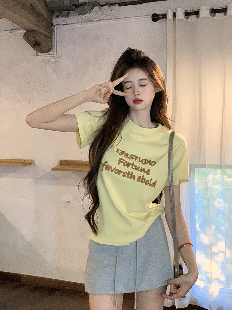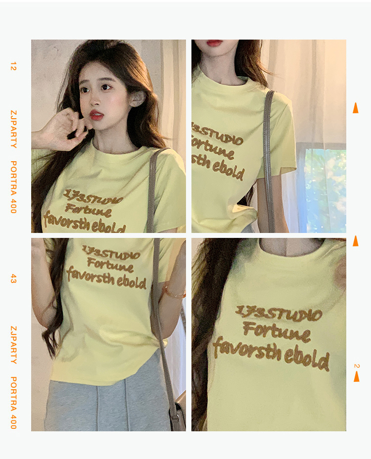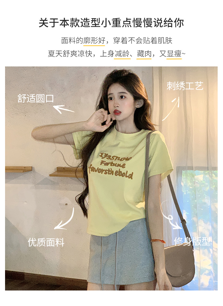 实拍1*1螺纹210克短袖t恤夏2024潮刺绣修身短款圆领上衣韩版女装