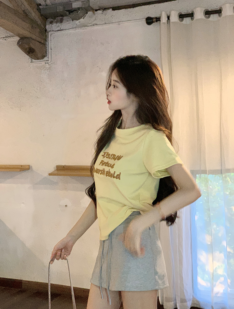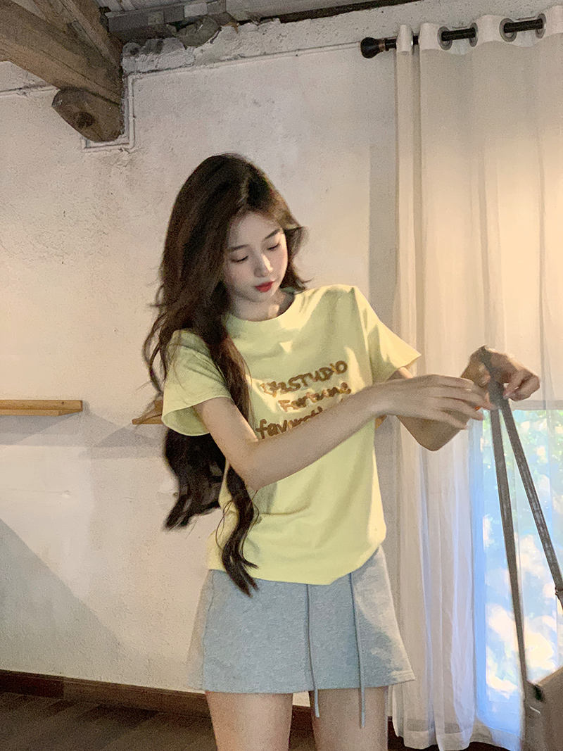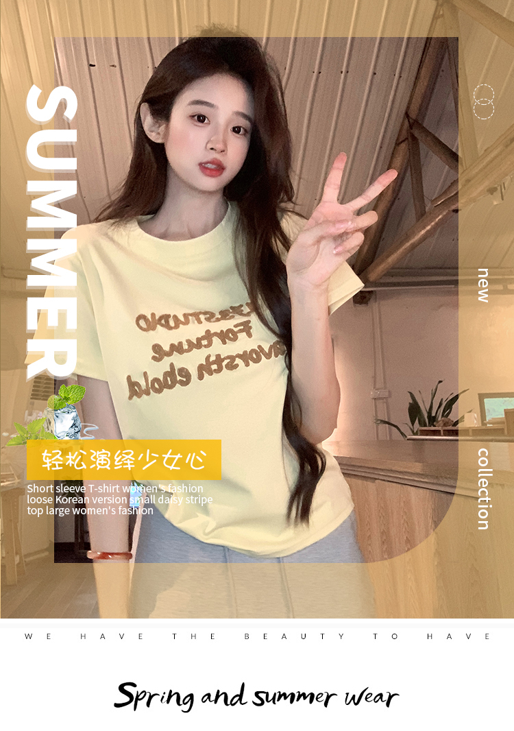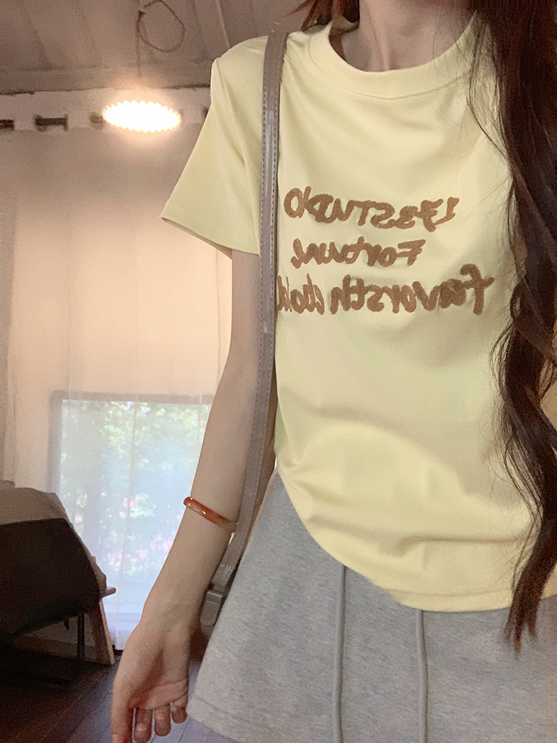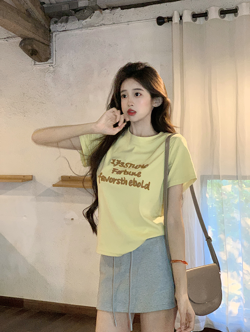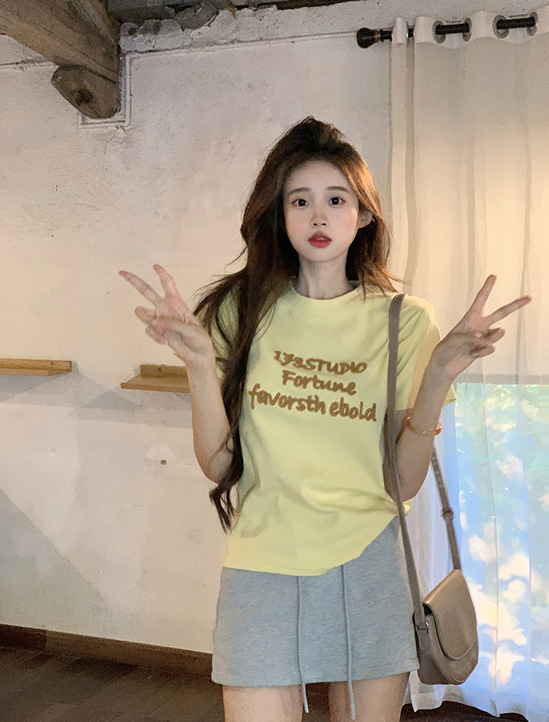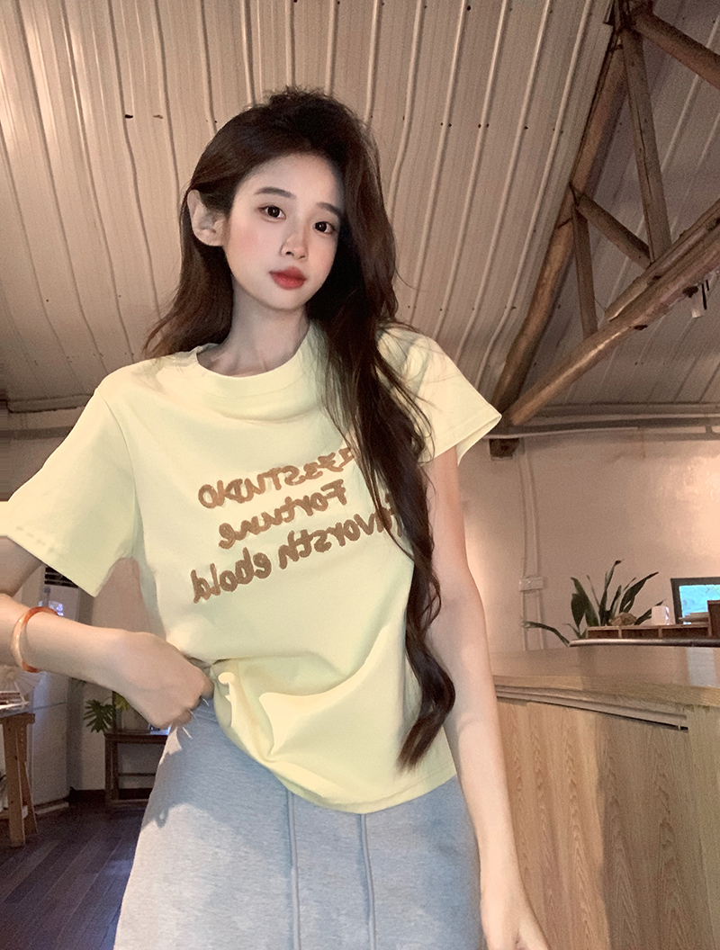 实拍1*1螺纹210克短袖t恤夏2024潮刺绣修身短款圆领上衣韩版女装