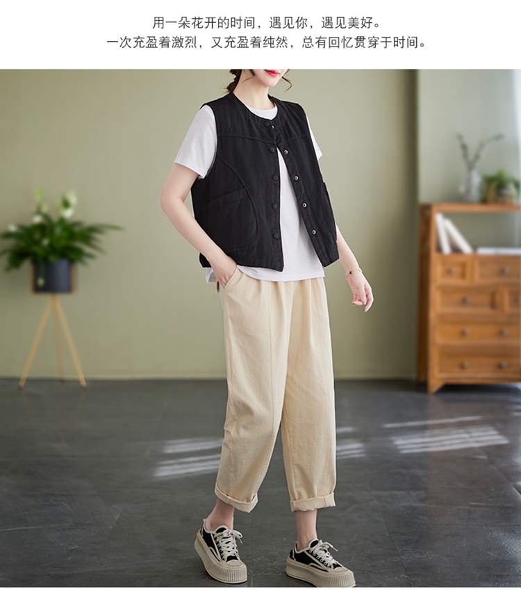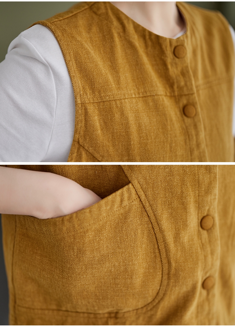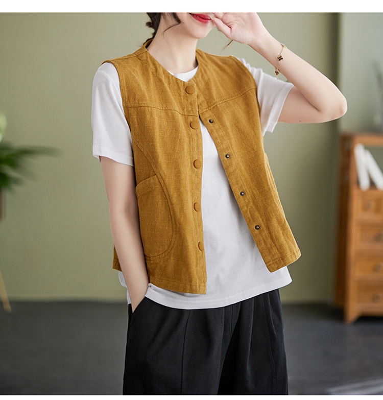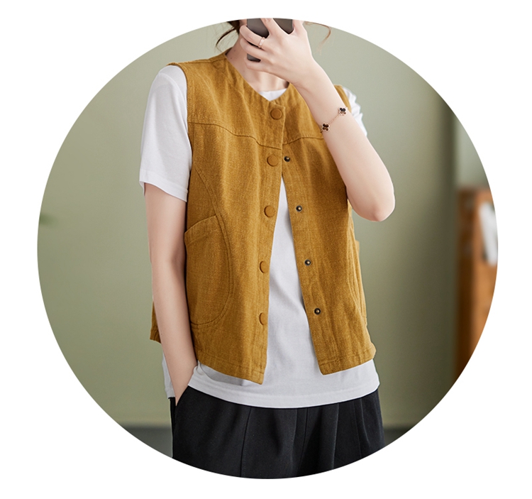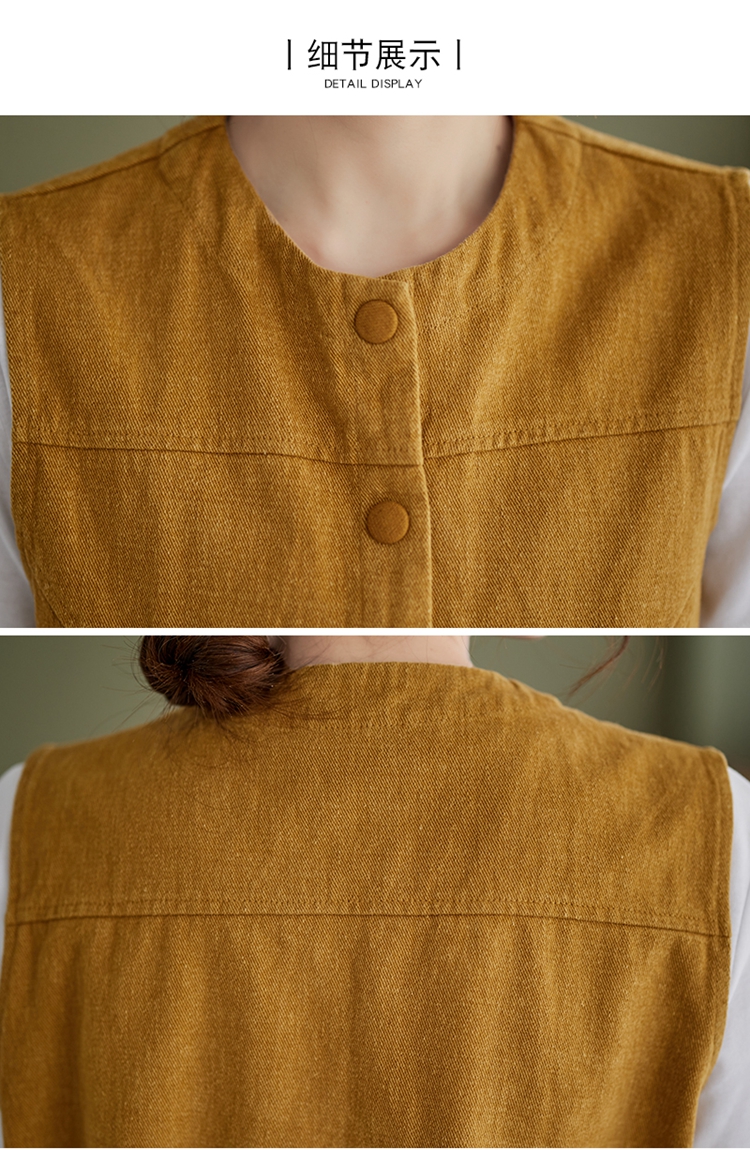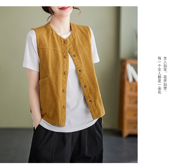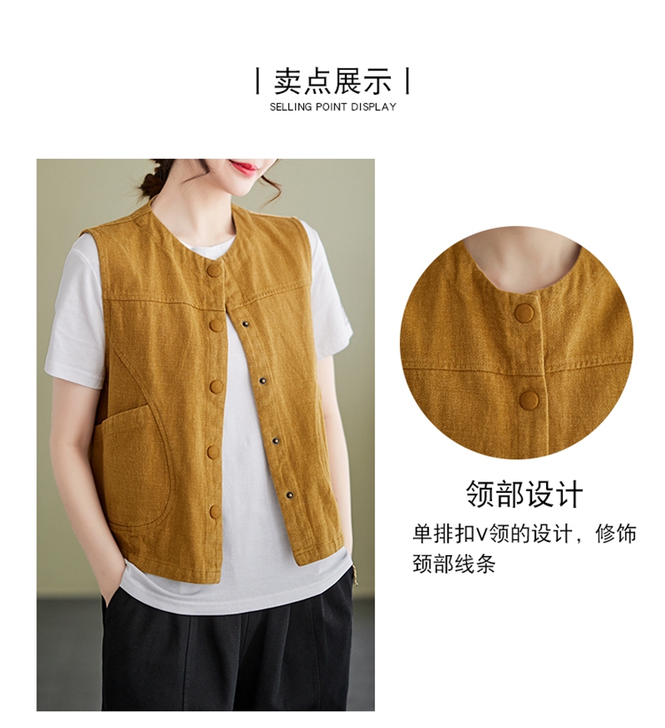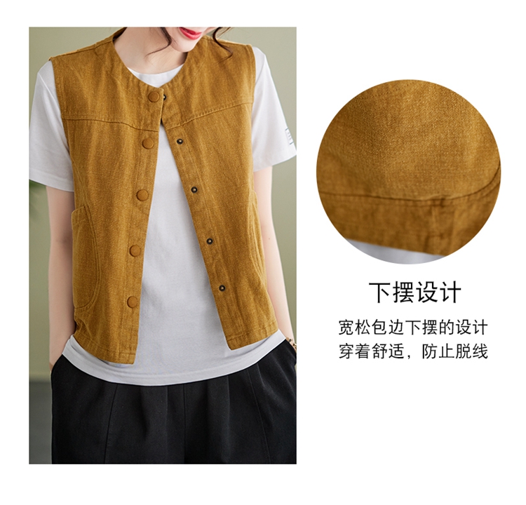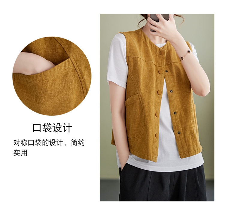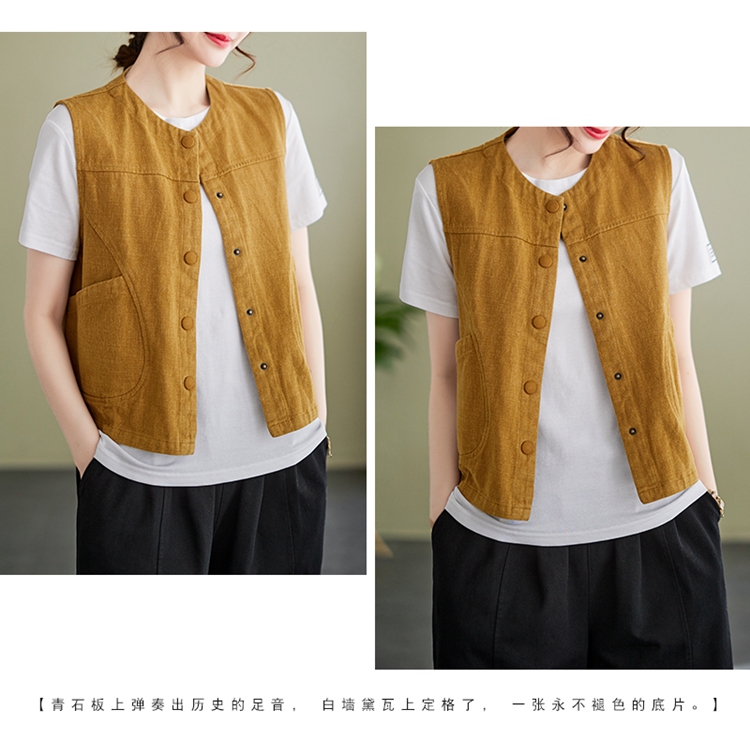 Real shot of the new cotton and linen vest for women in autumn 2024, artistic style waistcoat, artistic retro slimming vest