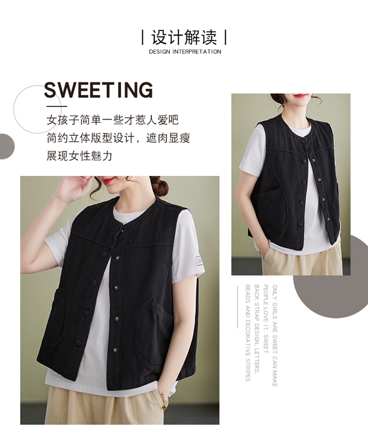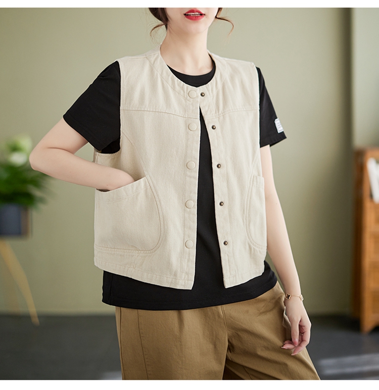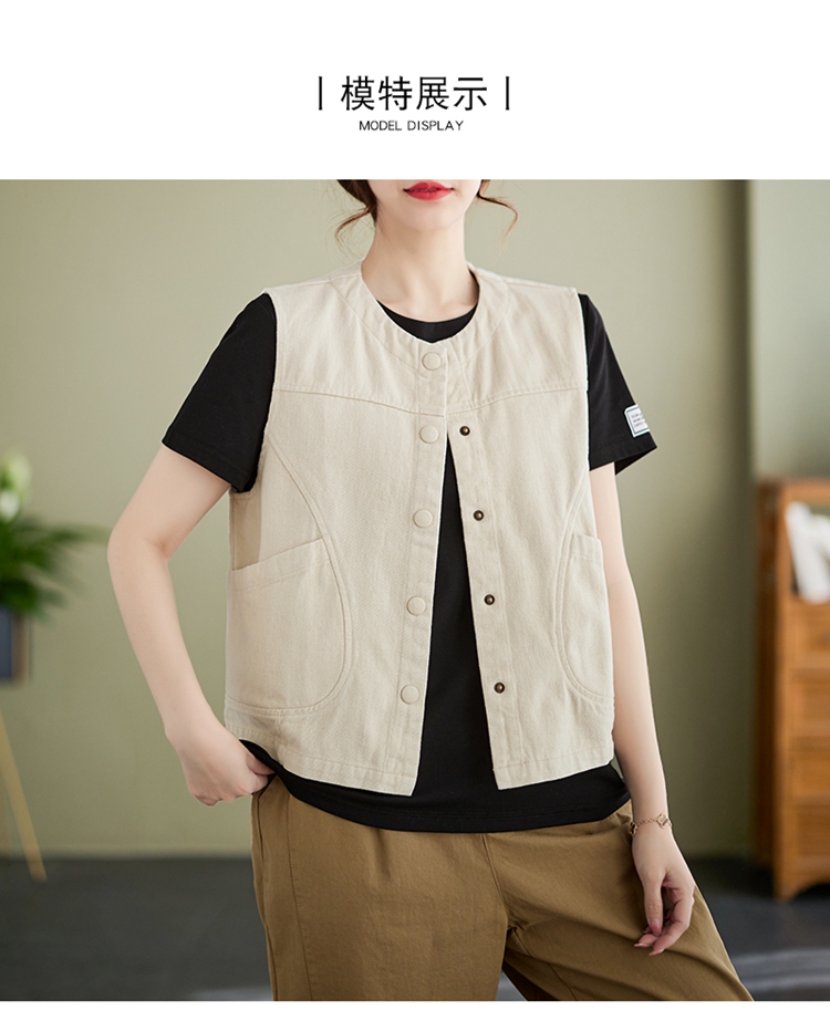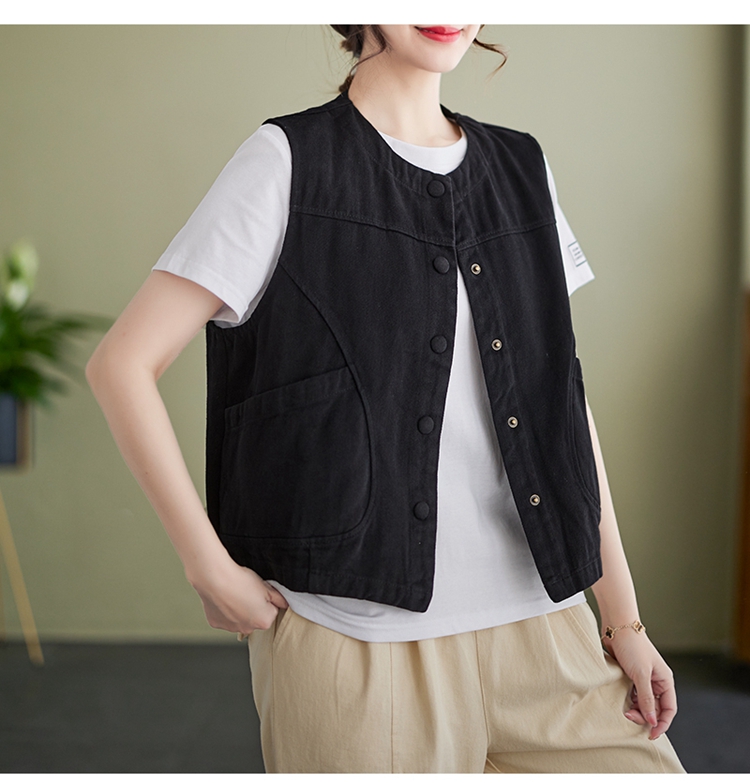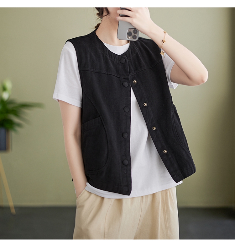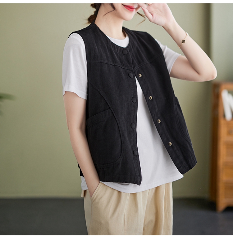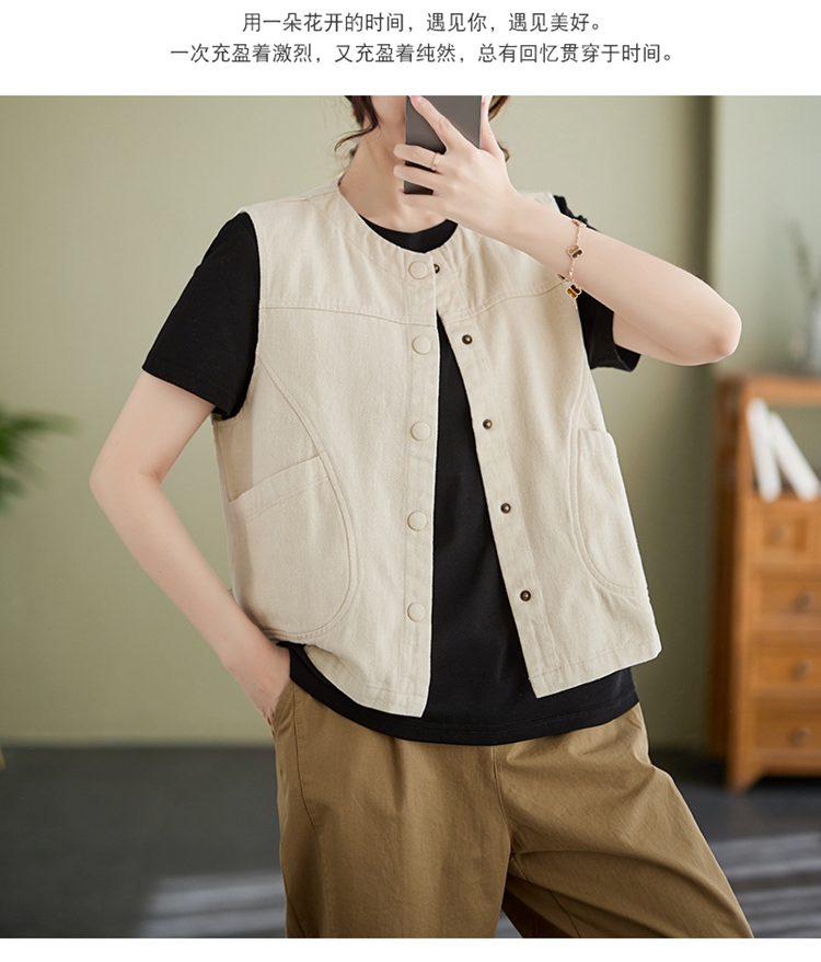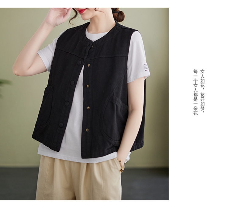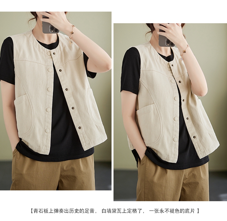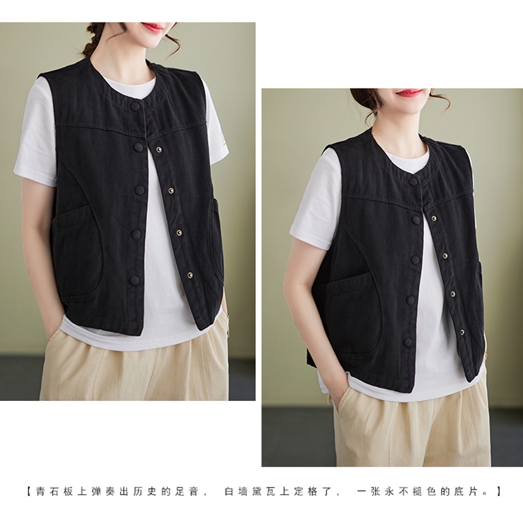 Real shot of the new cotton and linen vest for women in autumn 2024, artistic style waistcoat, artistic retro slimming vest