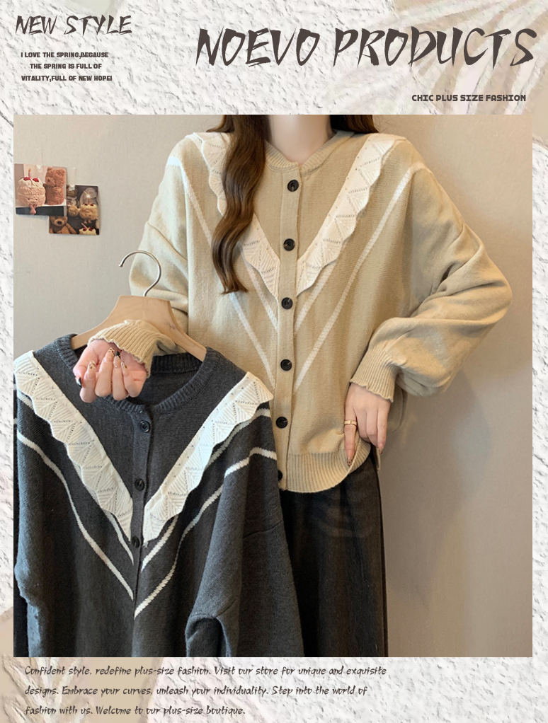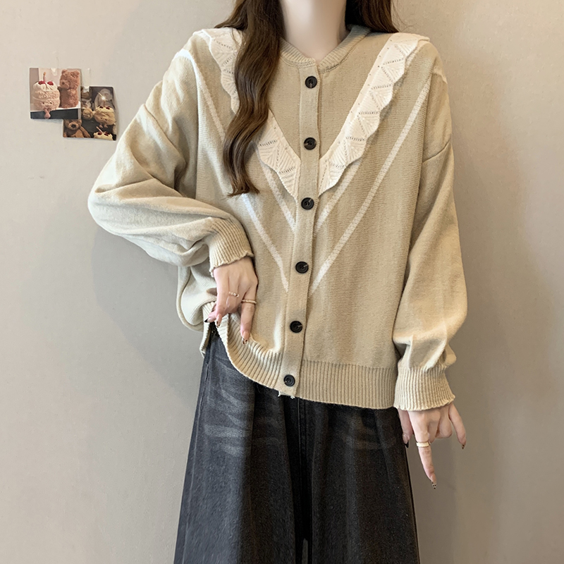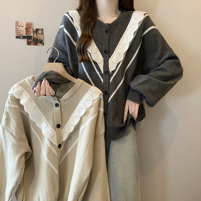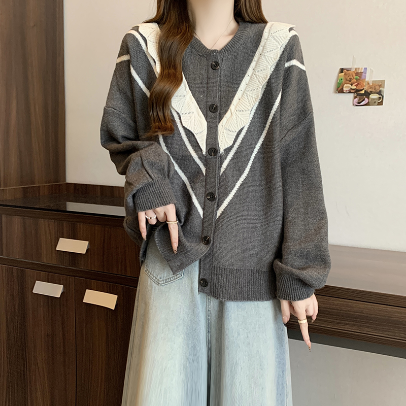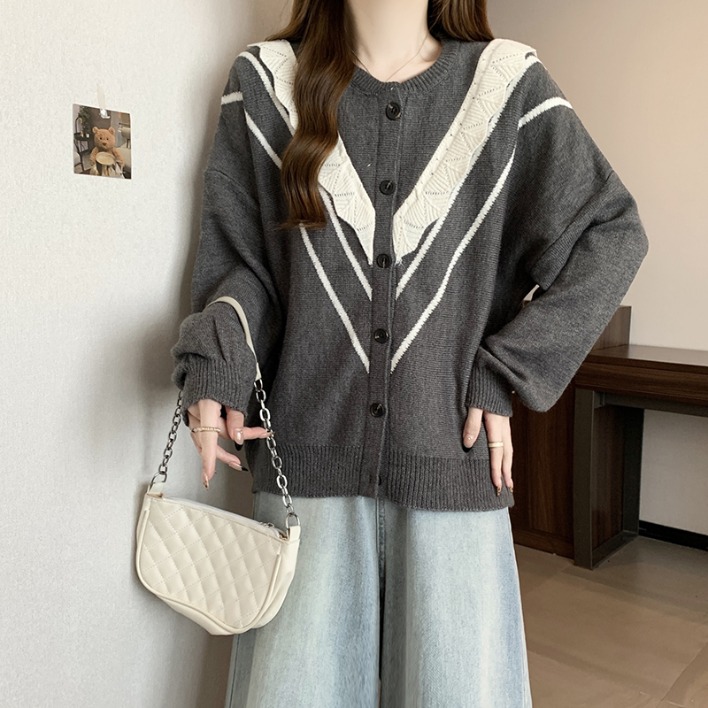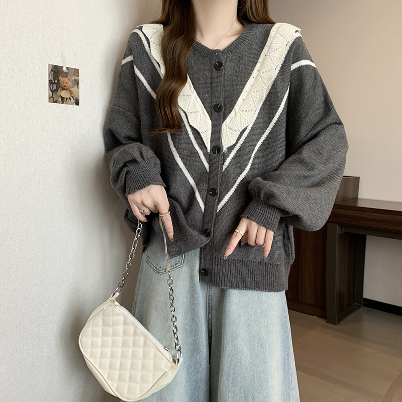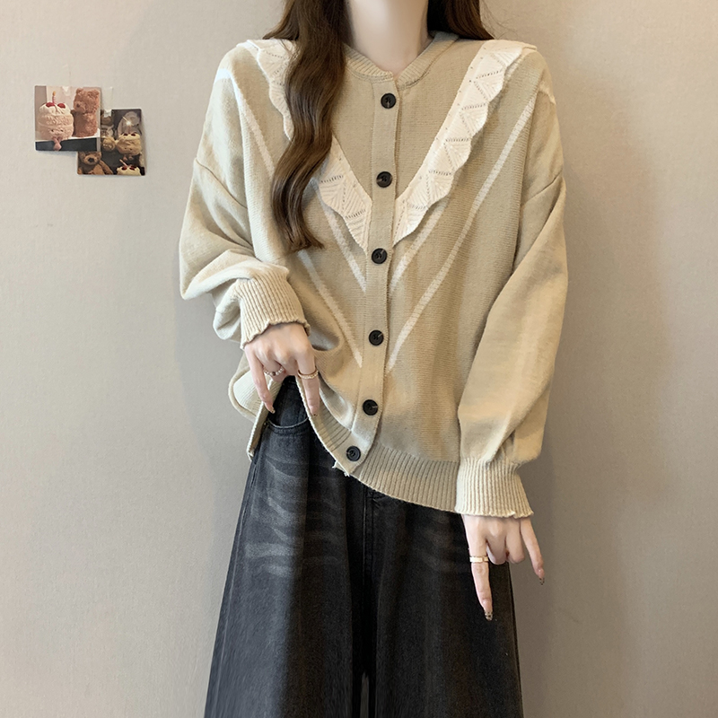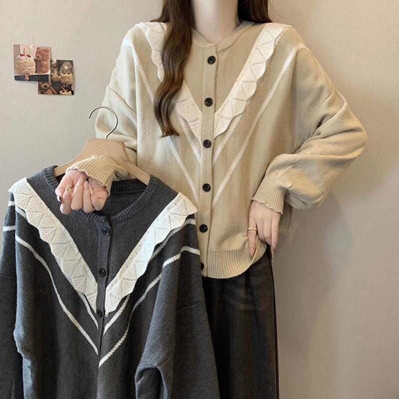 实拍女装2024新款韩版慵懒毛衣拼接木耳边宽松ins风针织开衫