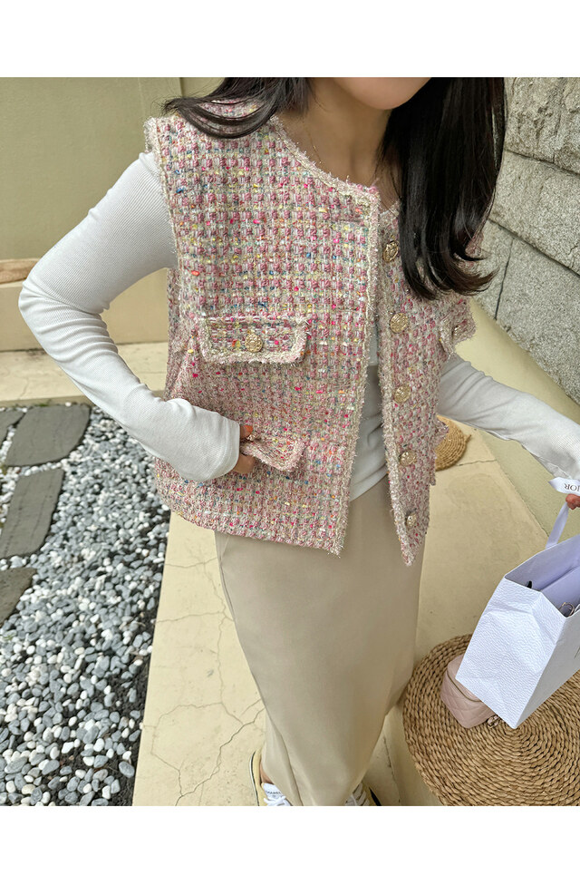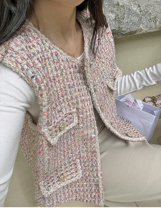 甜美小香风呢子百搭马甲