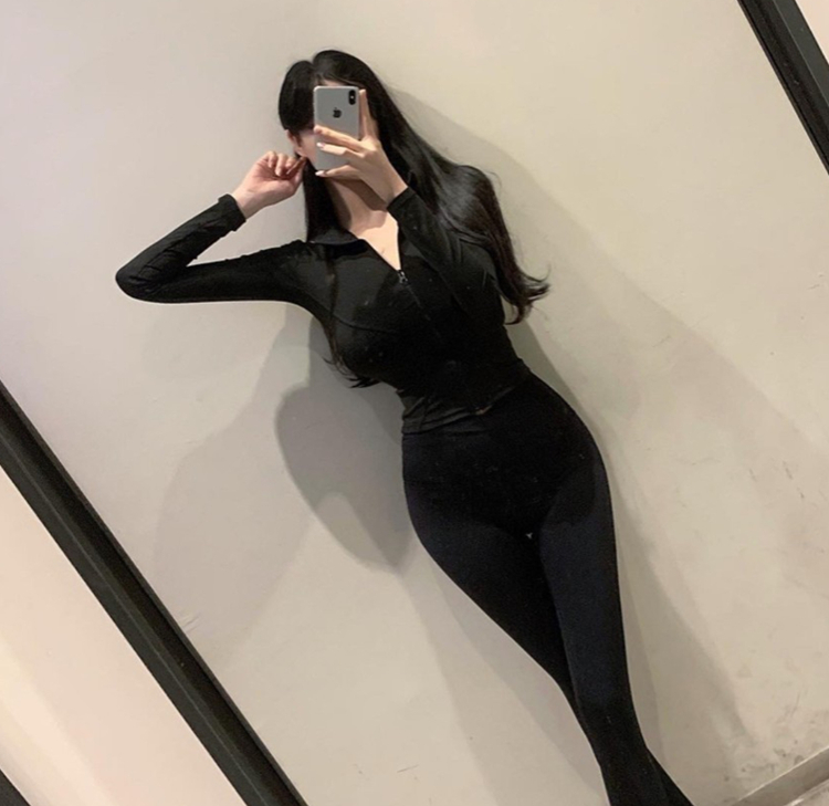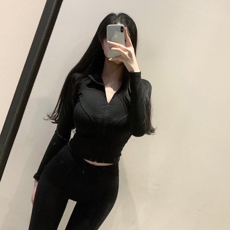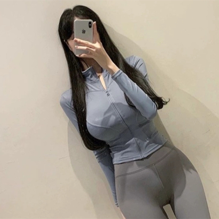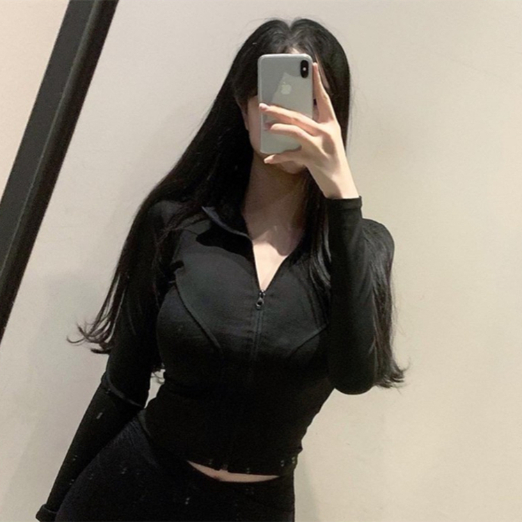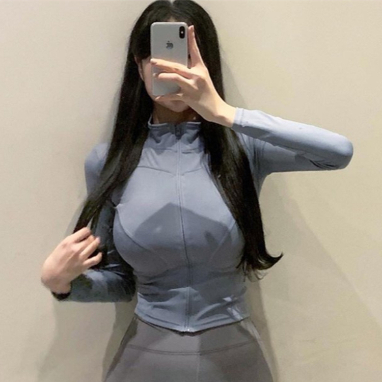 South Korea Dongdaemun autumn and winter new temperament yoga jacket waist tight figure zipper stand collar jacket T-shirt