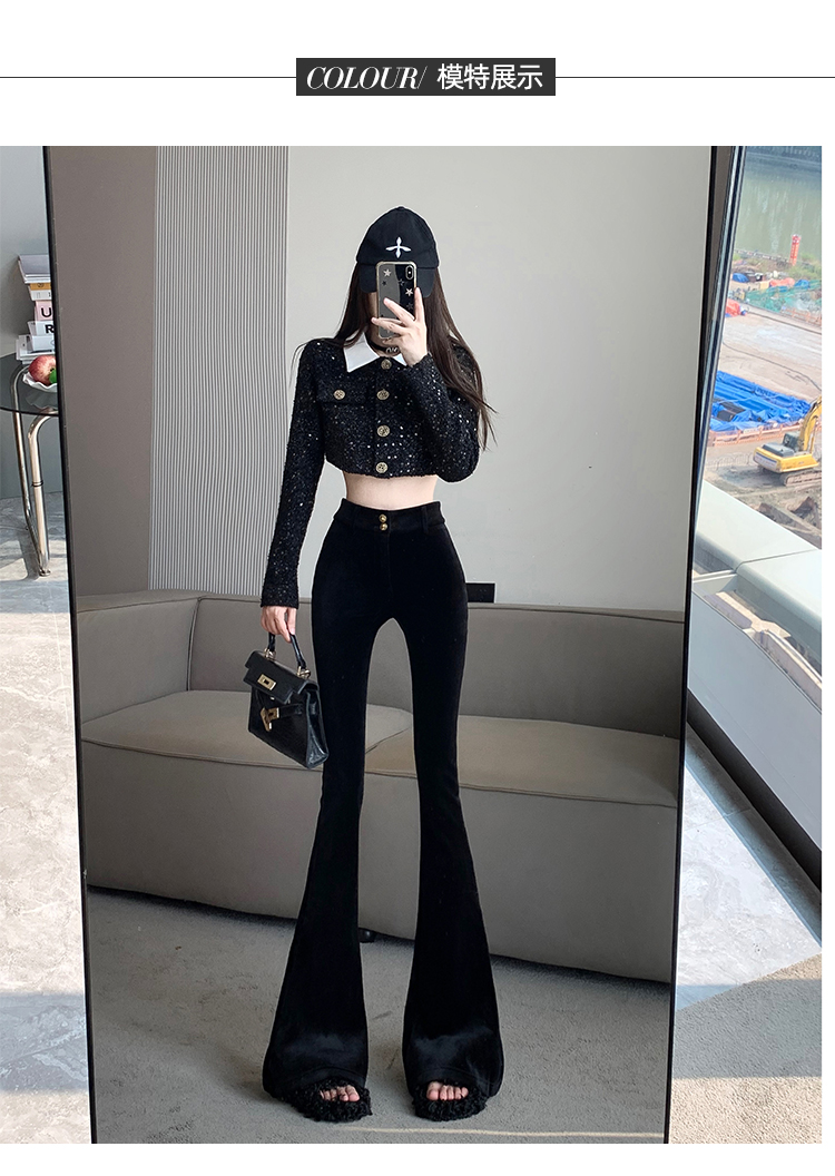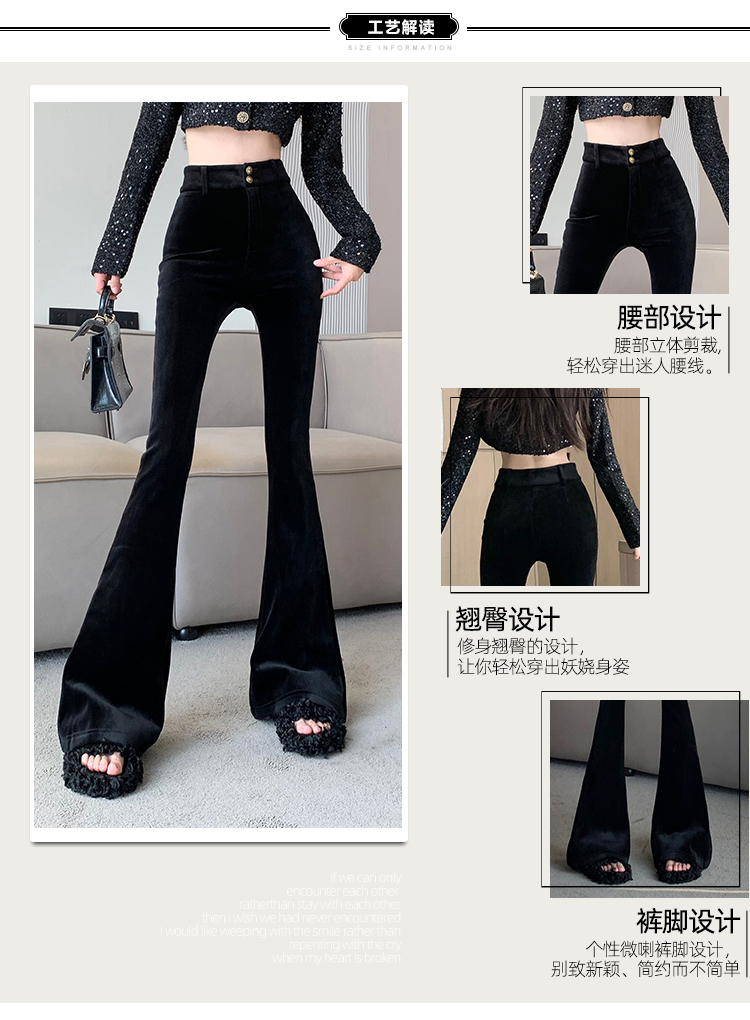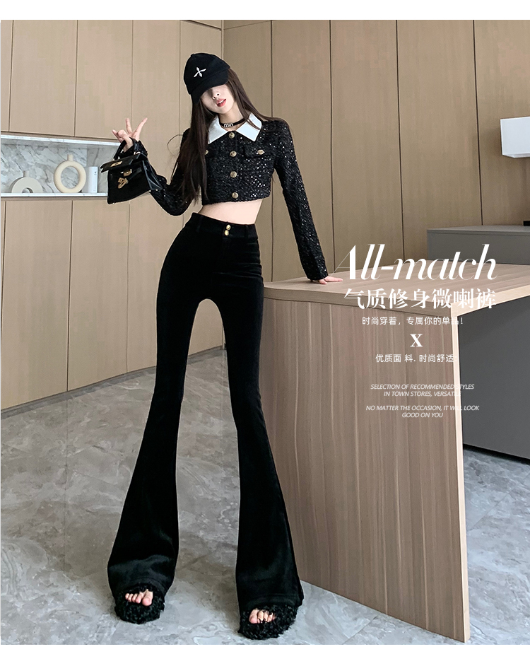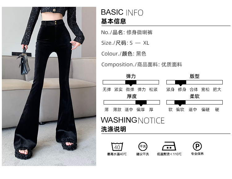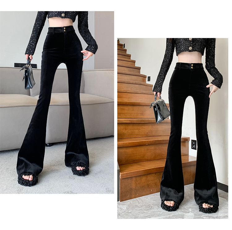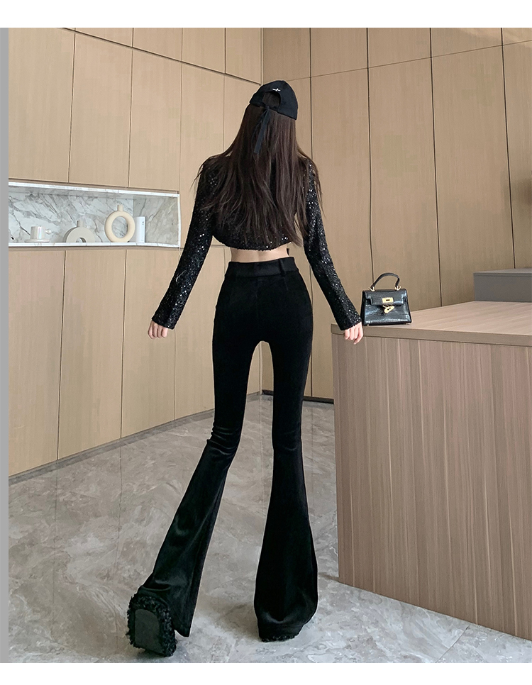 实拍秋冬加绒黑色百搭高腰修身显瘦喇叭裤女辣妹垂感拖地微喇长裤
