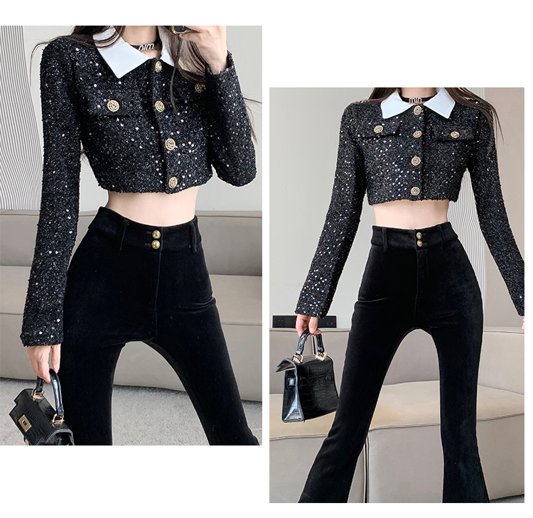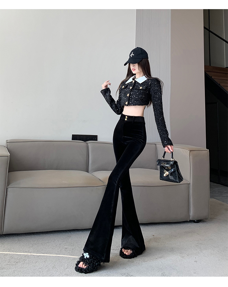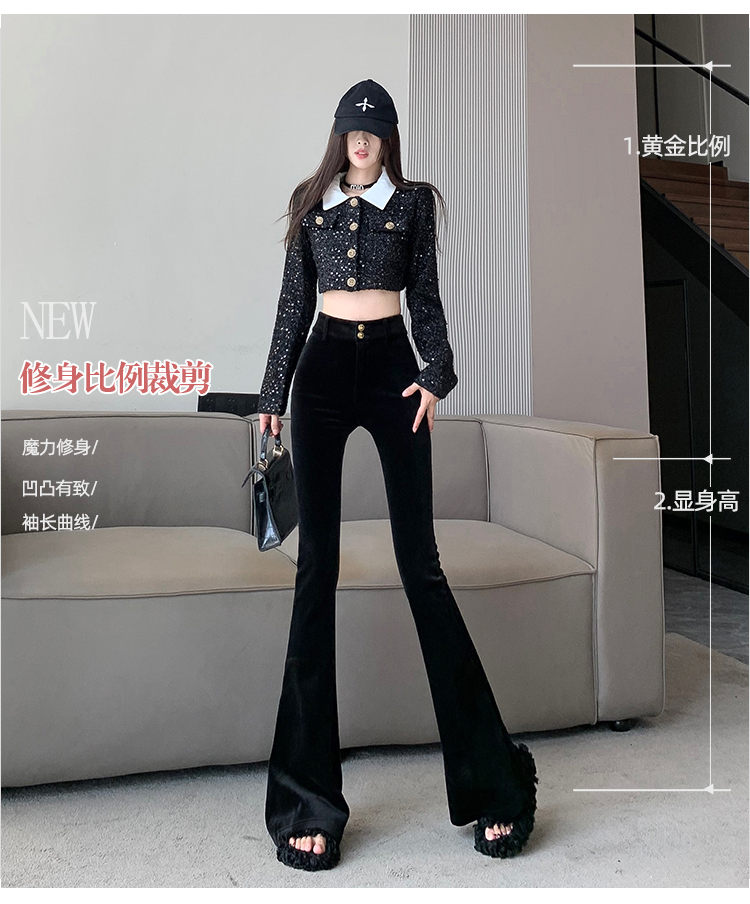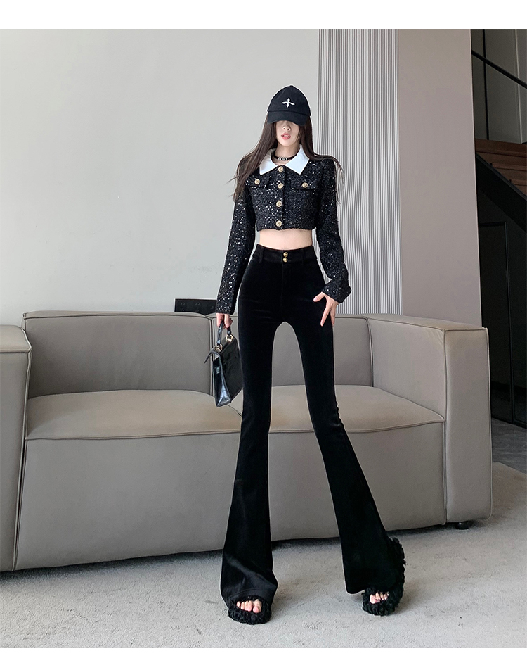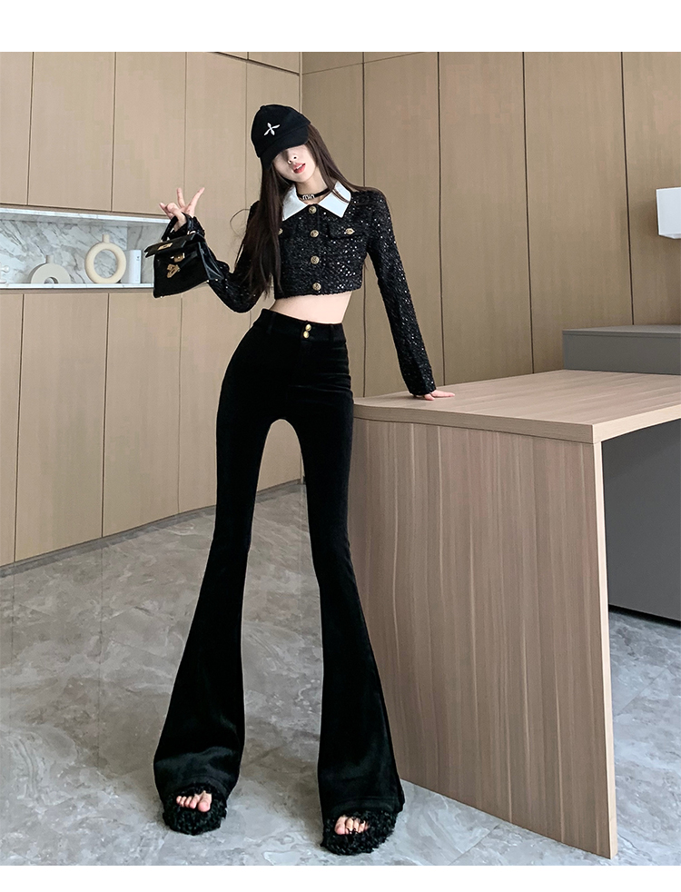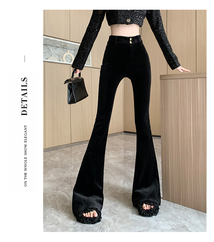 实拍秋冬加绒黑色百搭高腰修身显瘦喇叭裤女辣妹垂感拖地微喇长裤