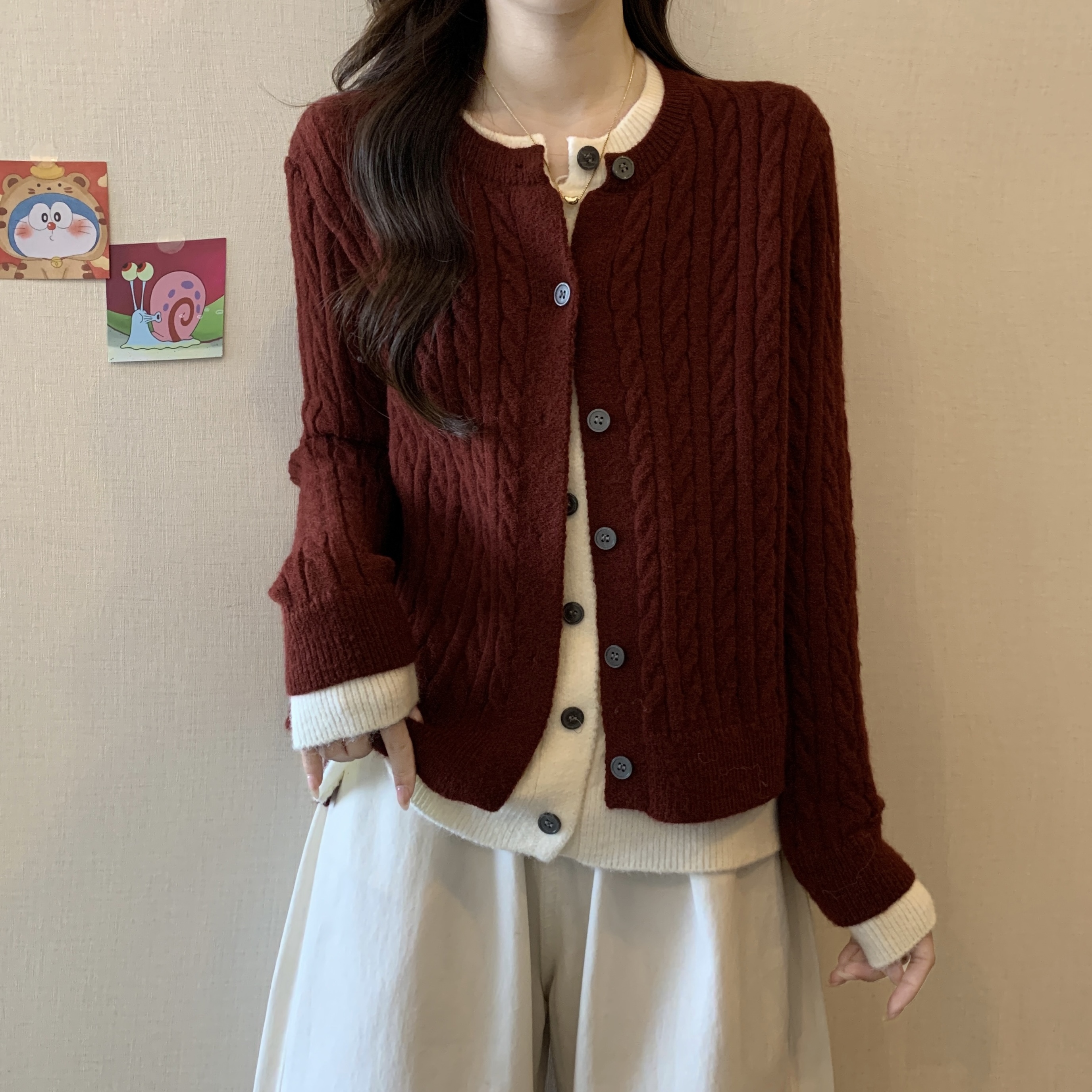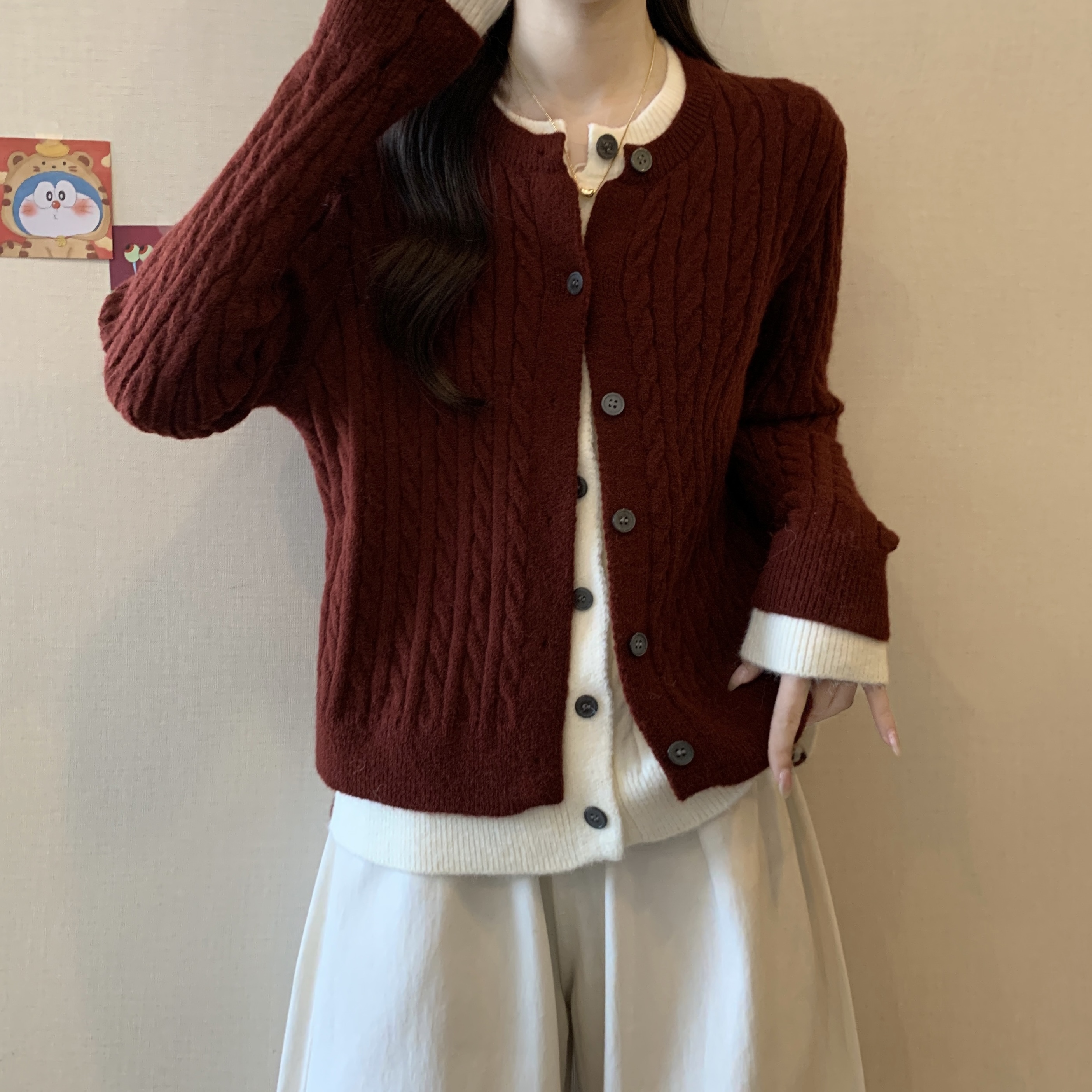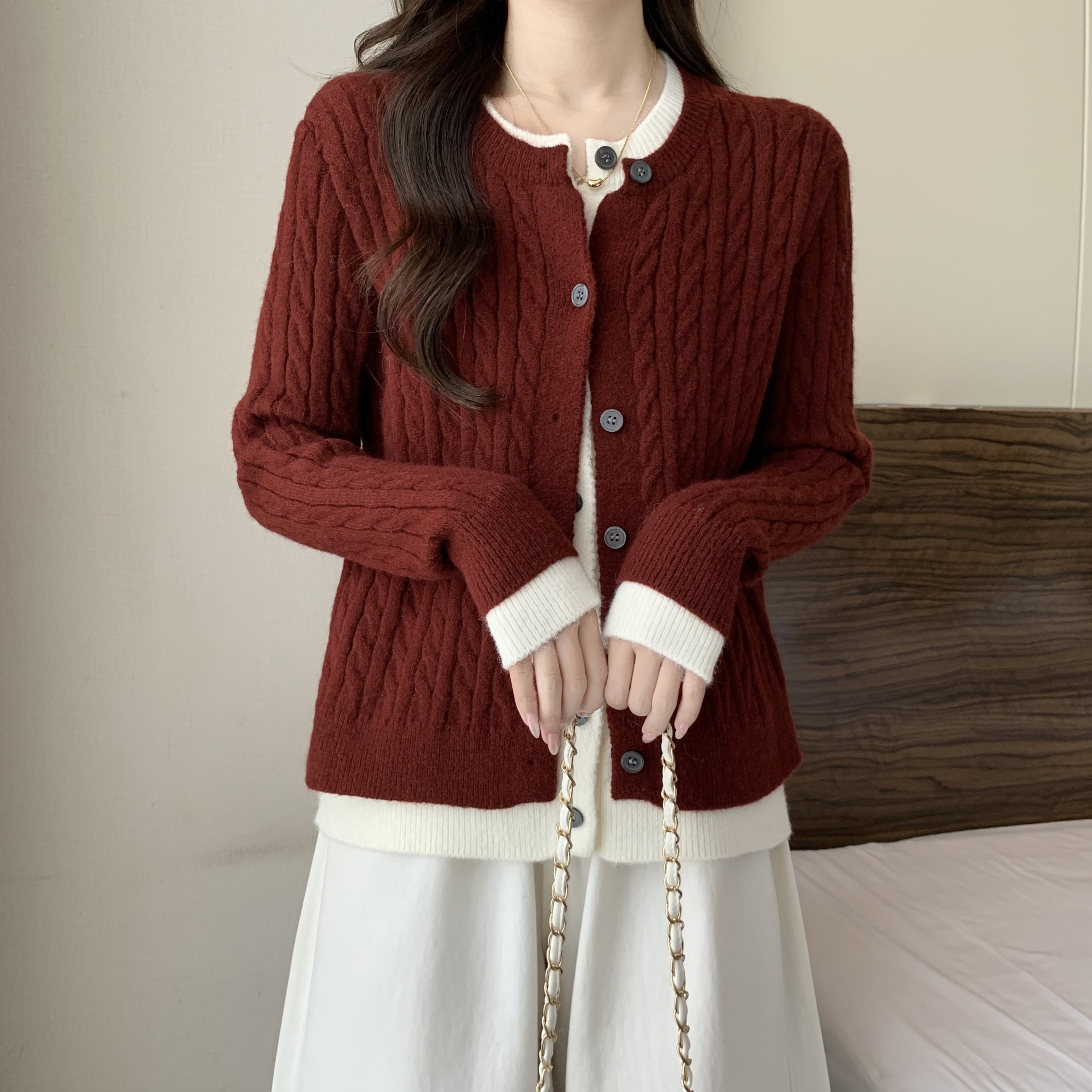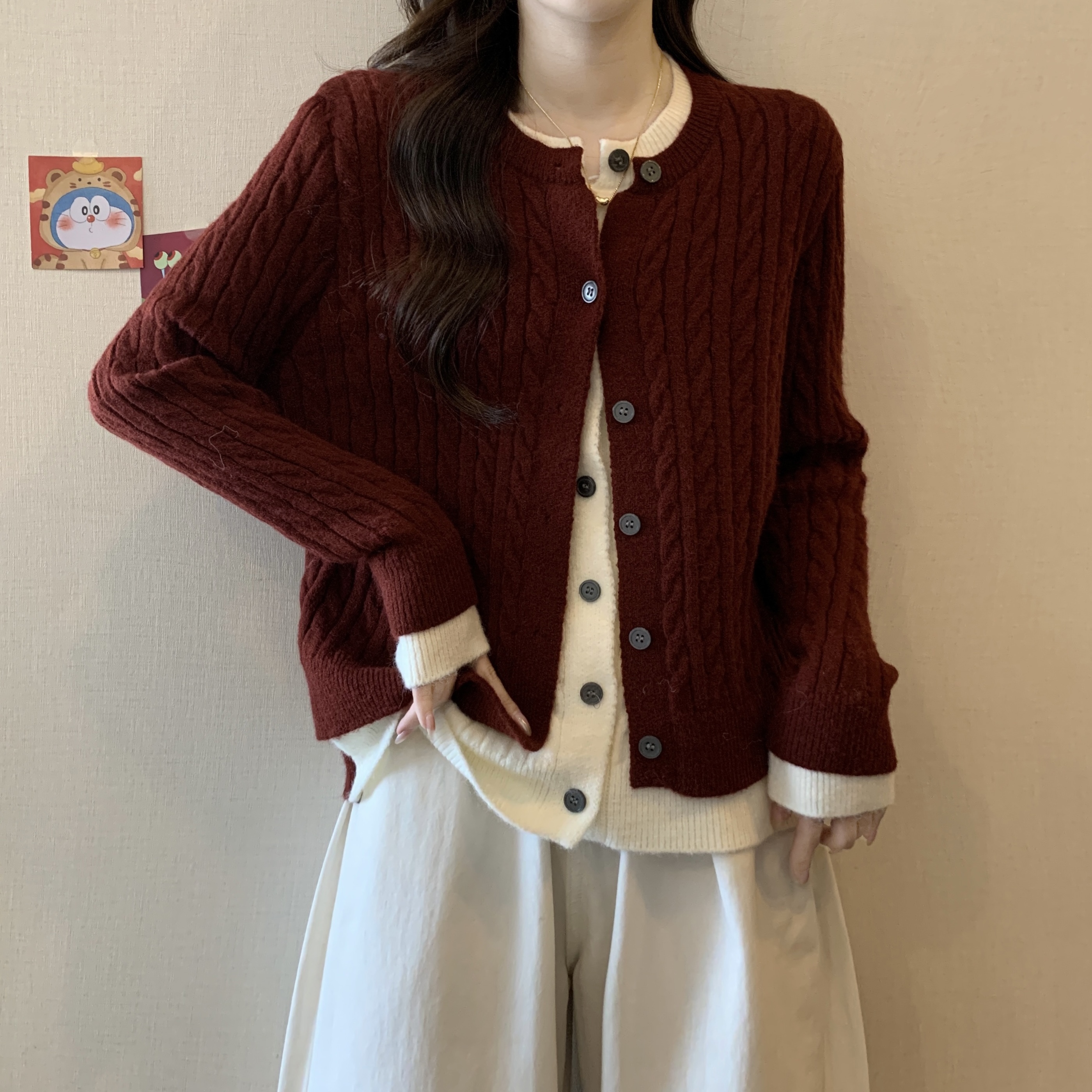 大码女装2024秋冬新款拼接假两件毛衣针织开衫安可拉红外套女