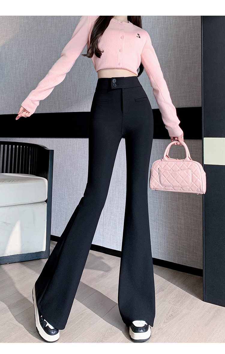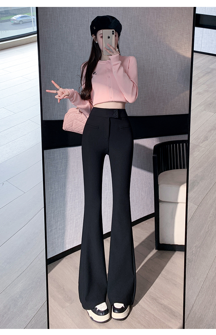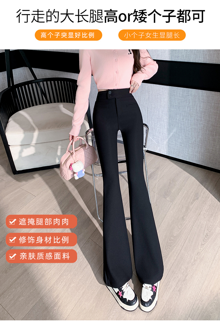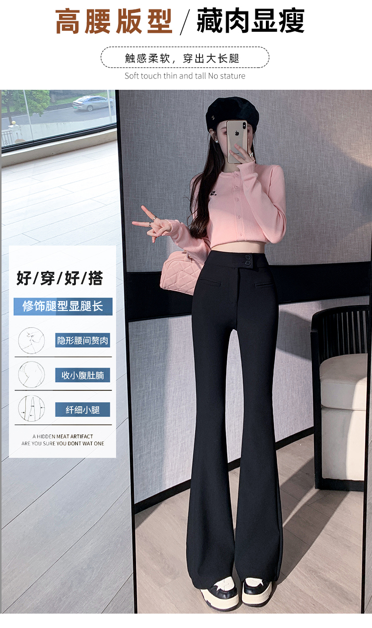 黑色喇叭裤高腰显瘦女2024新款弹力显瘦小个子微喇窄版春秋西装裤