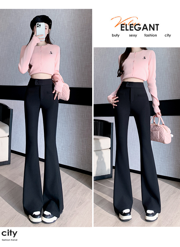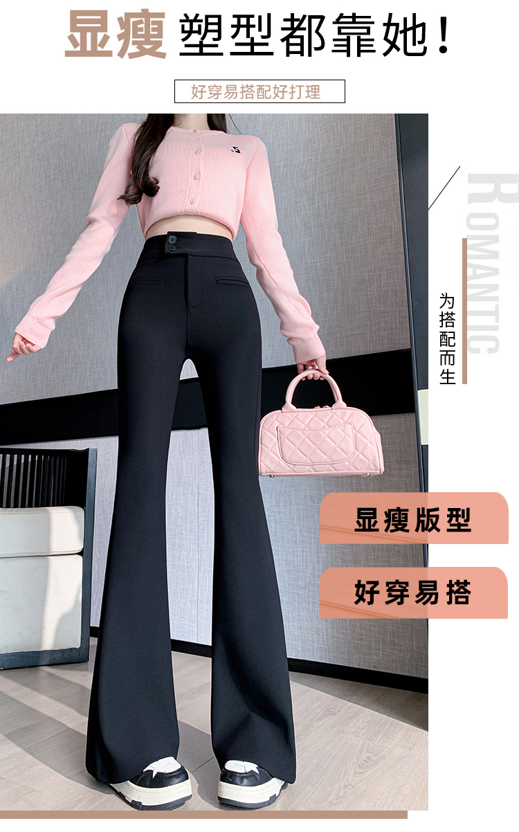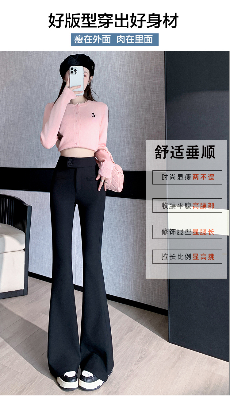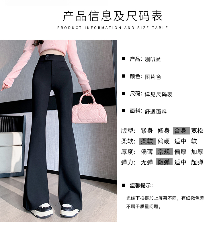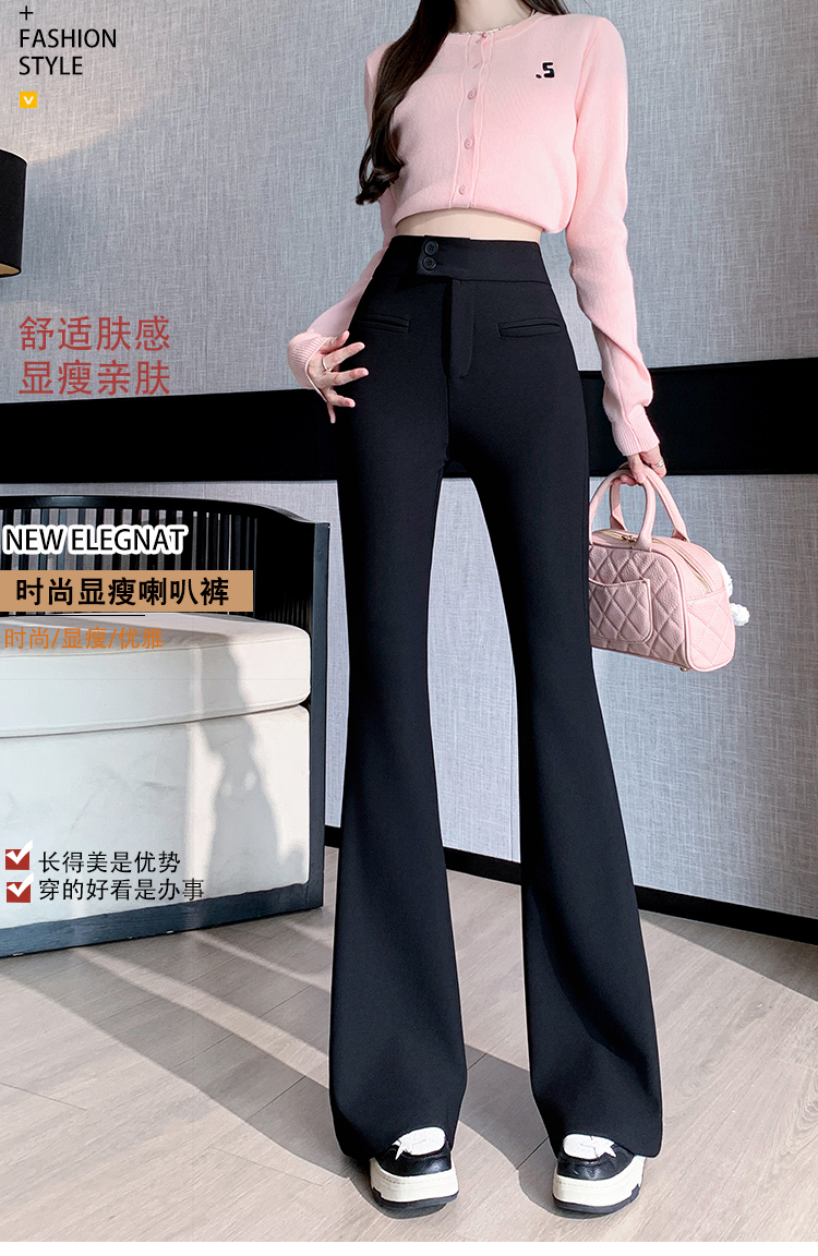 黑色喇叭裤高腰显瘦女2024新款弹力显瘦小个子微喇窄版春秋西装裤