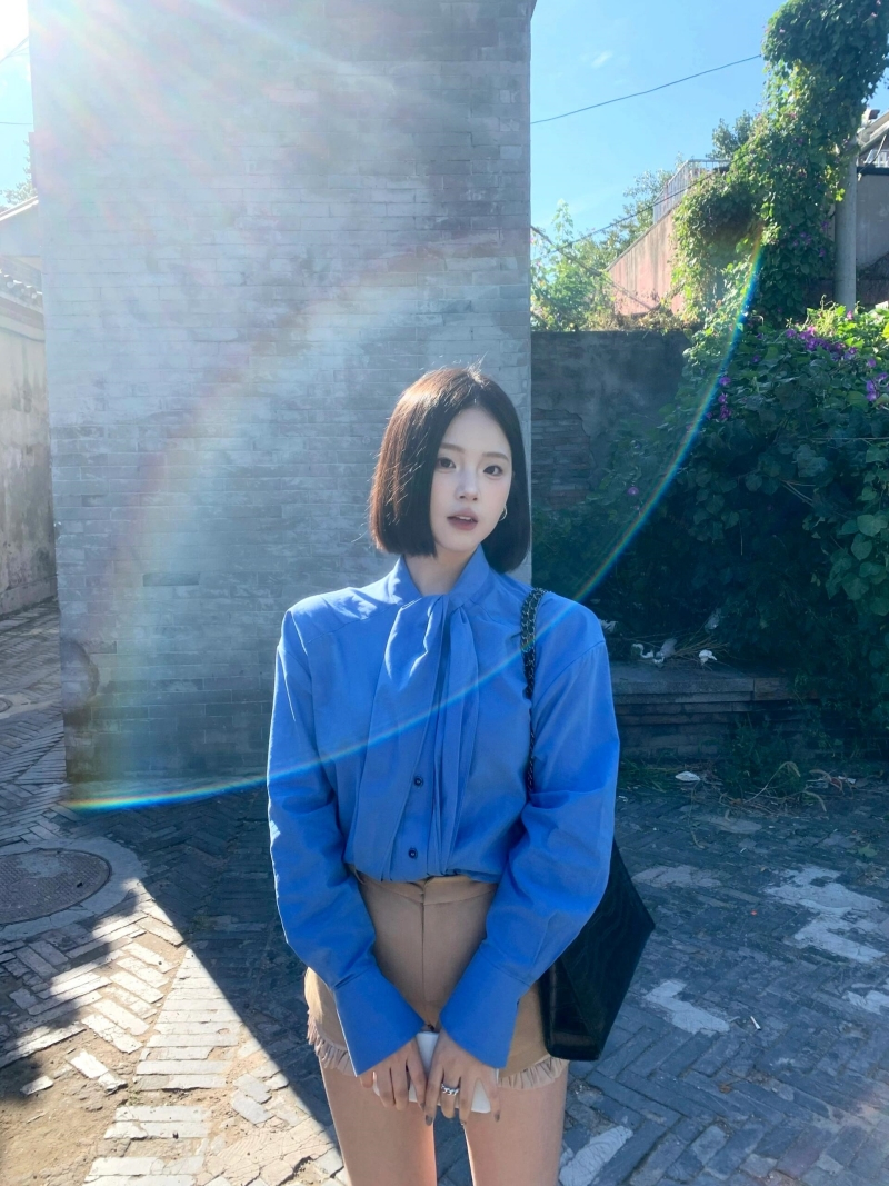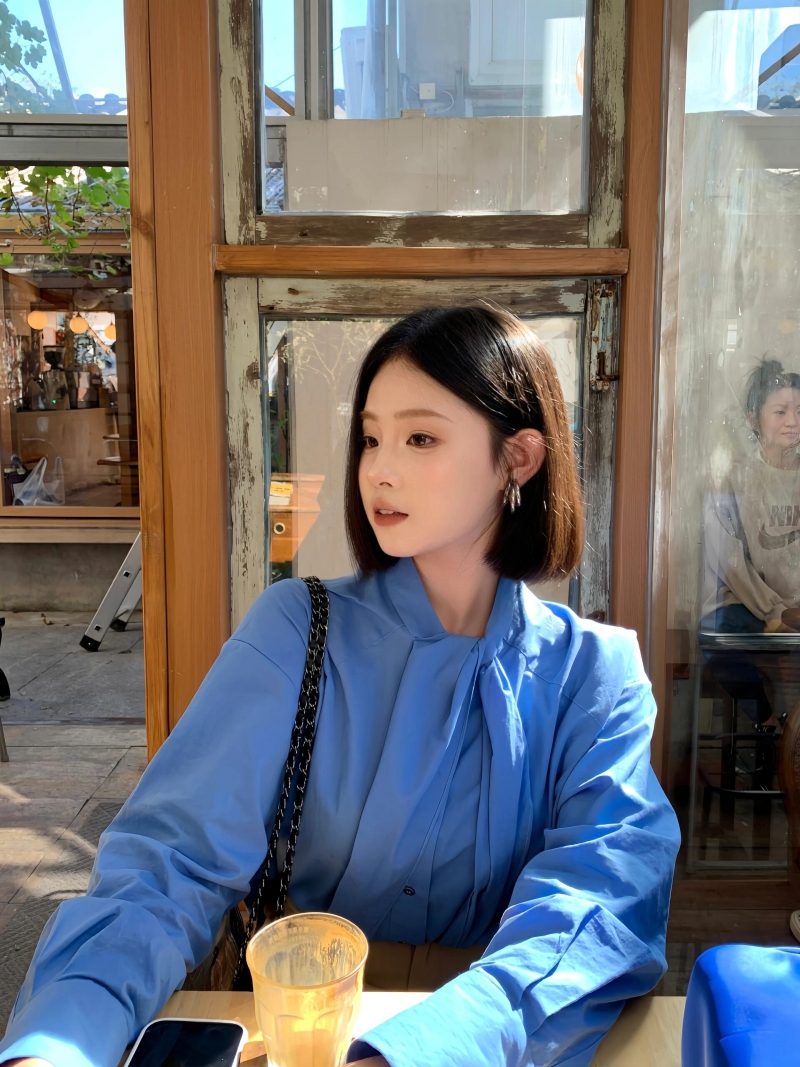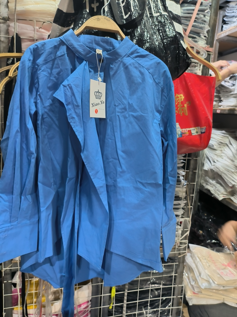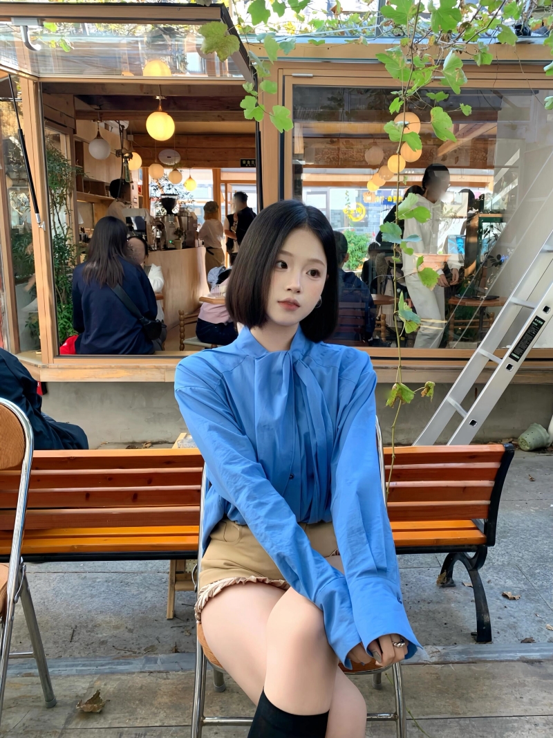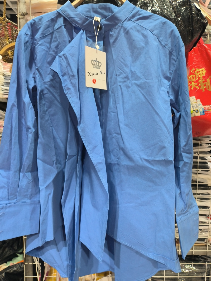 RECOIN R1C blue long-sleeved tie shirt women's autumn loose slim spring and autumn design French top
