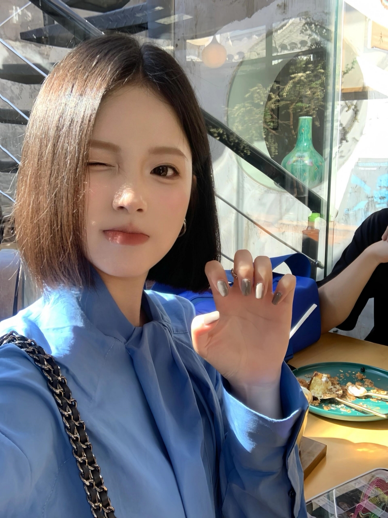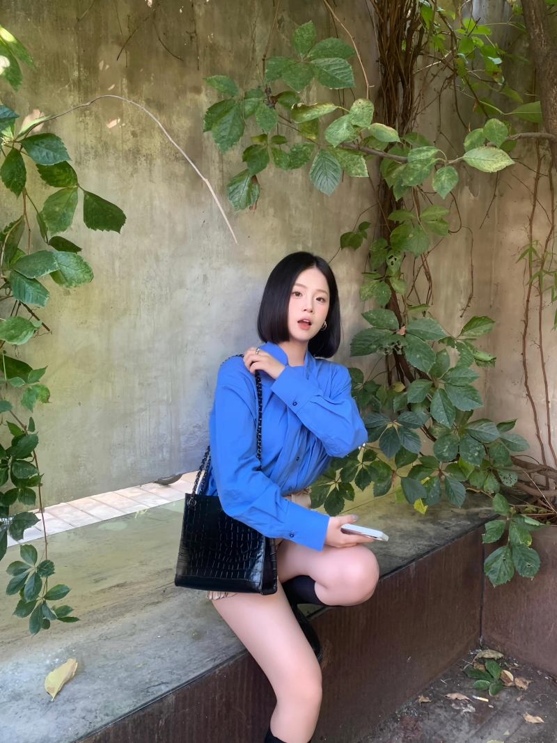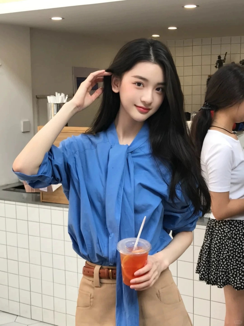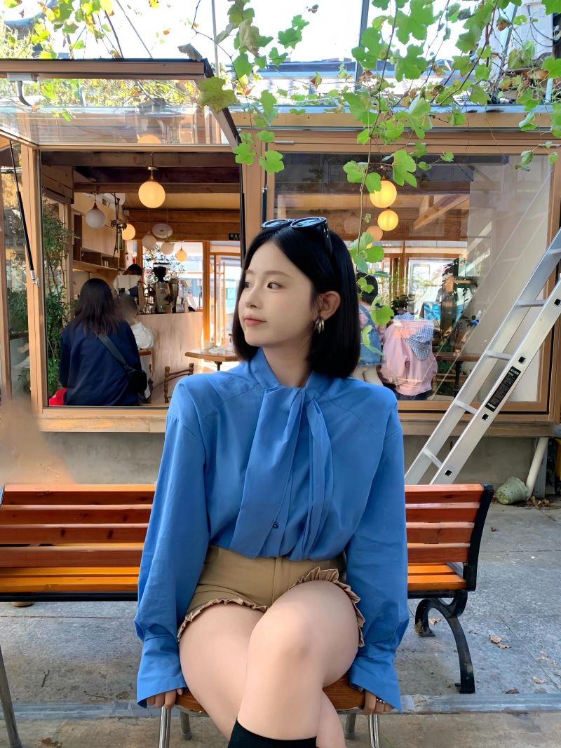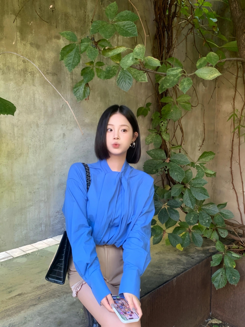 RECOIN R1C blue long-sleeved tie shirt women's autumn loose slim spring and autumn design French top