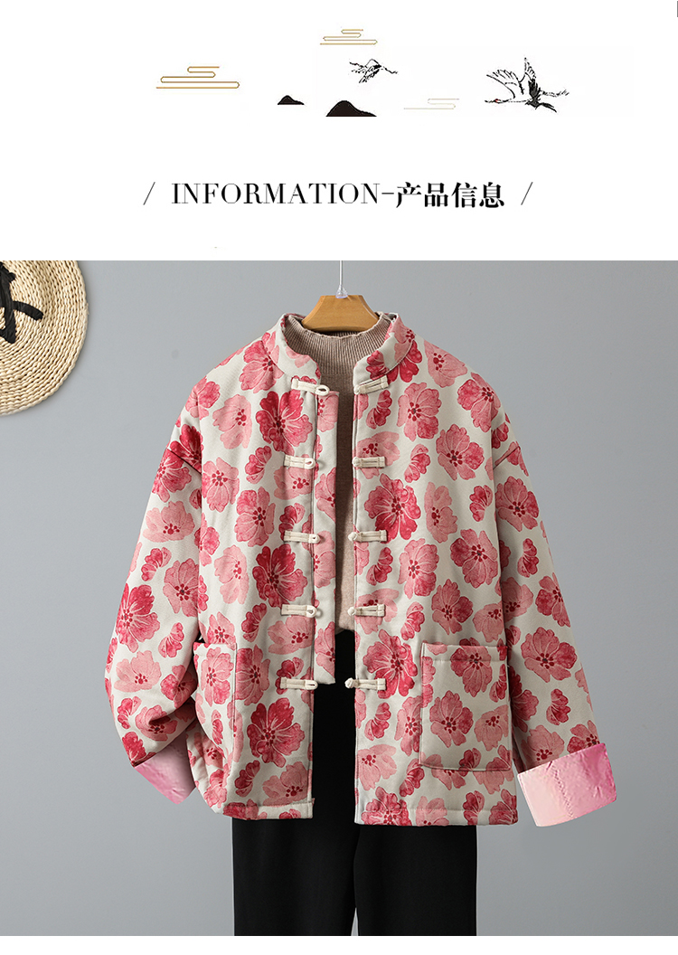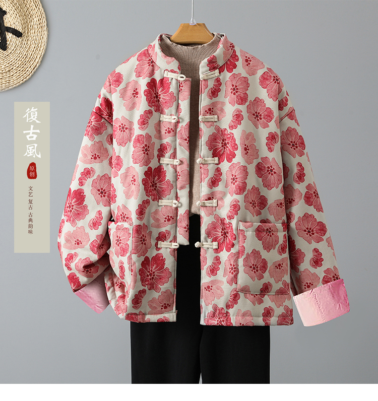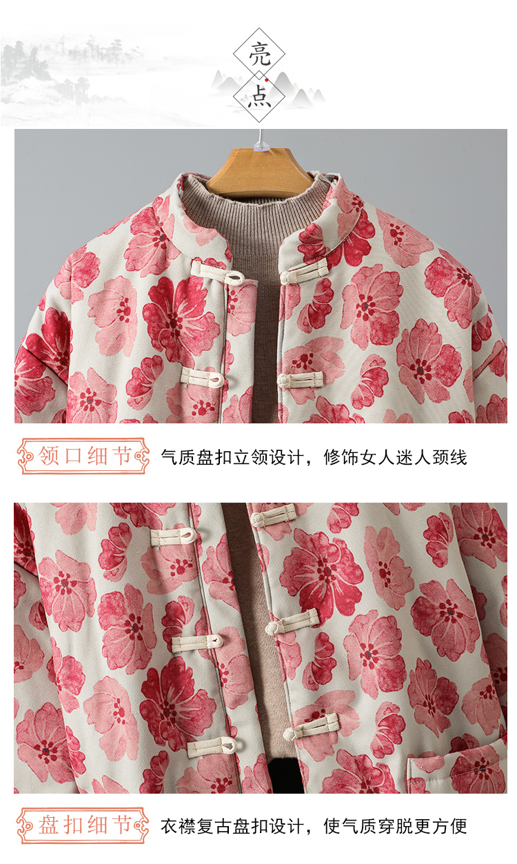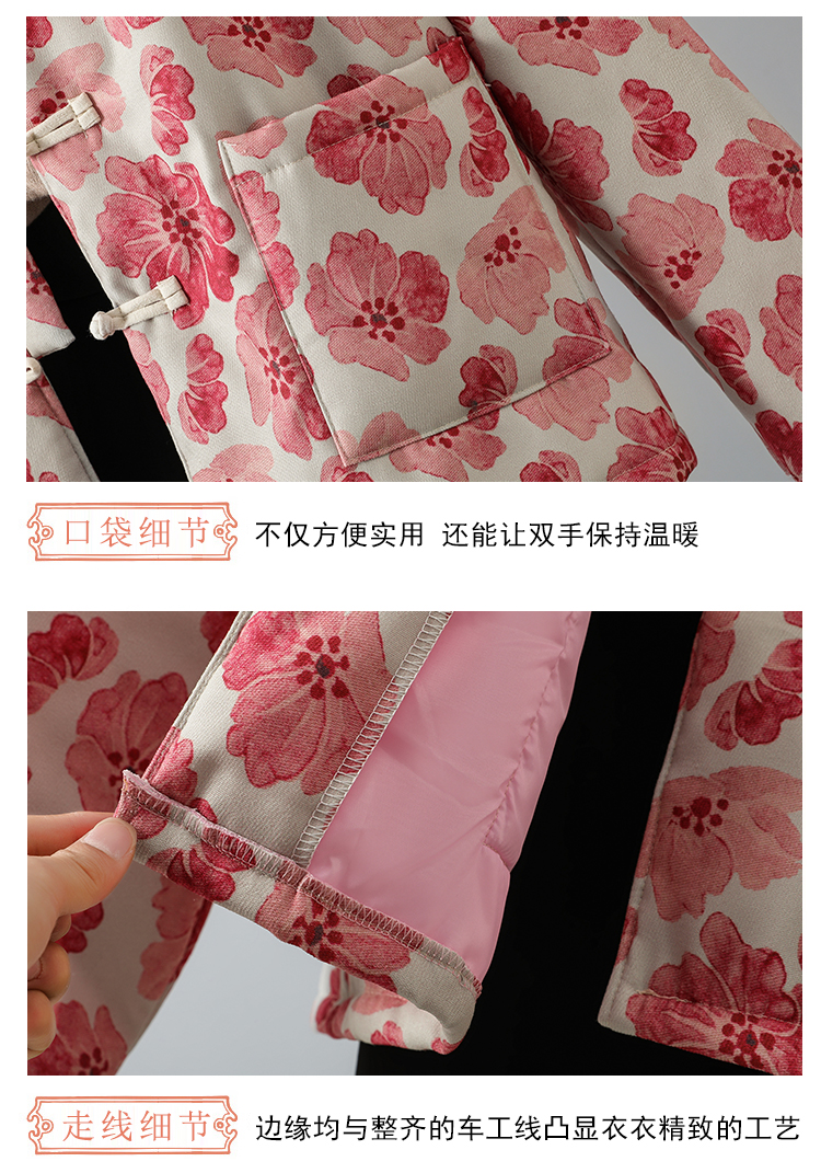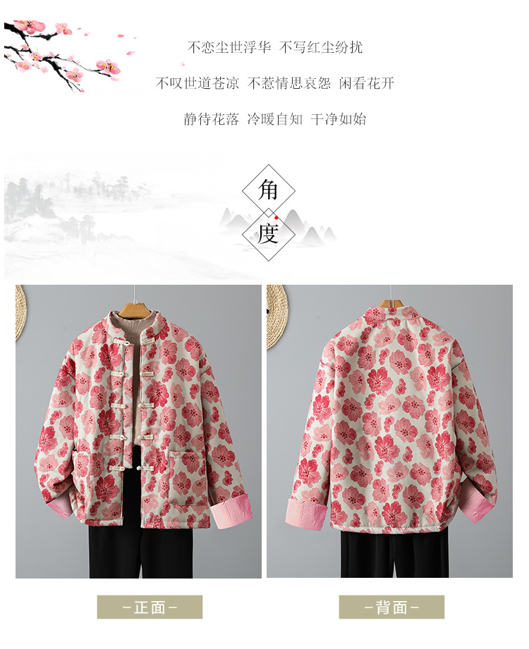 实拍 新中式女装国风盘扣上衣粉色夹棉外套棉衣棉服秋冬款