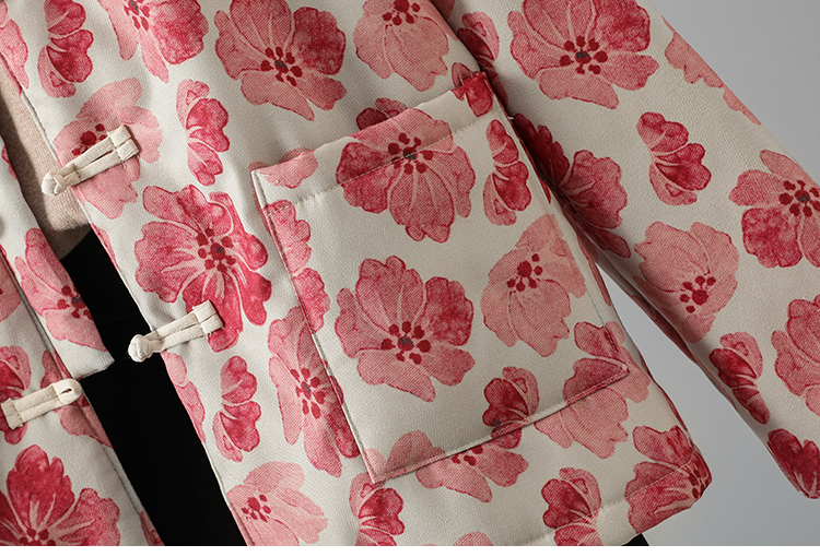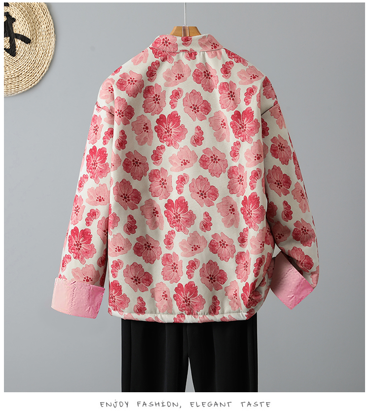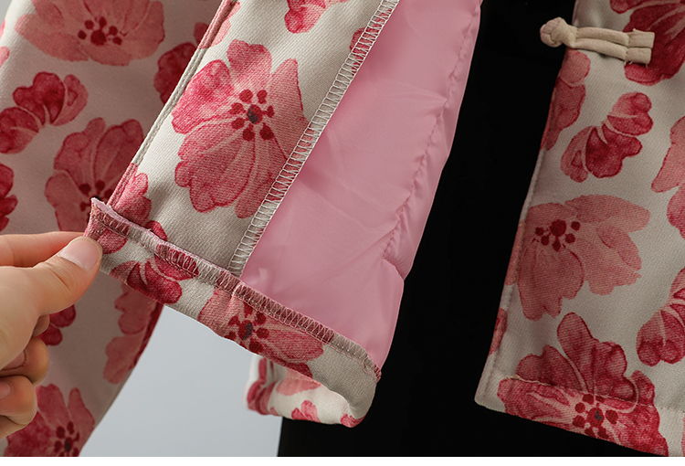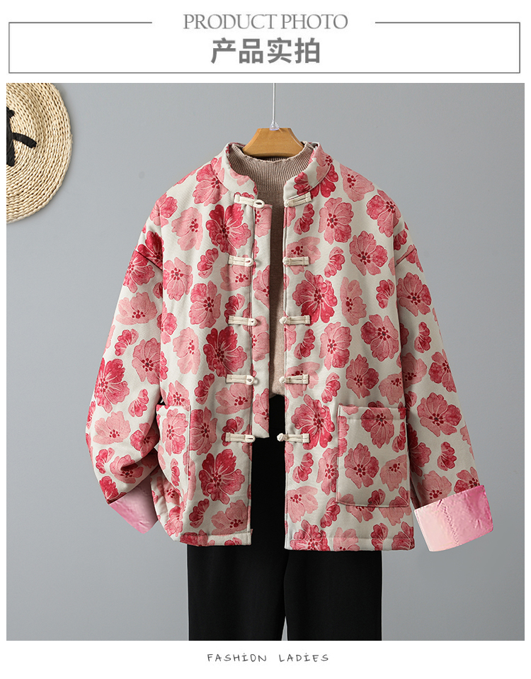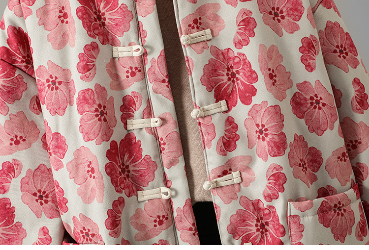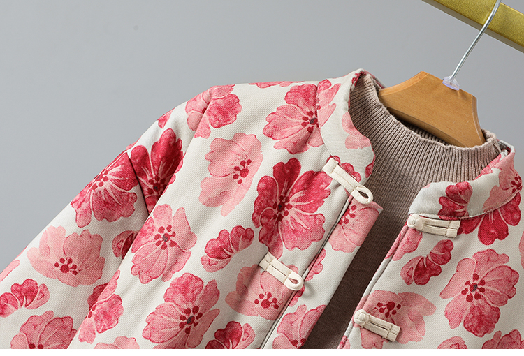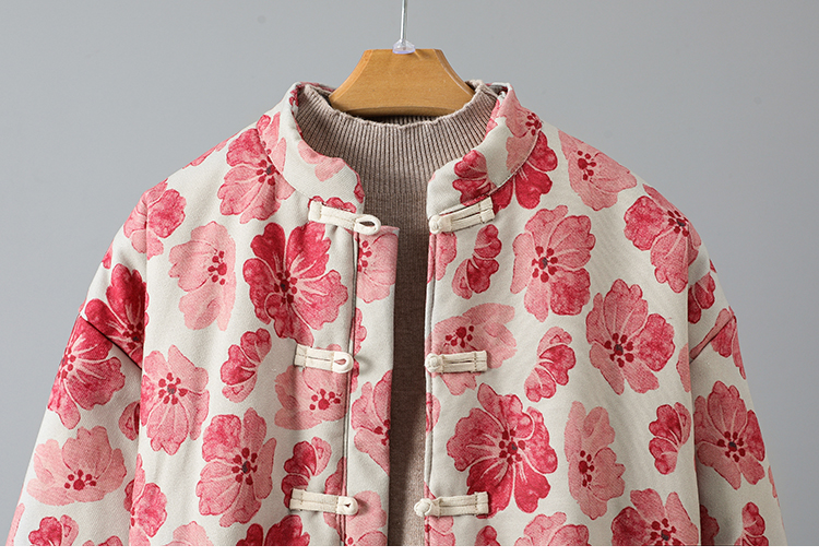 实拍 新中式女装国风盘扣上衣粉色夹棉外套棉衣棉服秋冬款