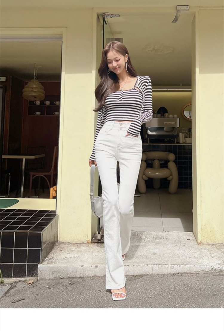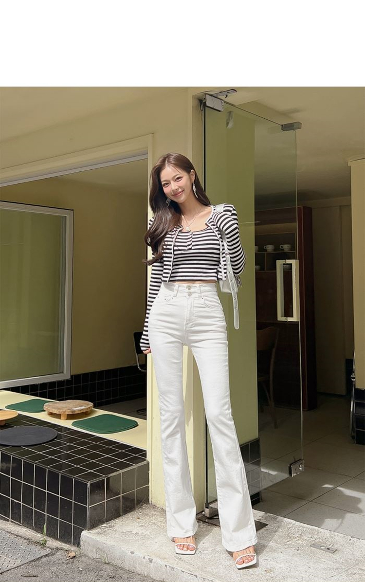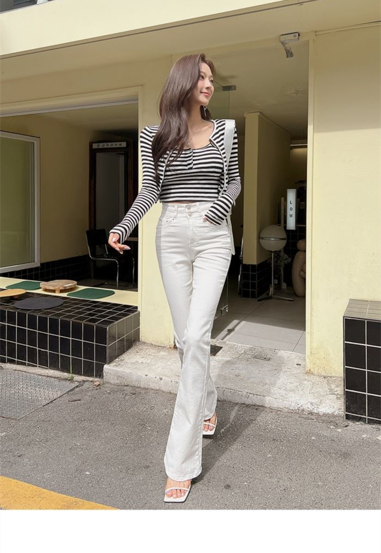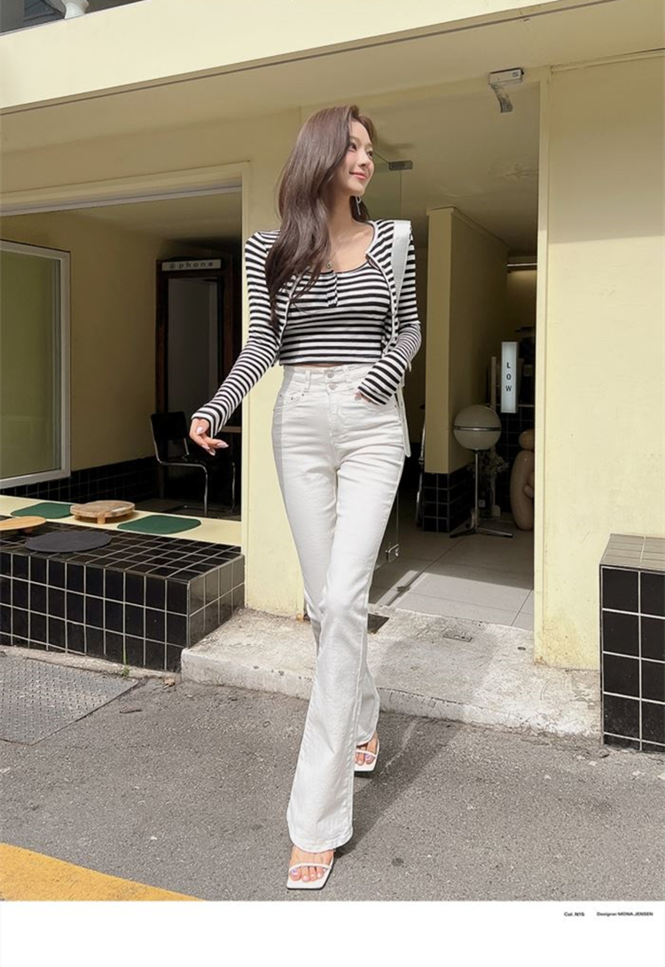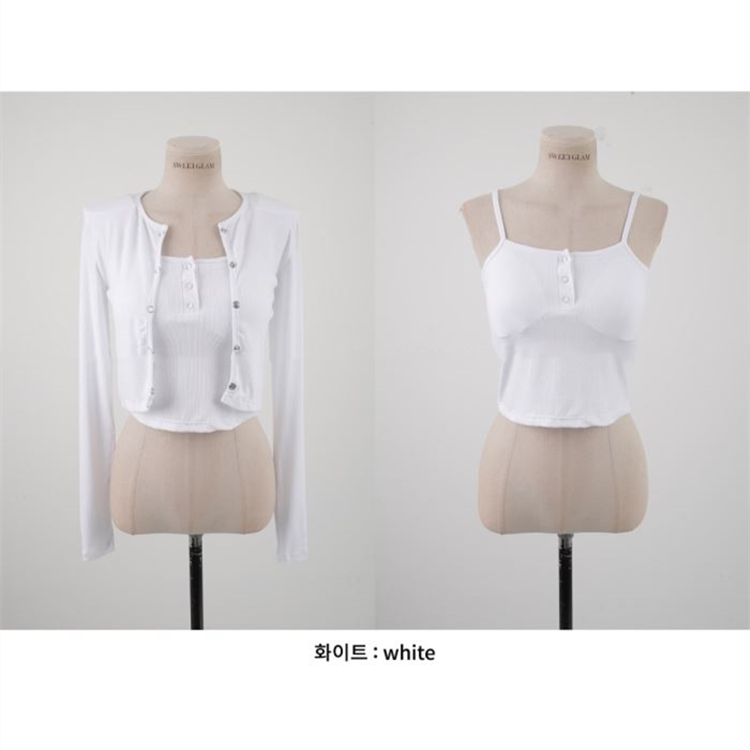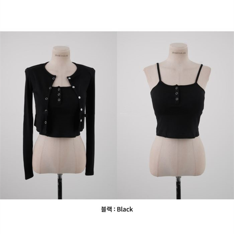 South Korea Dongdaemun new temperament high waist slim striped camisole long sleeve sunscreen cardigan two-piece suit for women