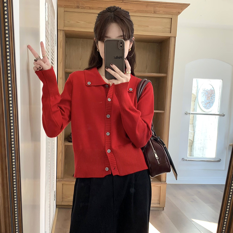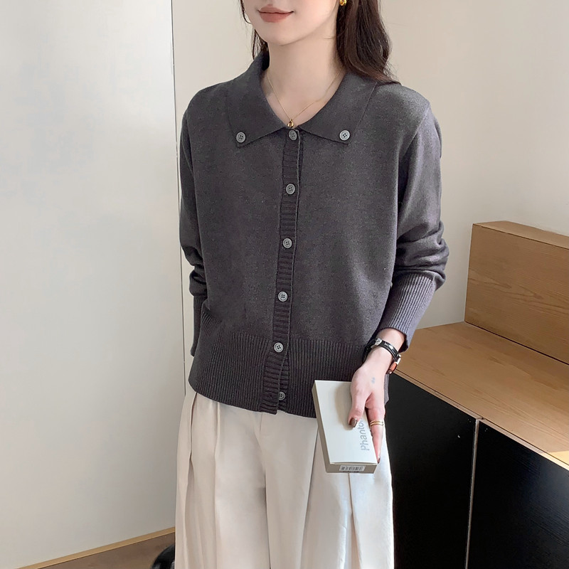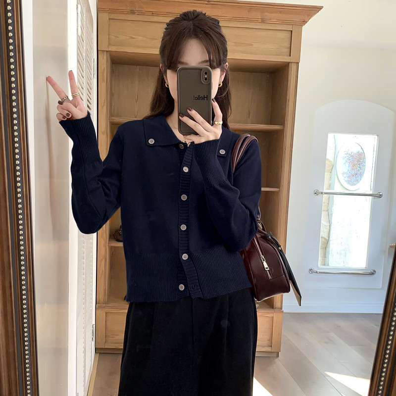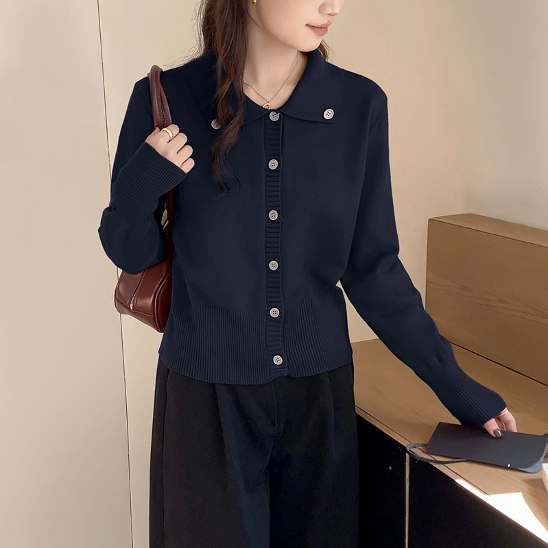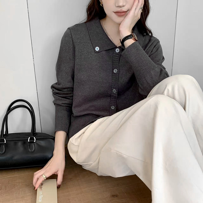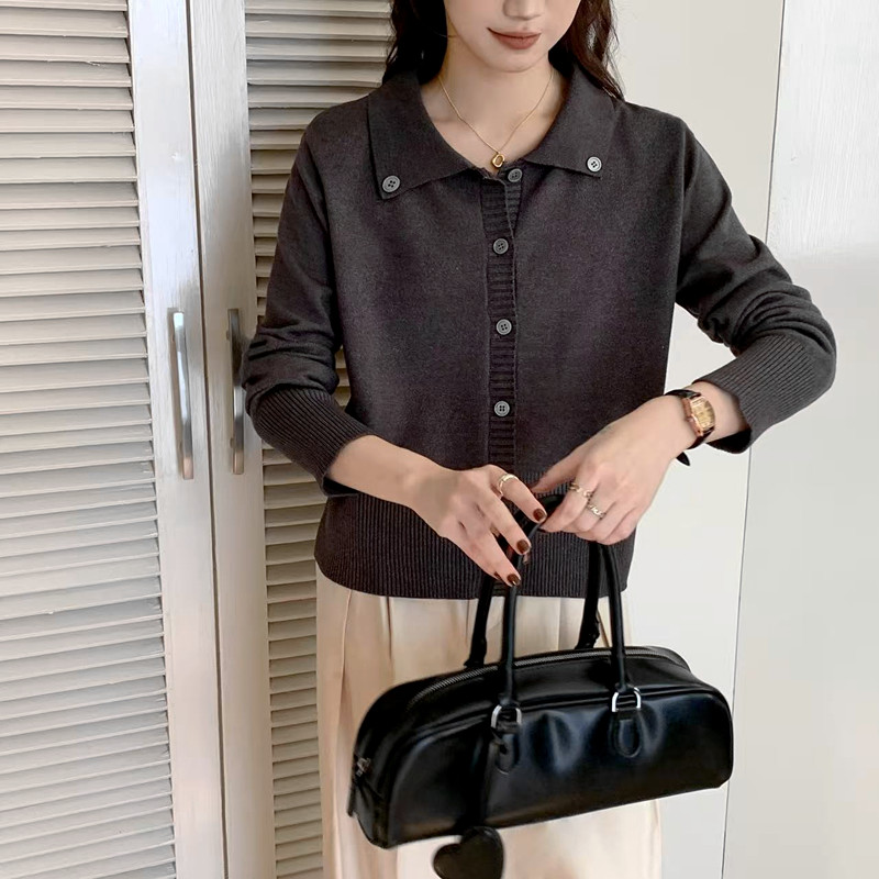 cookadaily mermaid_autumn and winter high-grade soft and glutinous knitted lapel three-color polo cardigan women's sweater jacket