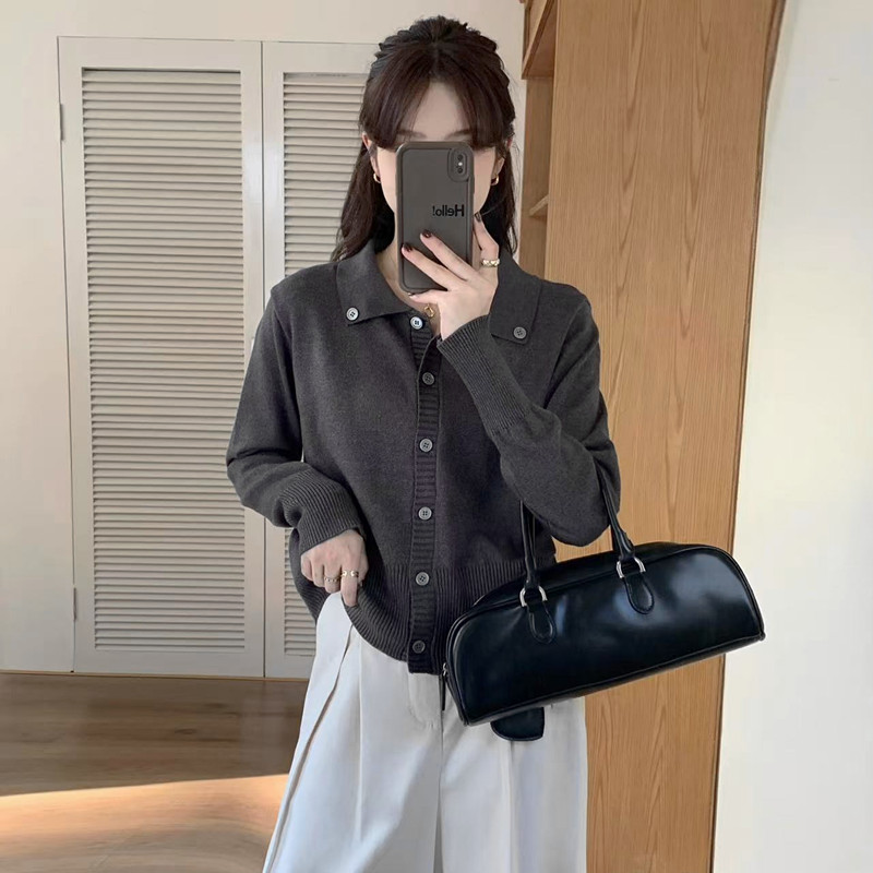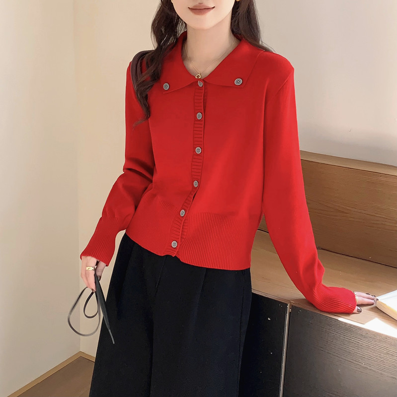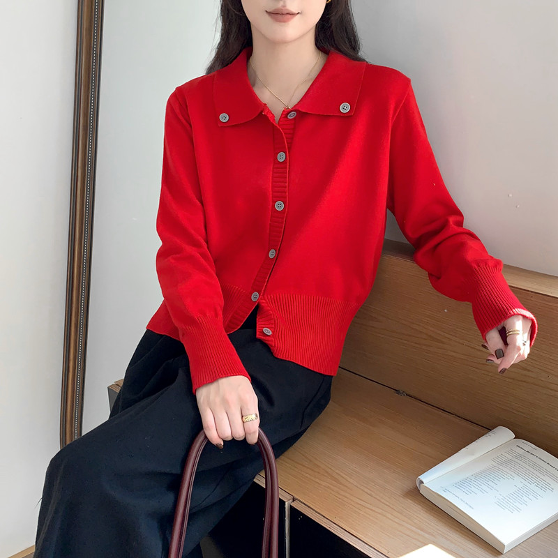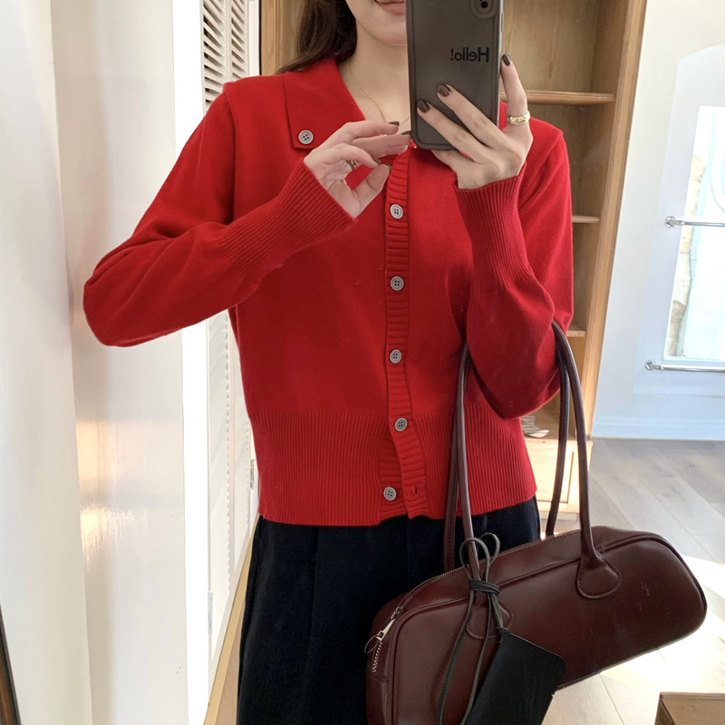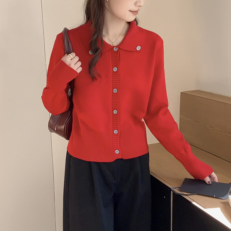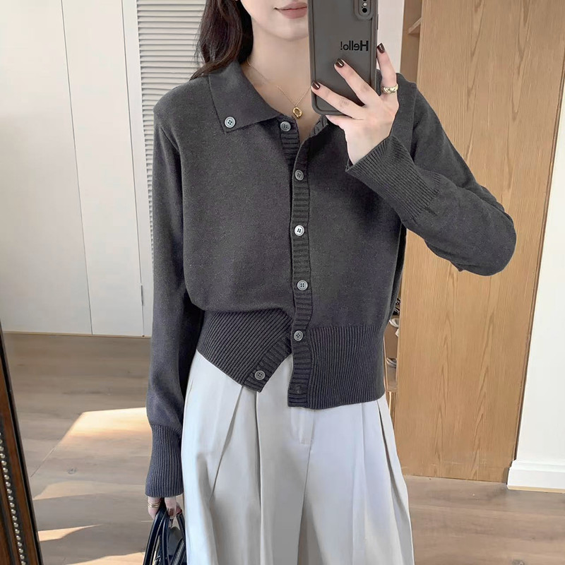 cookadaily mermaid_autumn and winter high-grade soft and glutinous knitted lapel three-color polo cardigan women's sweater jacket
