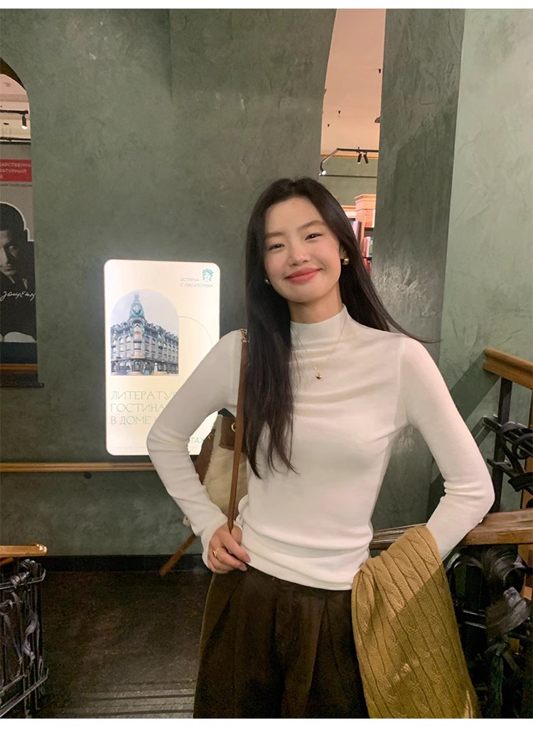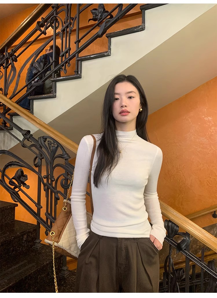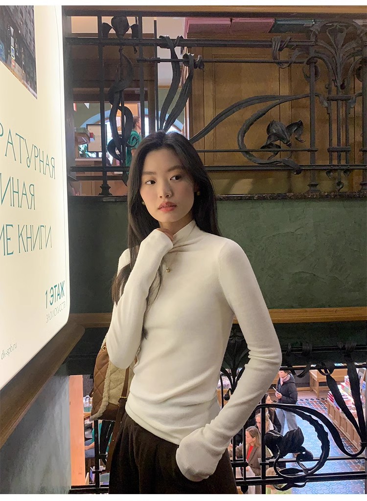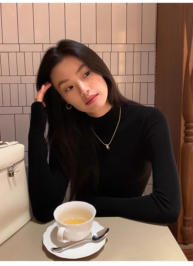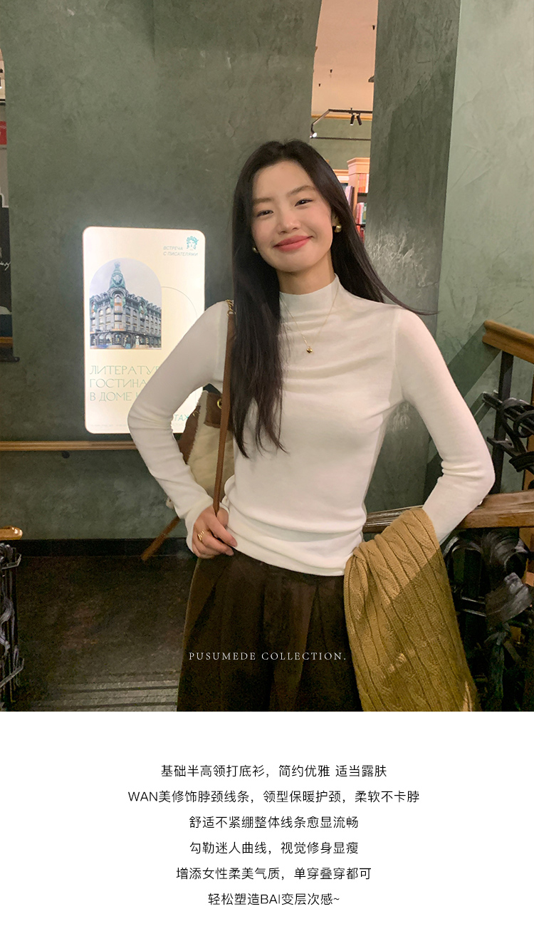 pusumede half turtleneck 100% wool knitted bottoming shirt women's autumn and winter new slim long-sleeved inner top