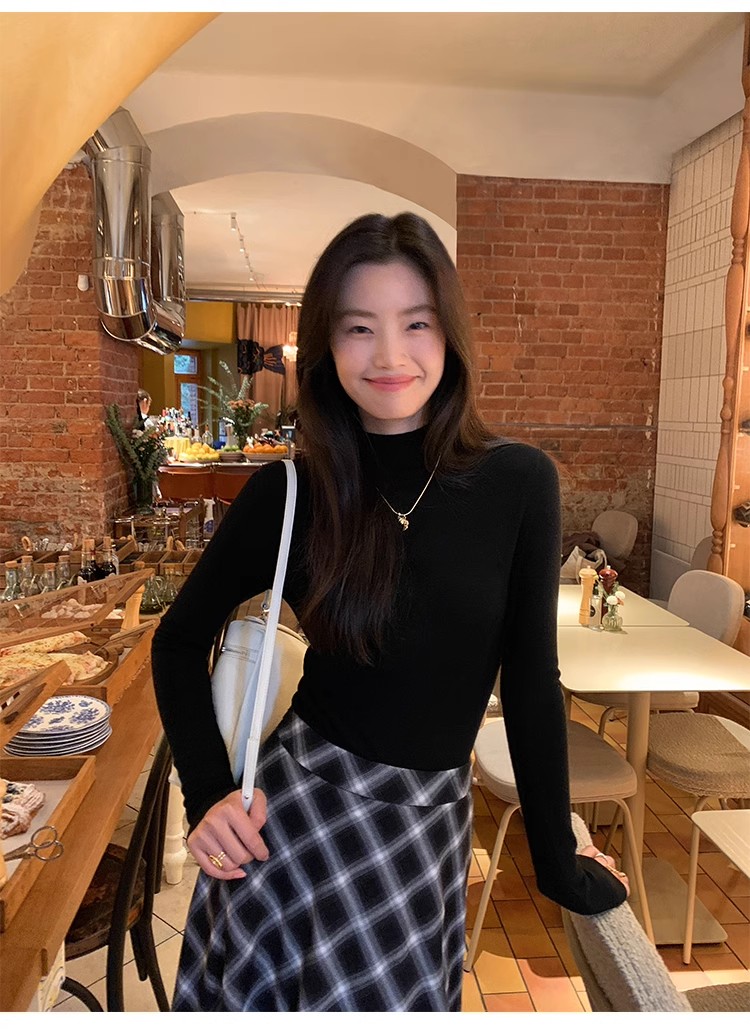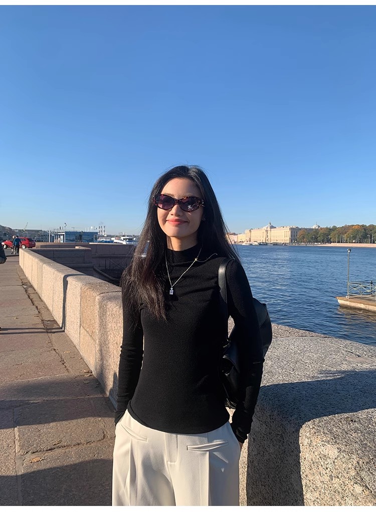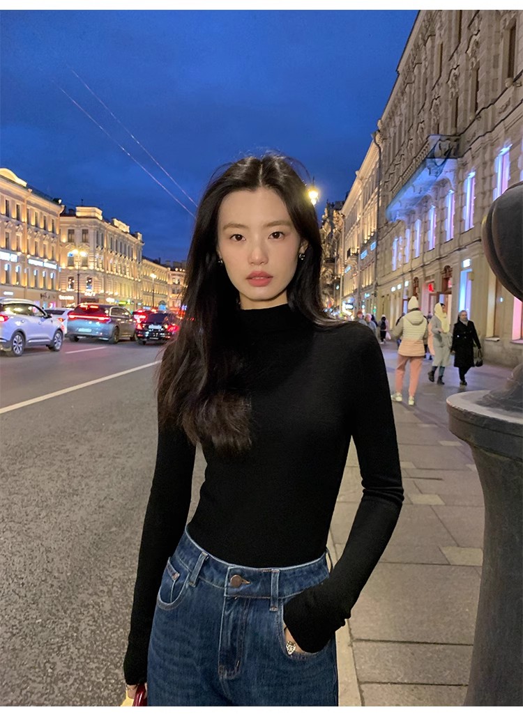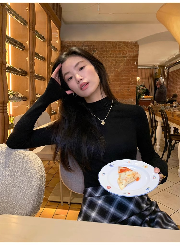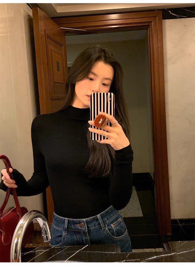 pusumede half turtleneck 100% wool knitted bottoming shirt women's autumn and winter new slim long-sleeved inner top