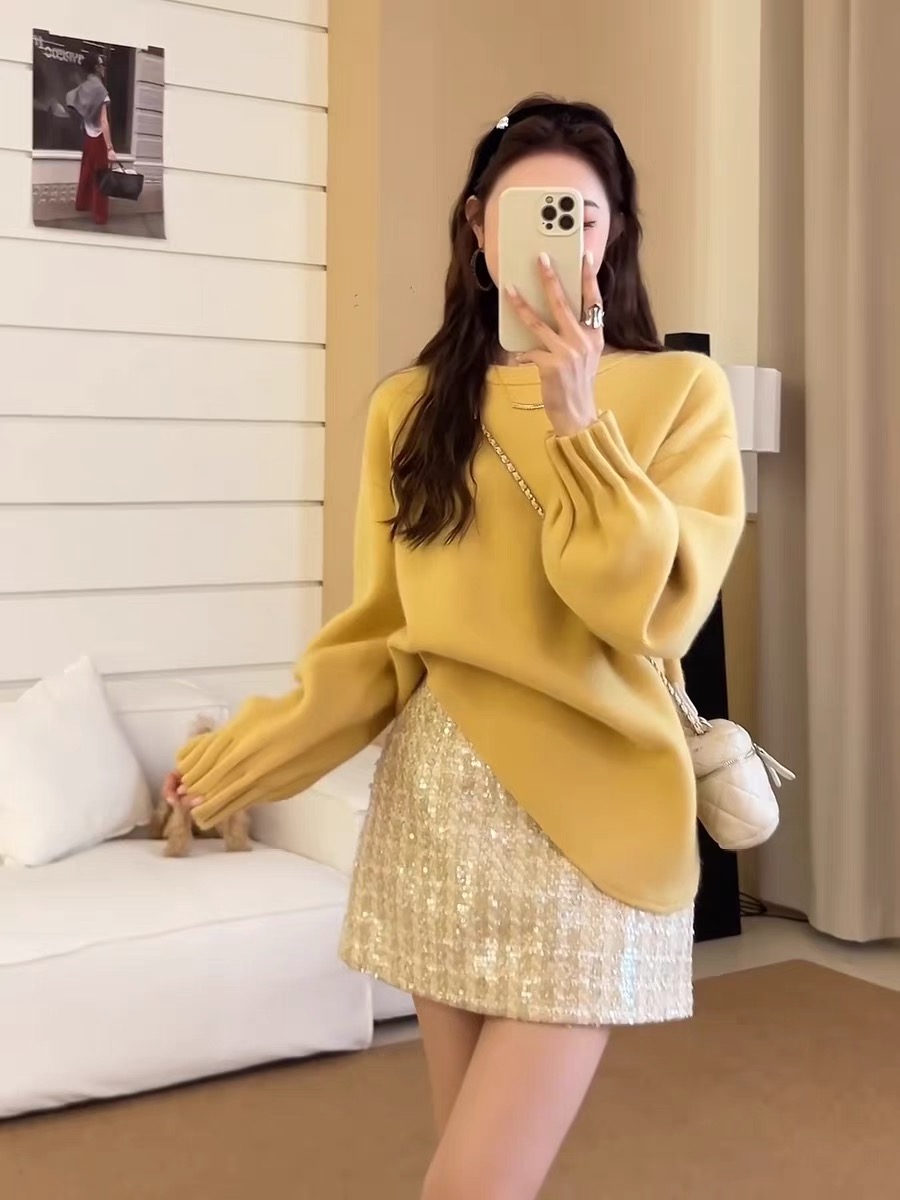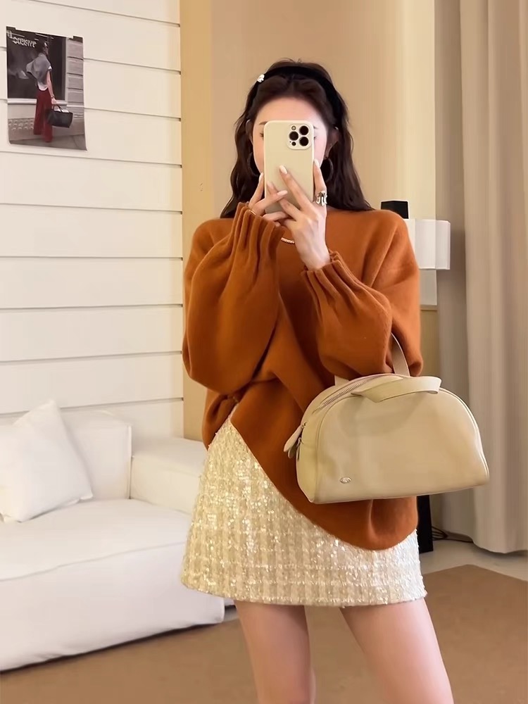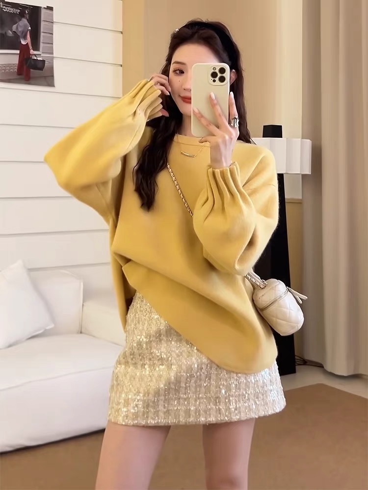软糯纯色简约宽松显瘦圆领套头毛衣秋冬新款加厚保暖百搭针织上衣