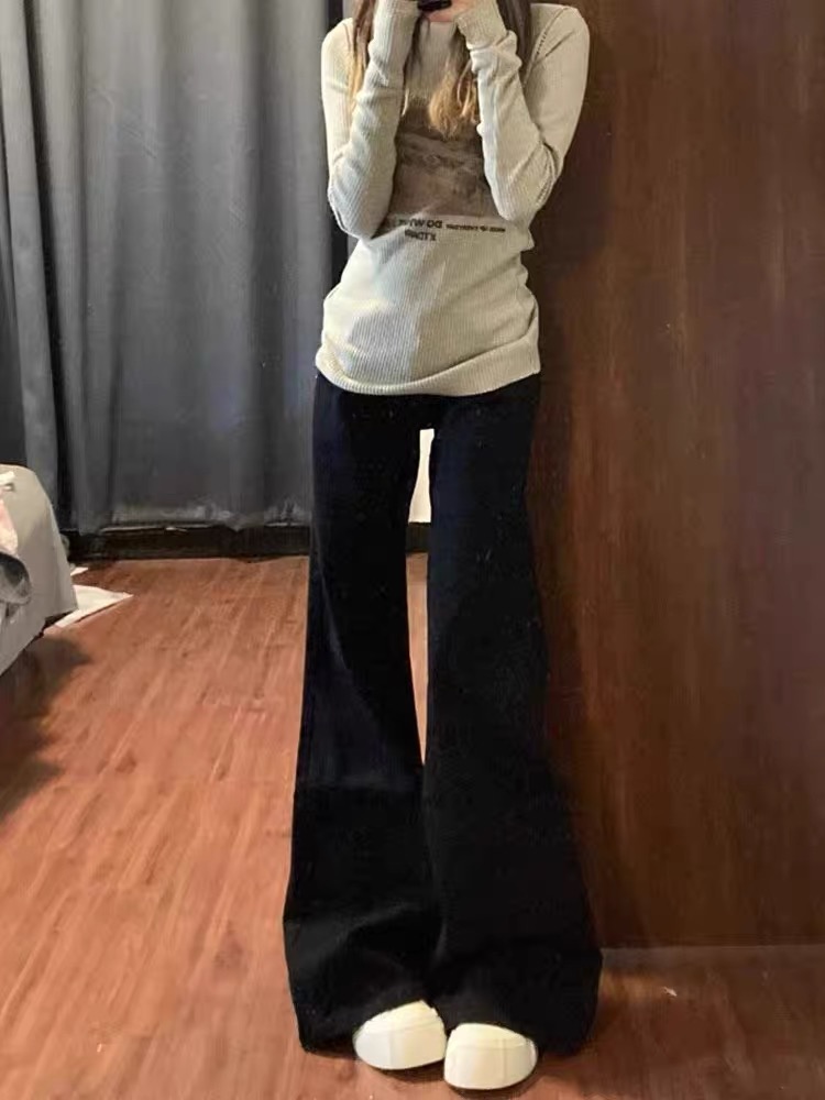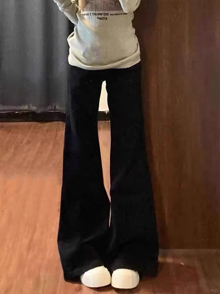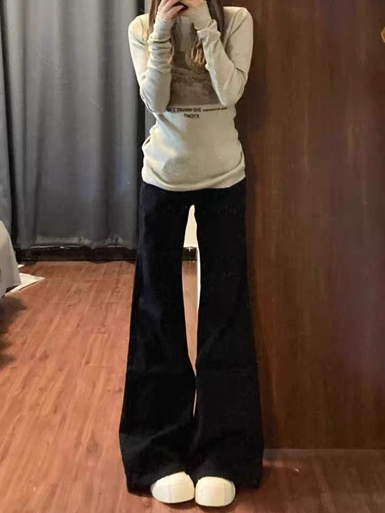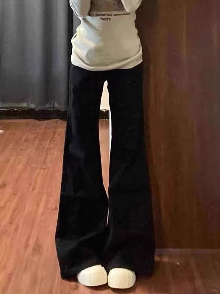 黑色不贴腿微喇叭牛仔裤女冬季新款低腰宽松阔腿显瘦直筒马蹄裤子
