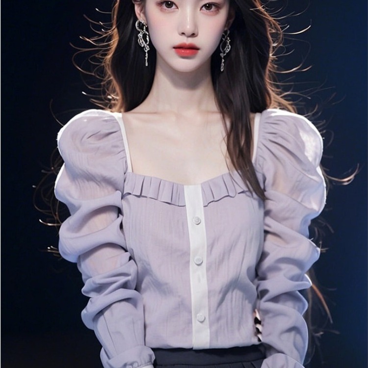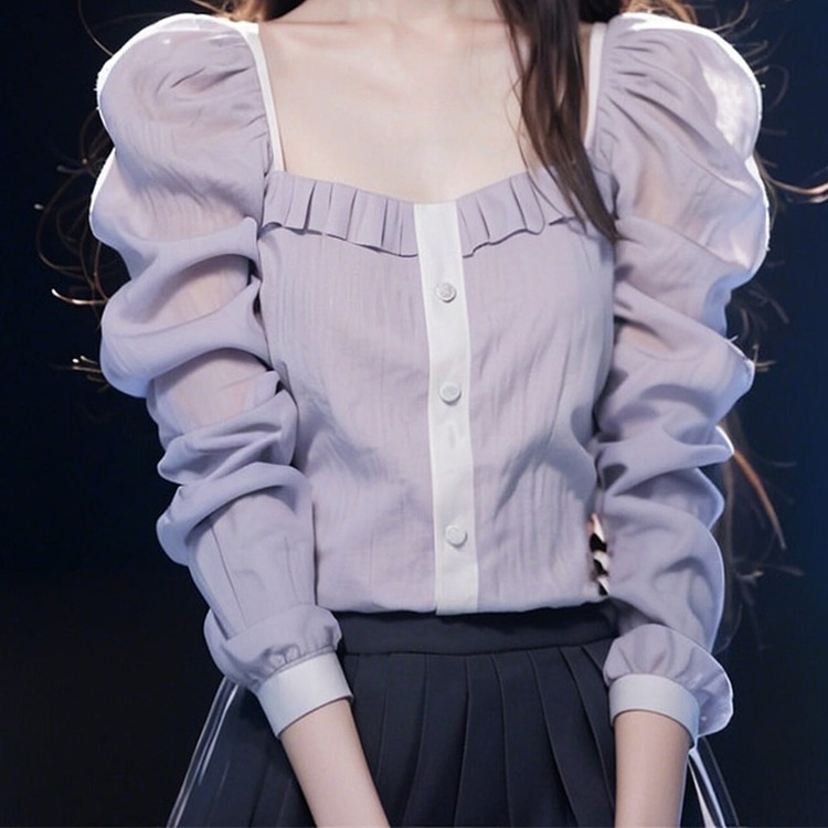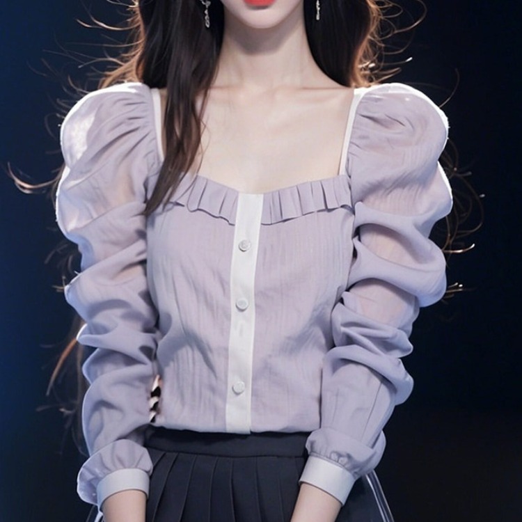 2025 spring new popular beautiful small shirt French niche fairy purple long-sleeved shirt tops female summer