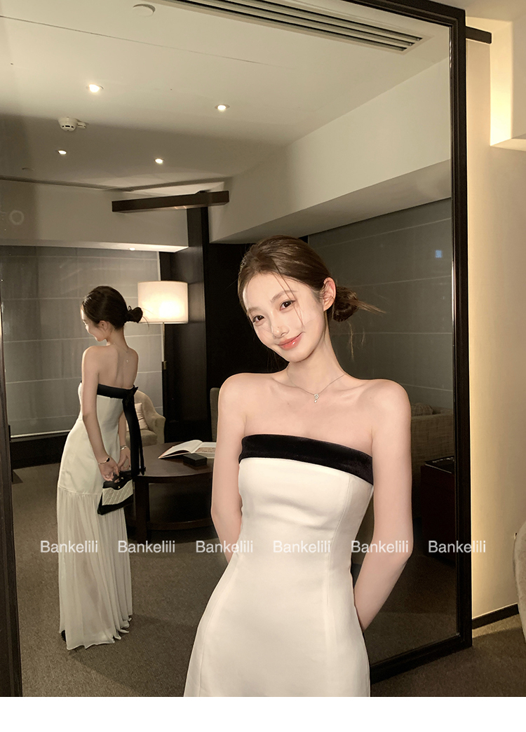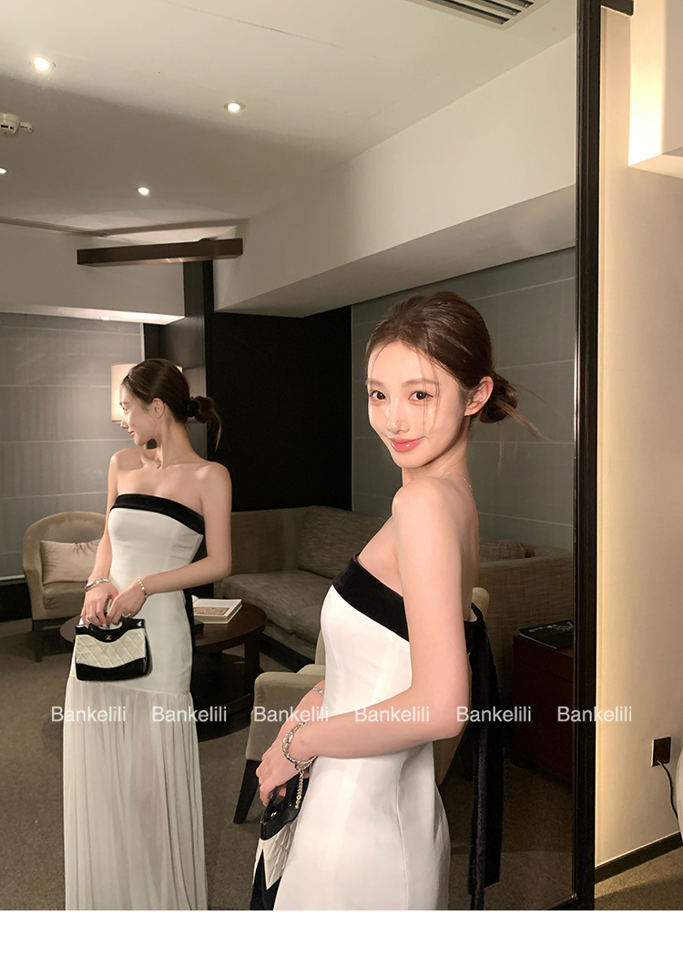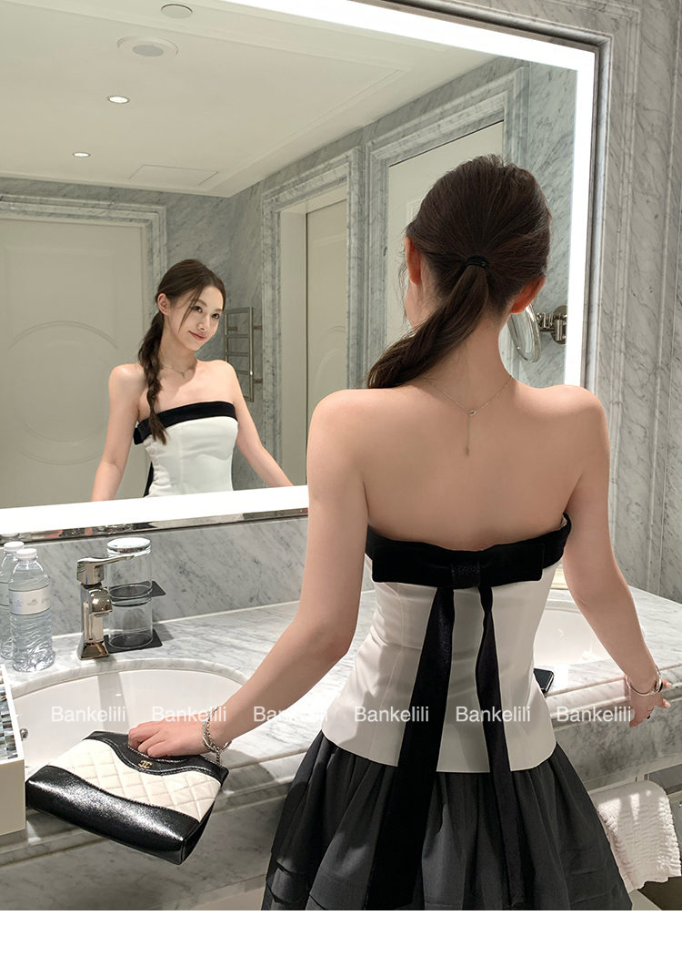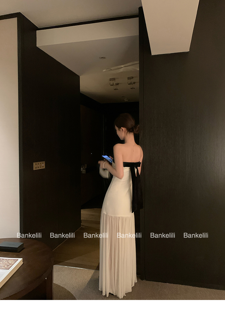 Chestnut Coco Bankelili Coco Colorblock Sleeveless Bow Tube Top Spring Dress