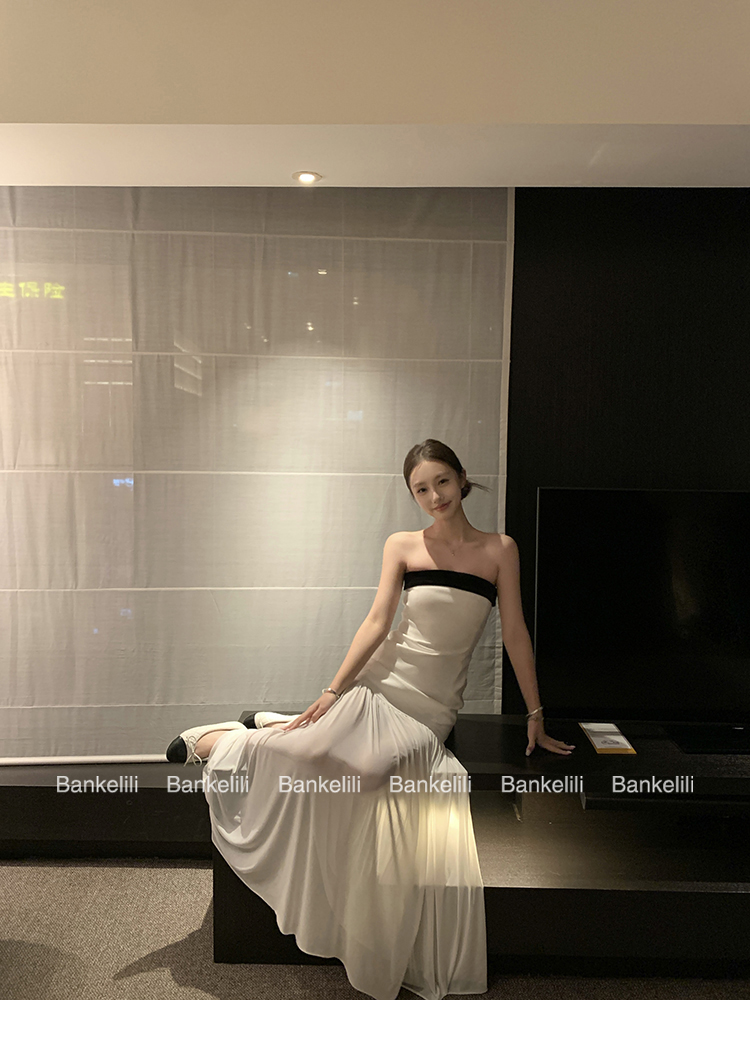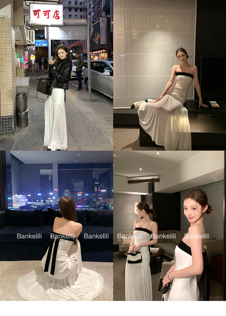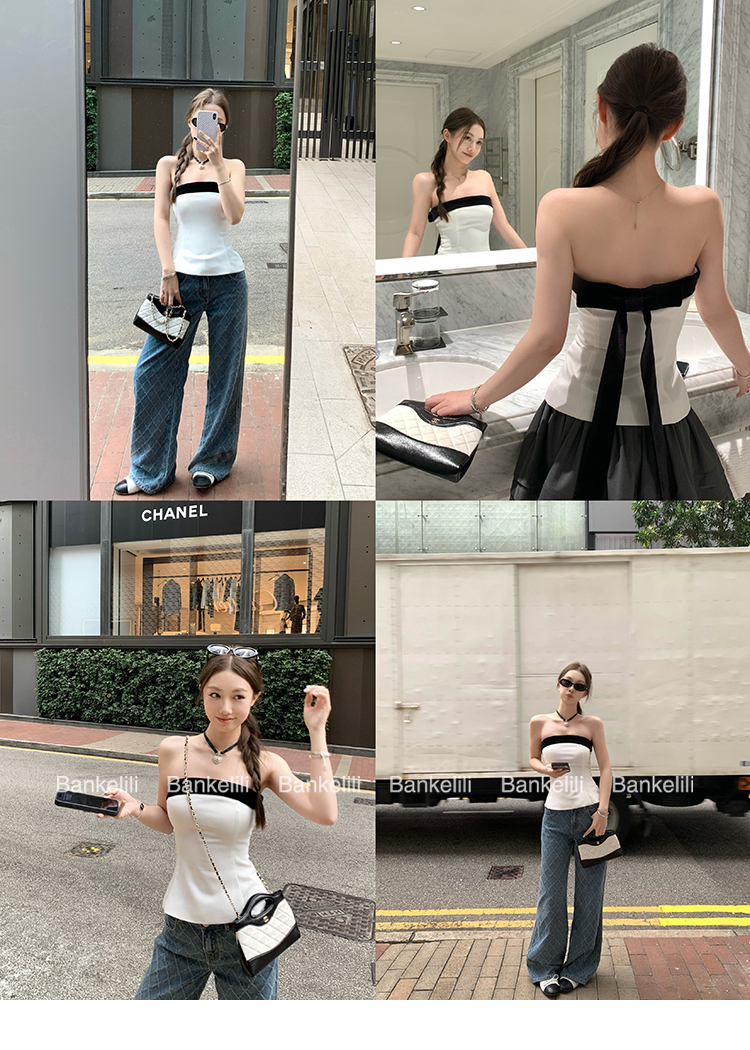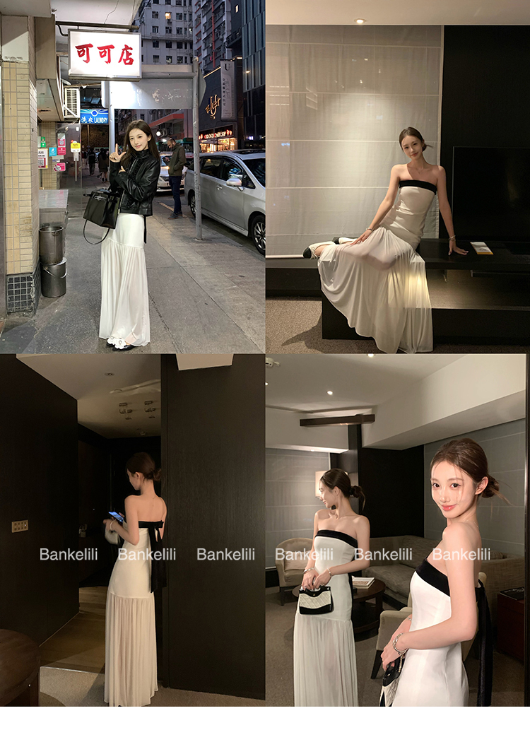 Chestnut Coco Bankelili Coco Colorblock Sleeveless Bow Tube Top Spring Dress