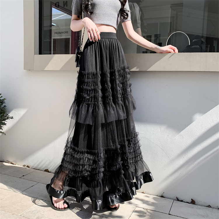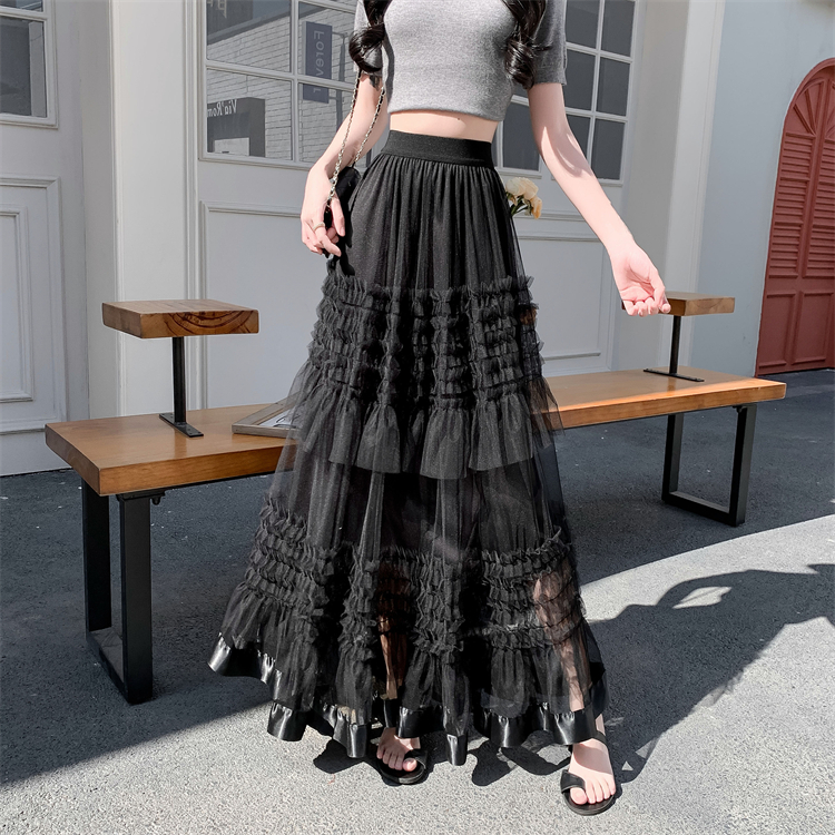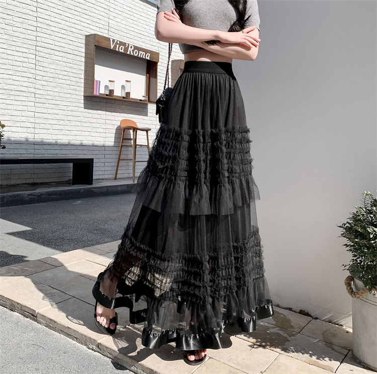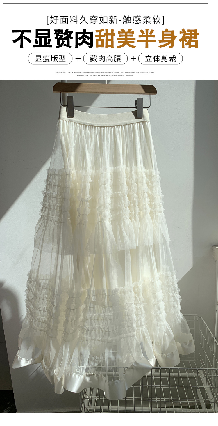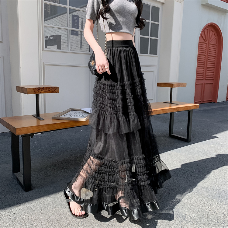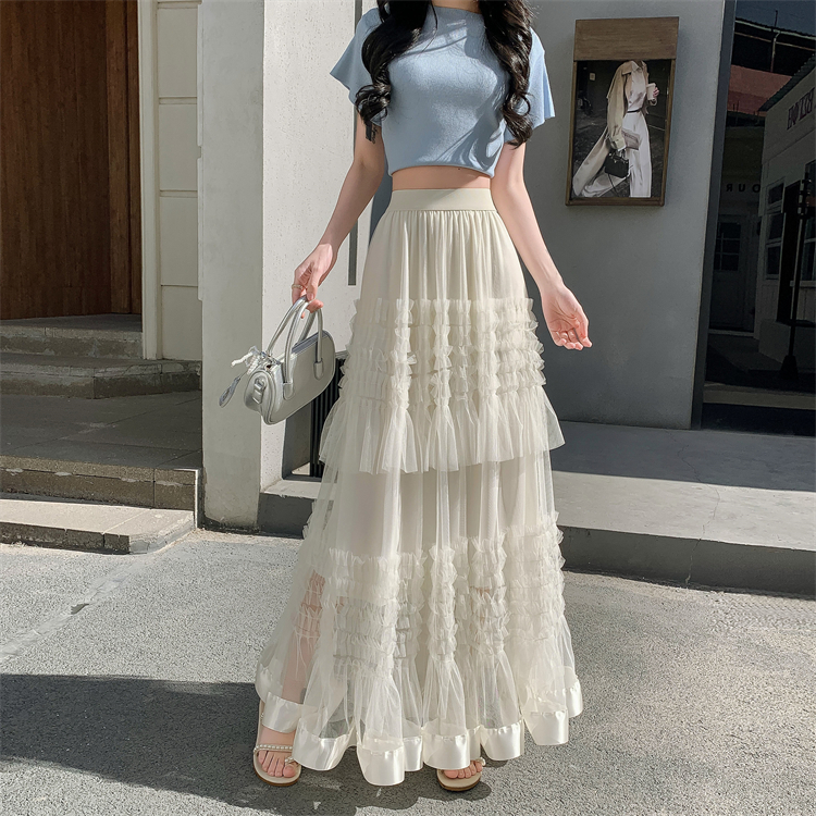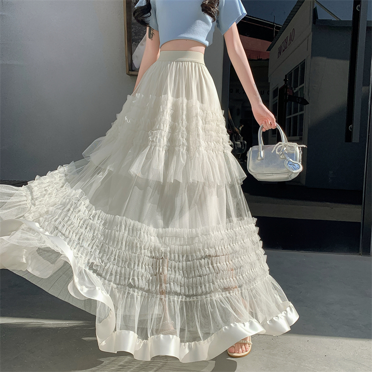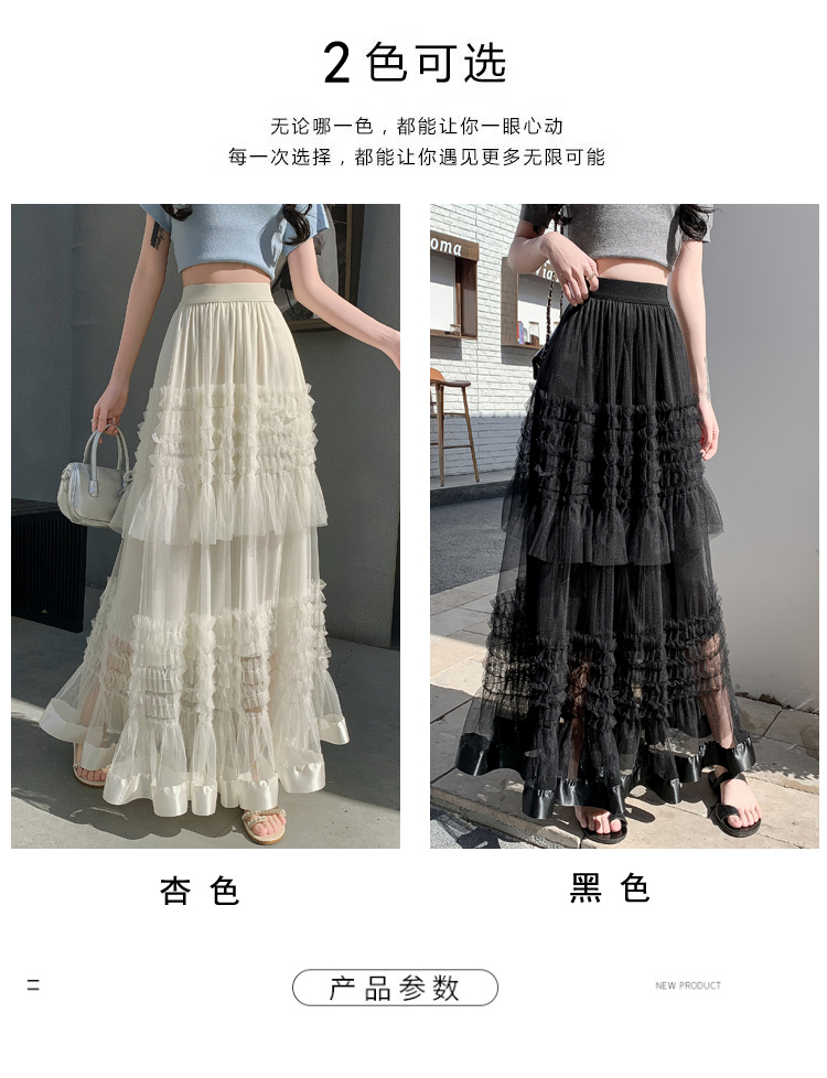 实拍网纱裙层层蛋糕半身裙女春夏2025新款高腰遮胯A字长裙纱裙子