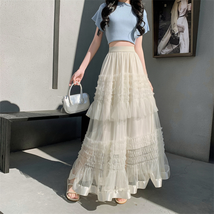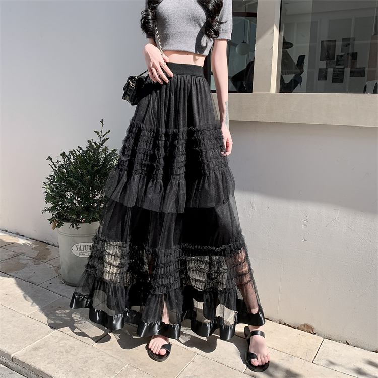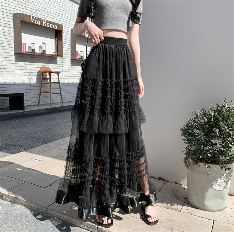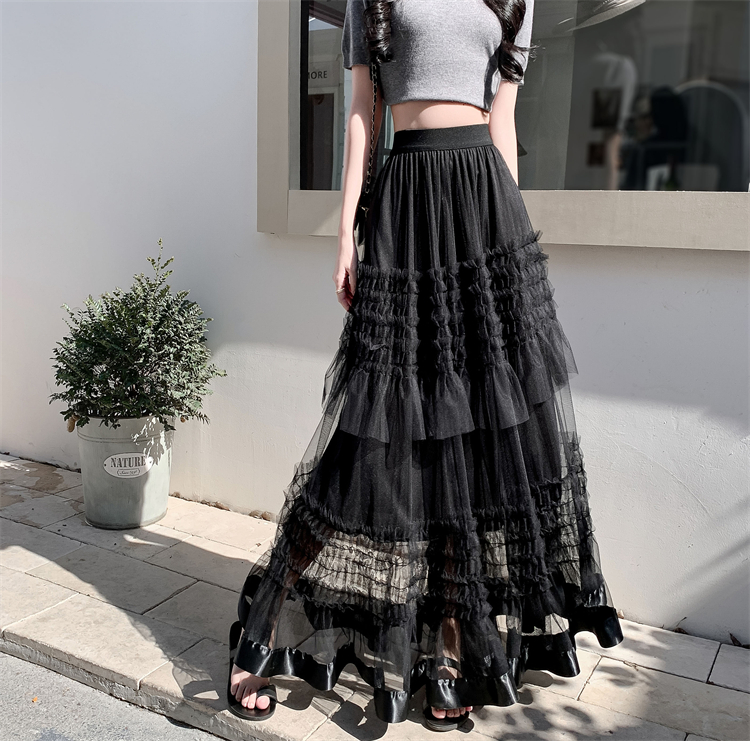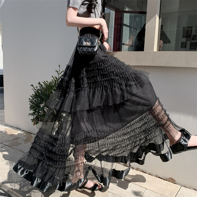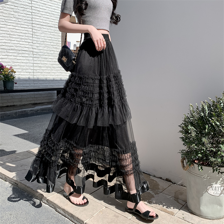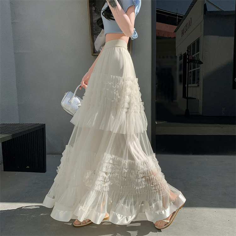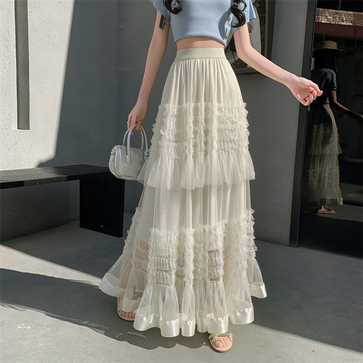 实拍网纱裙层层蛋糕半身裙女春夏2025新款高腰遮胯A字长裙纱裙子