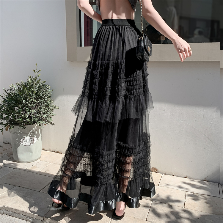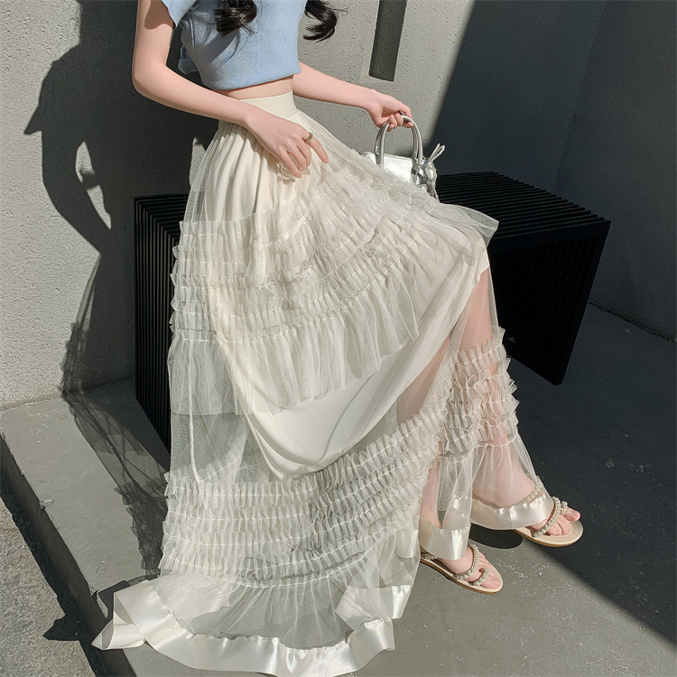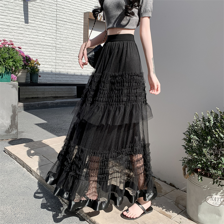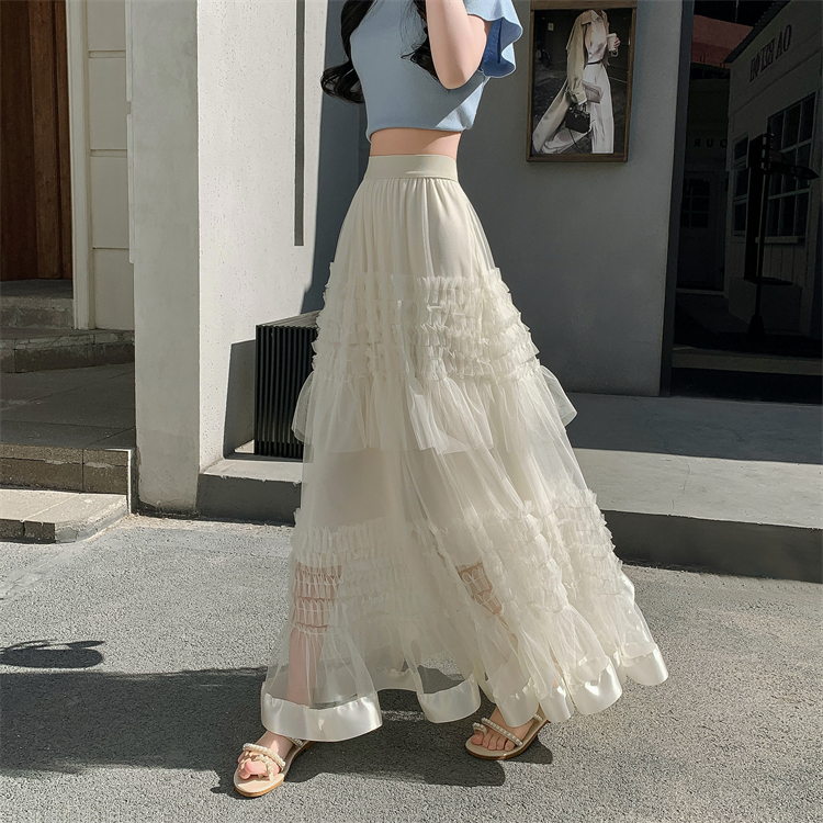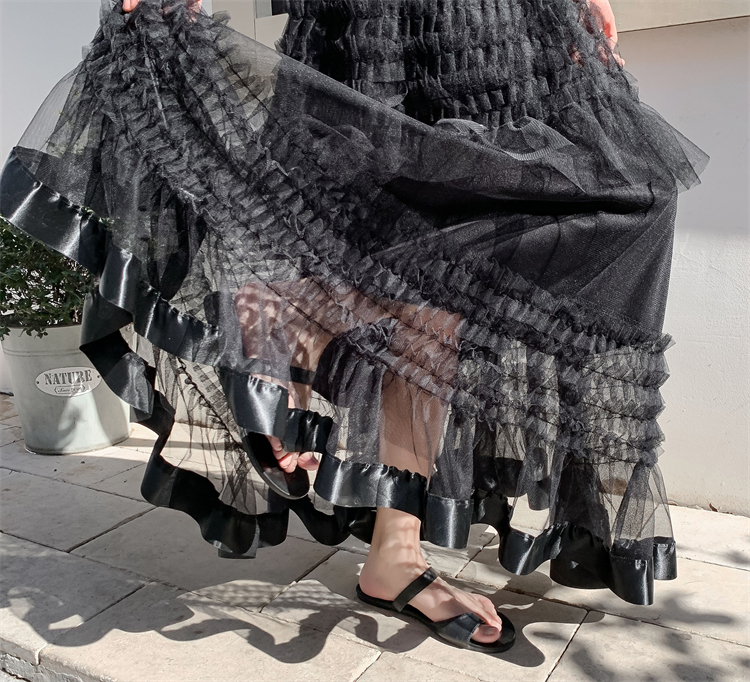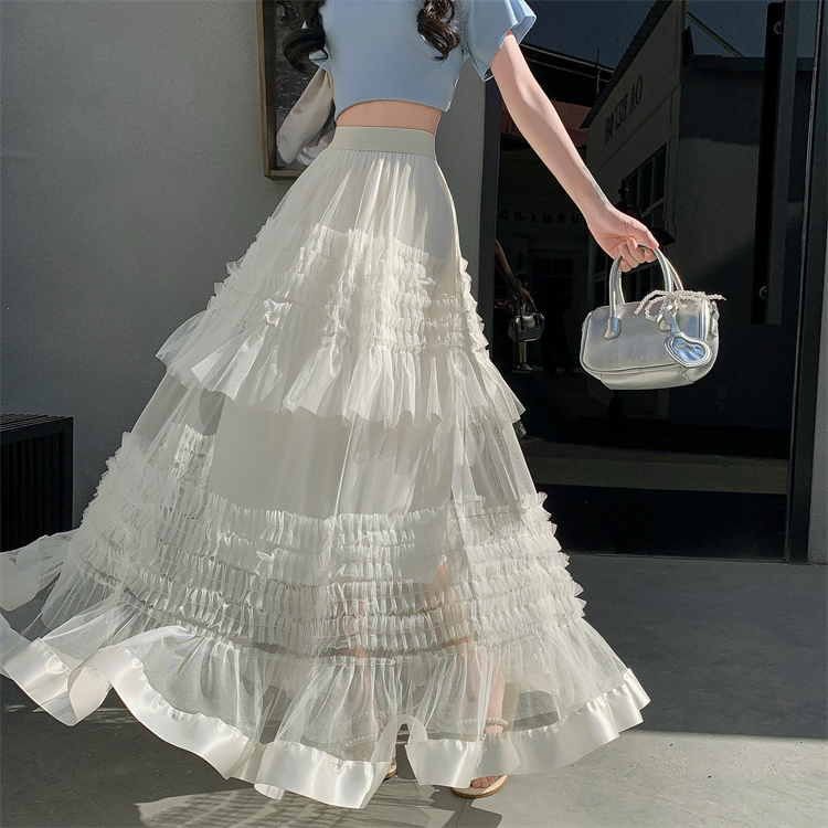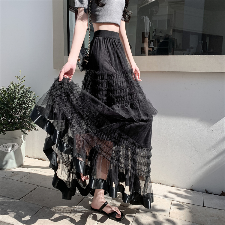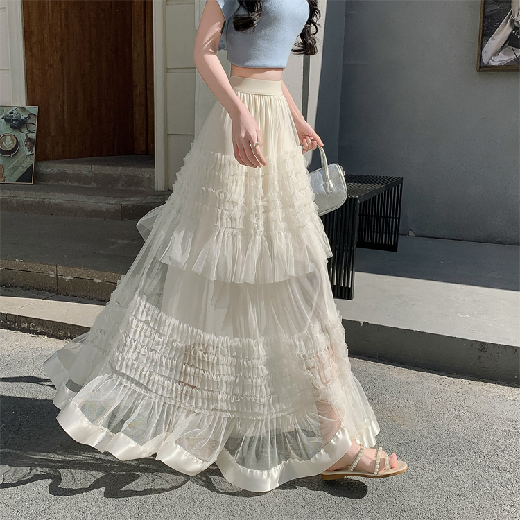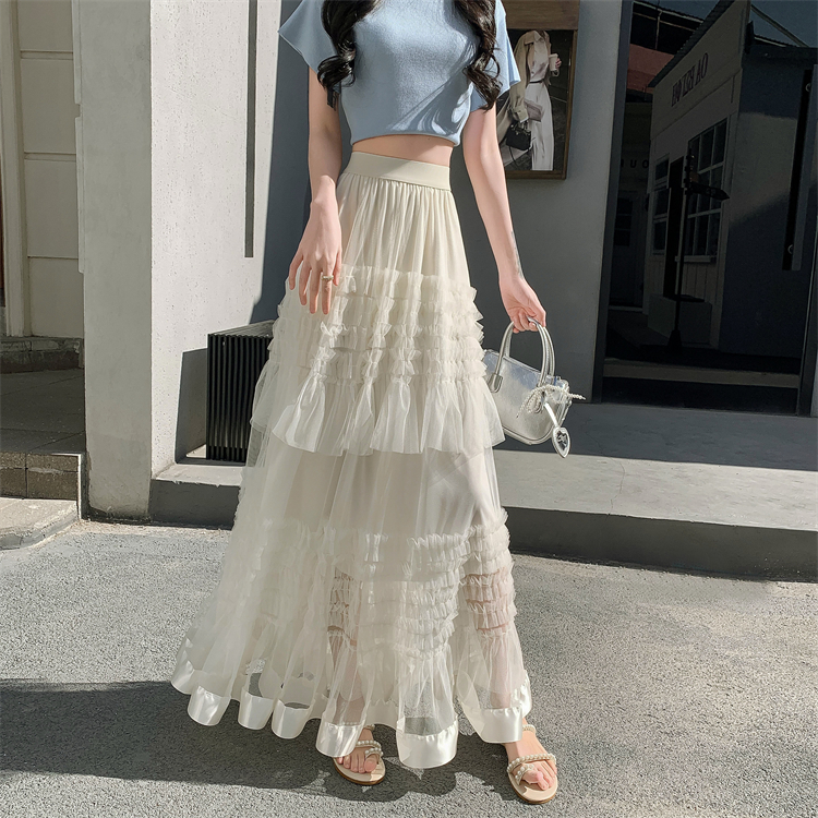 实拍网纱裙层层蛋糕半身裙女春夏2025新款高腰遮胯A字长裙纱裙子