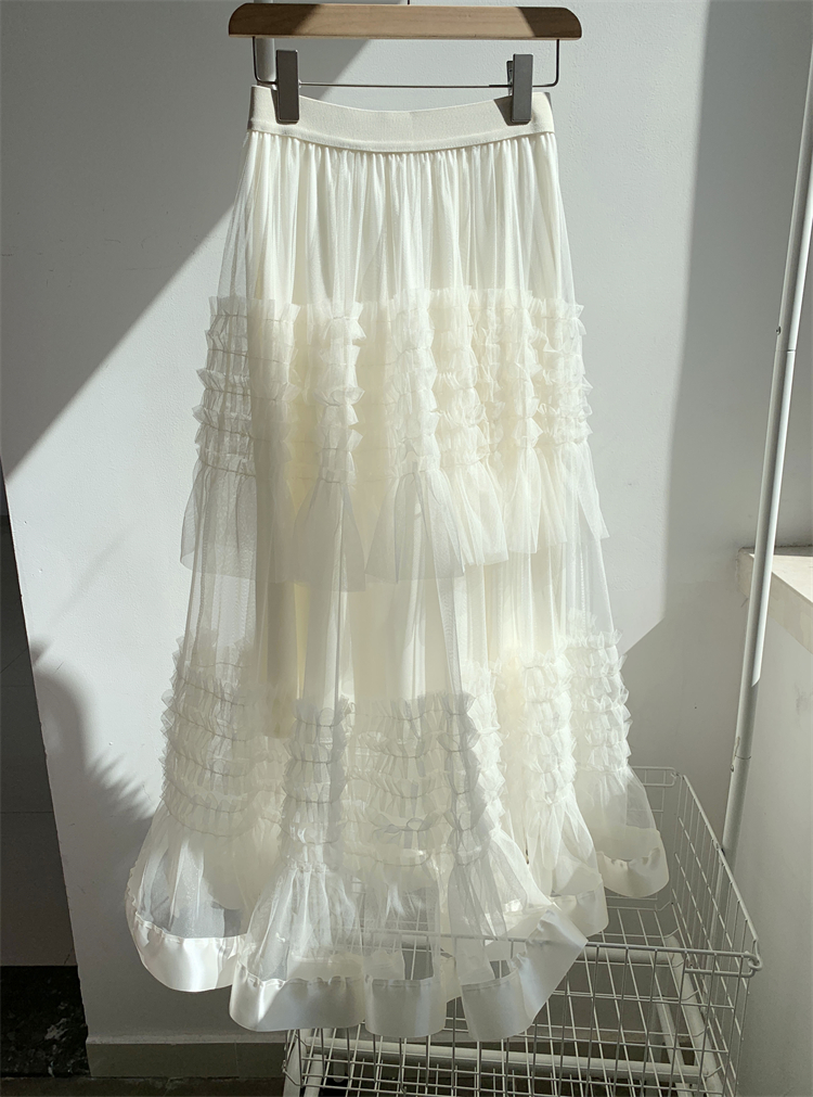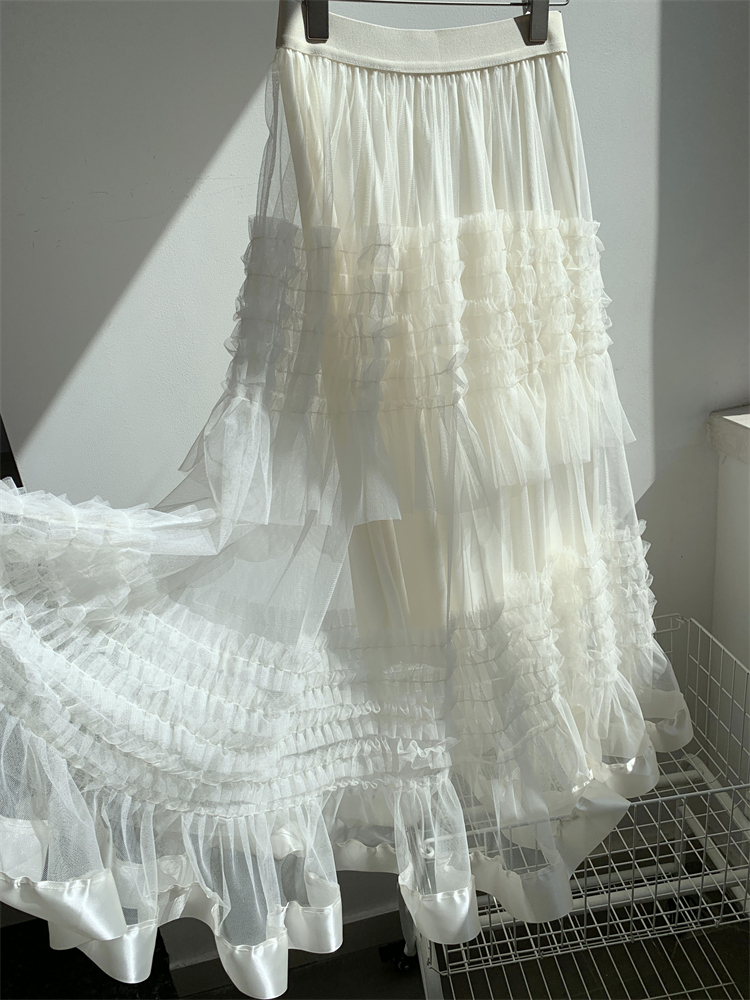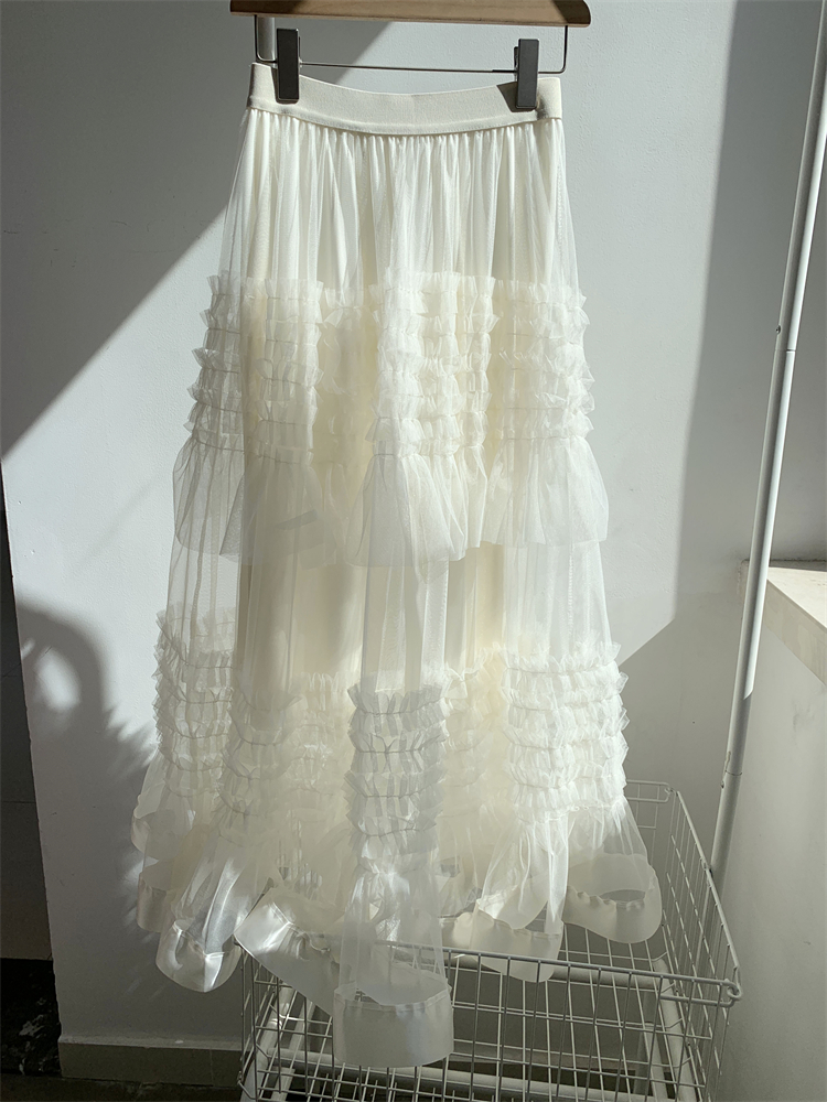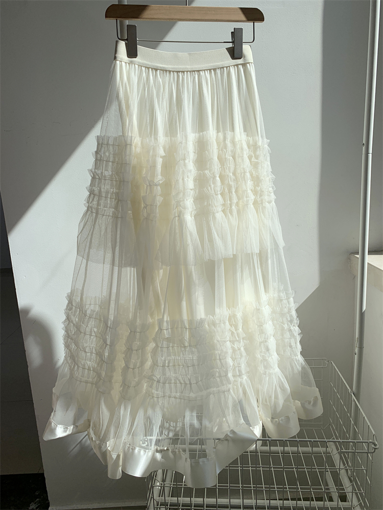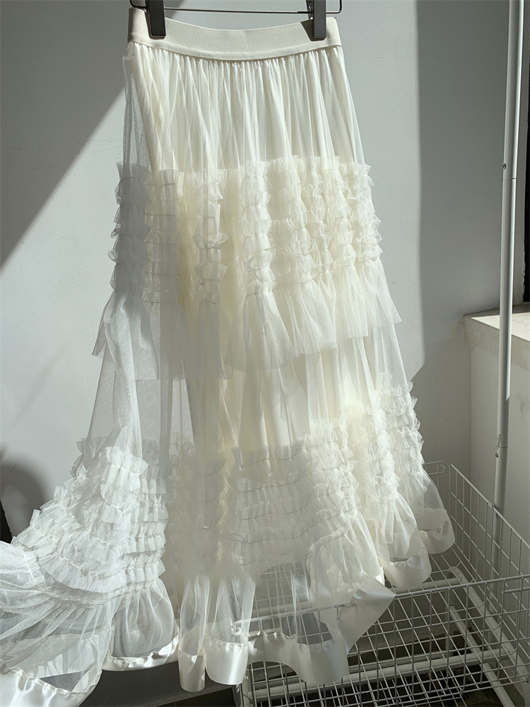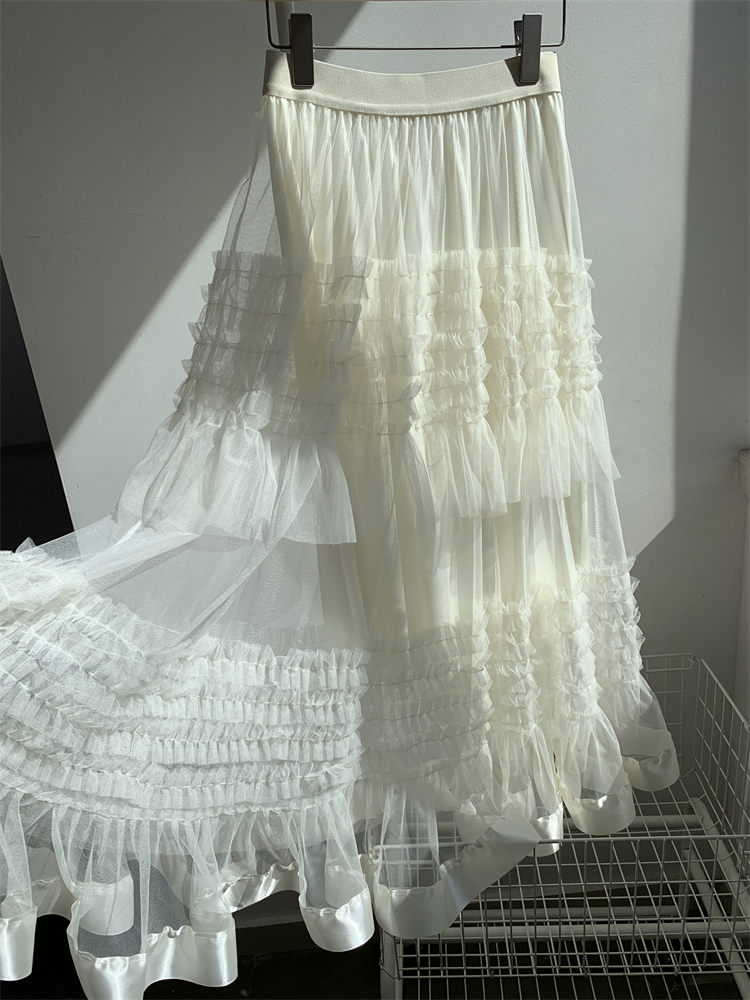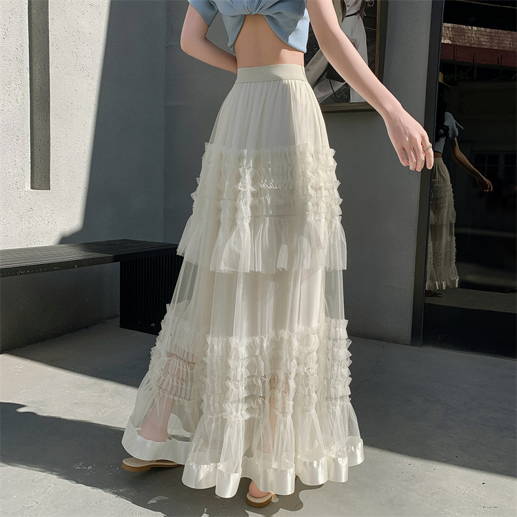 实拍网纱裙层层蛋糕半身裙女春夏2025新款高腰遮胯A字长裙纱裙子