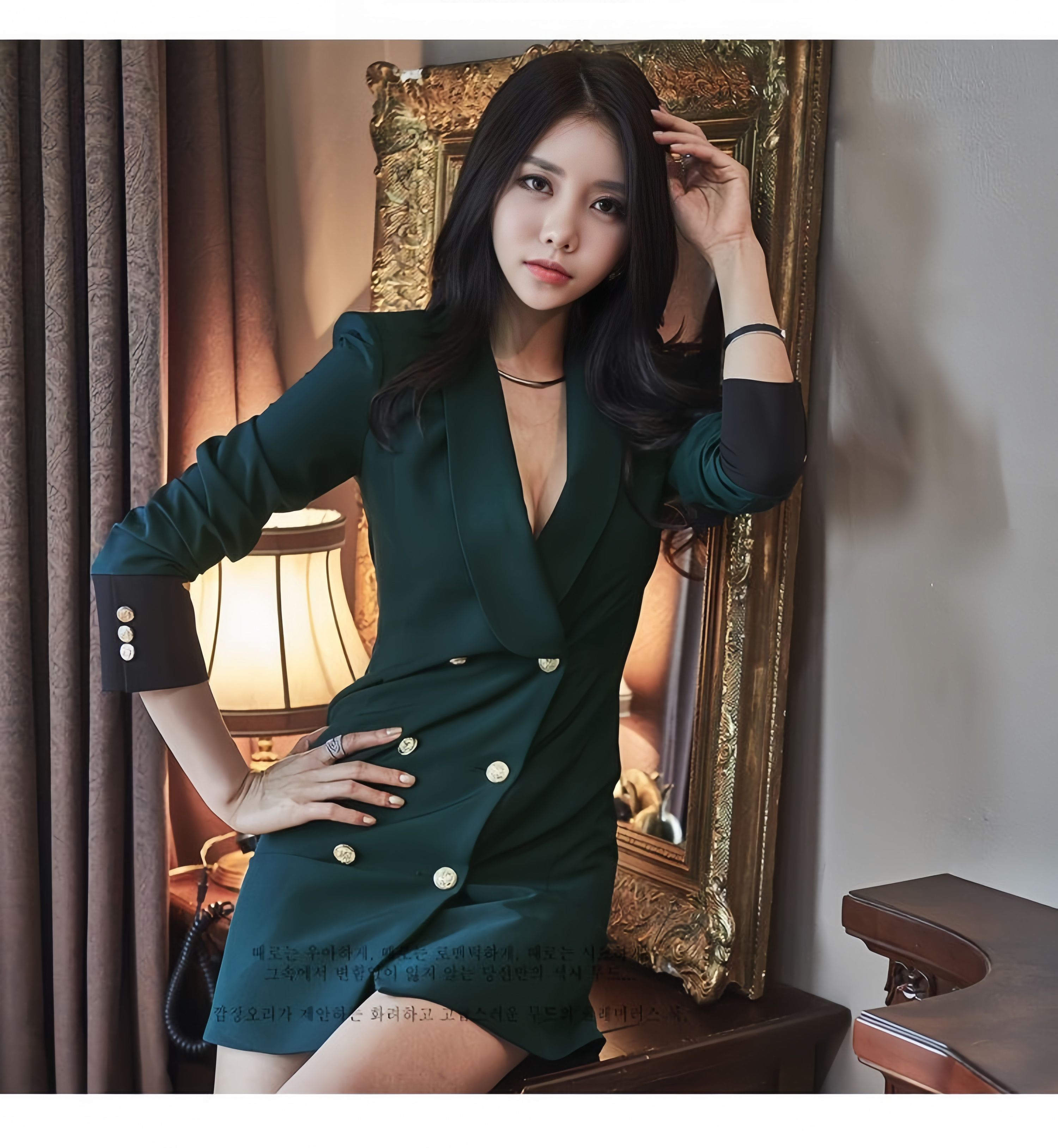 韩版2025新款通勤职业OL双排扣西装外套气质性感修身西装裙