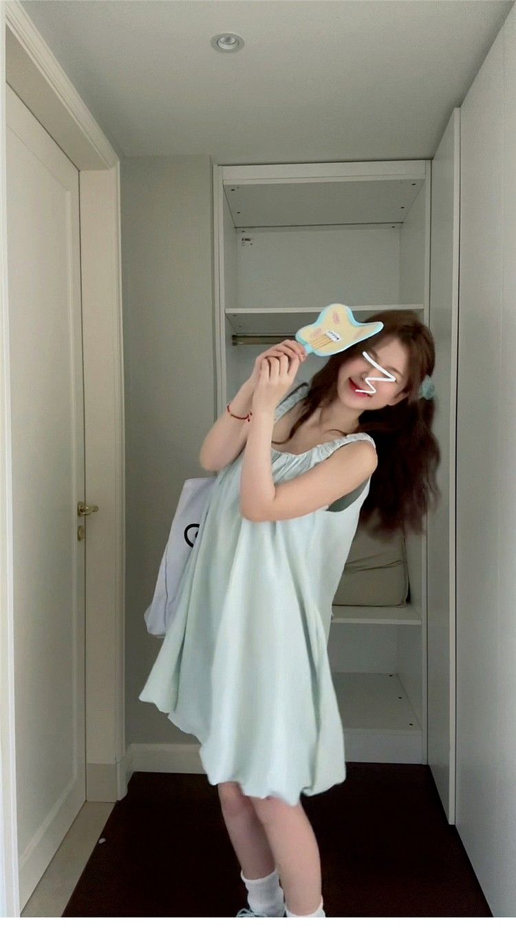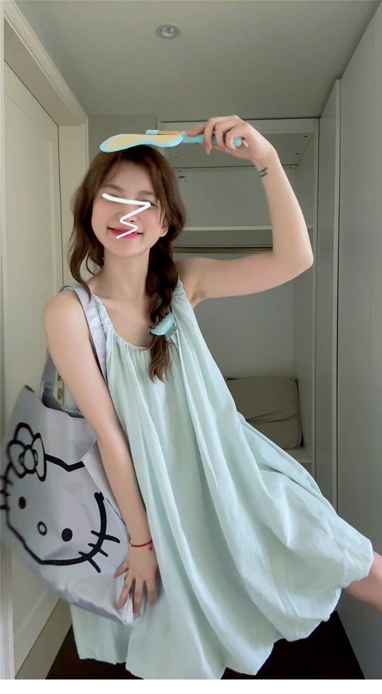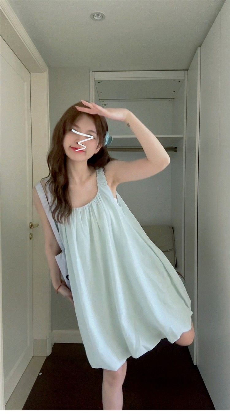 小个子气质U领吊带连衣裙女夏季新款法式时尚花苞裙甜辣妹短裙子