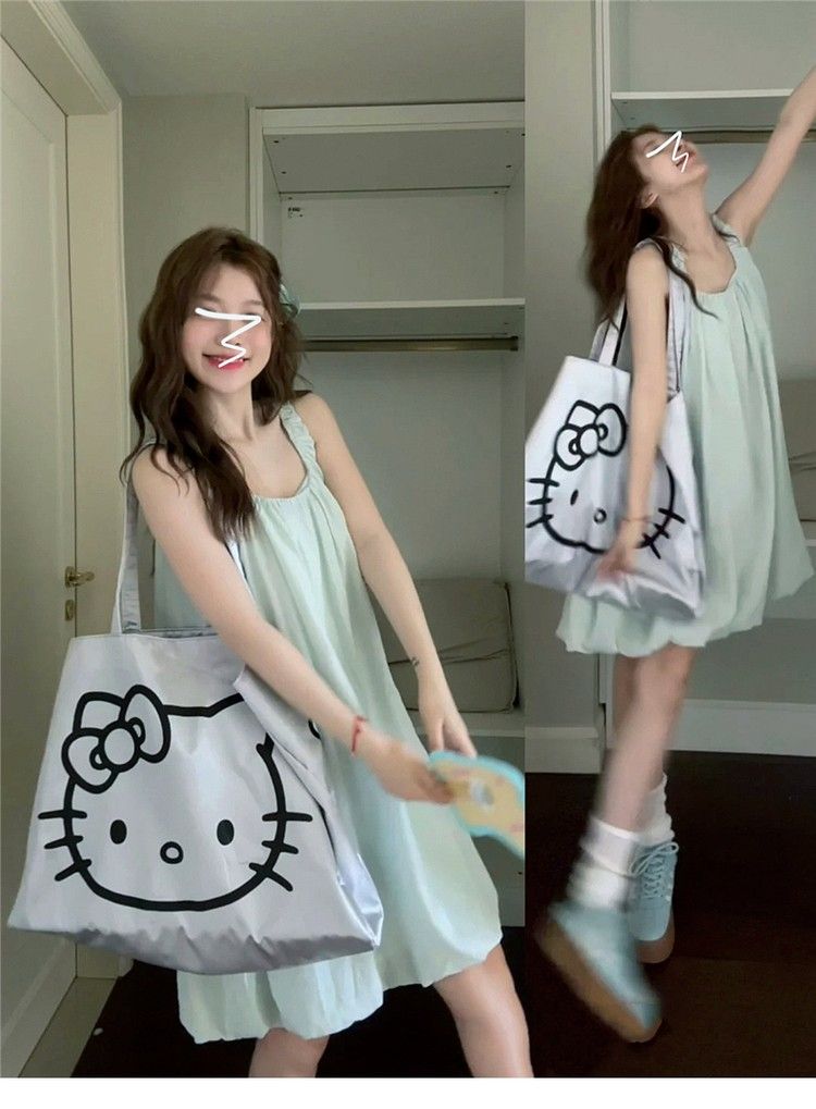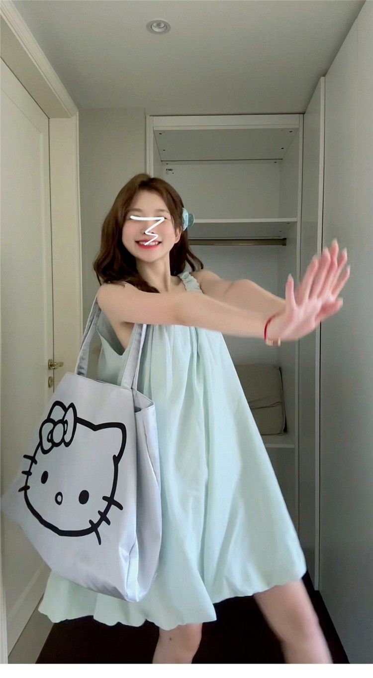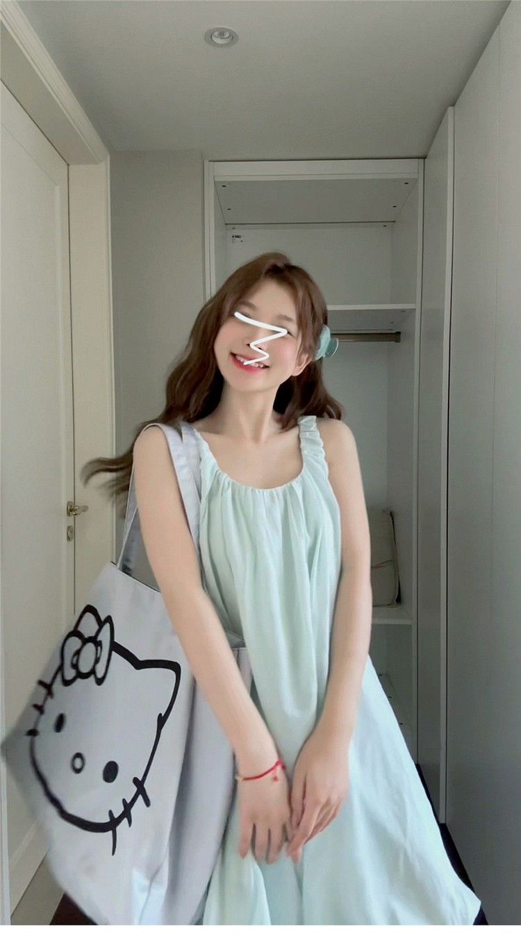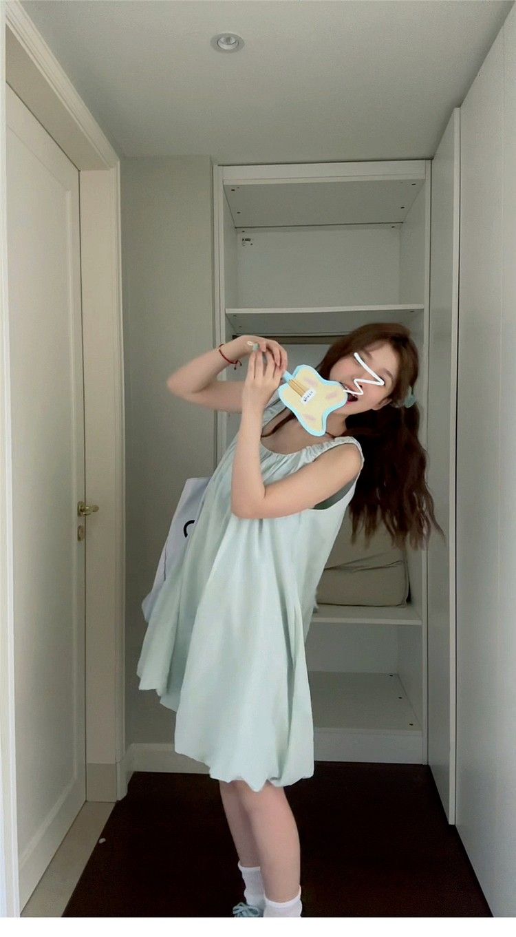 小个子气质U领吊带连衣裙女夏季新款法式时尚花苞裙甜辣妹短裙子
