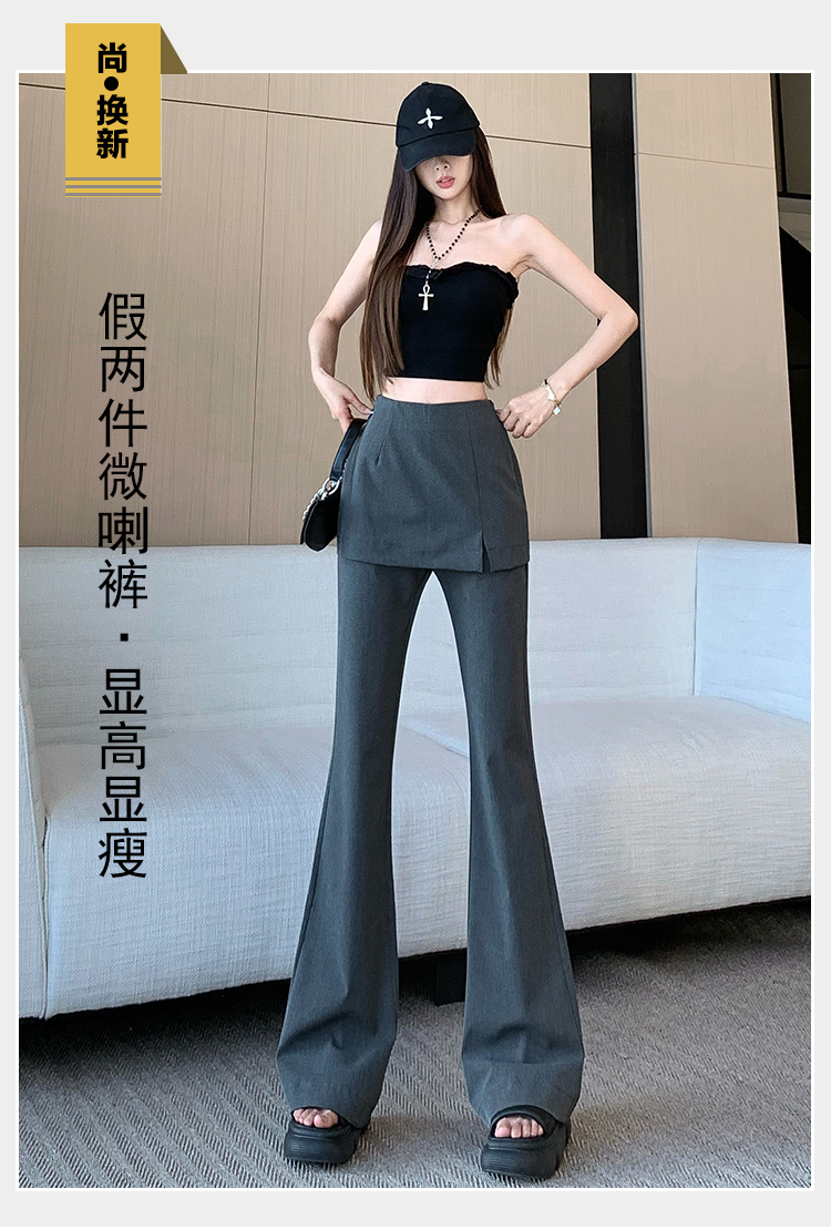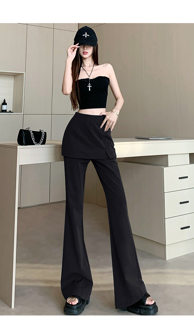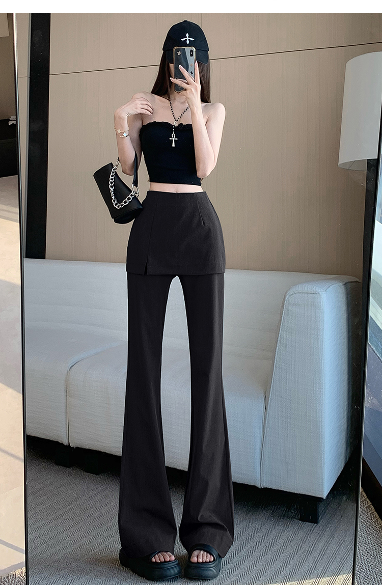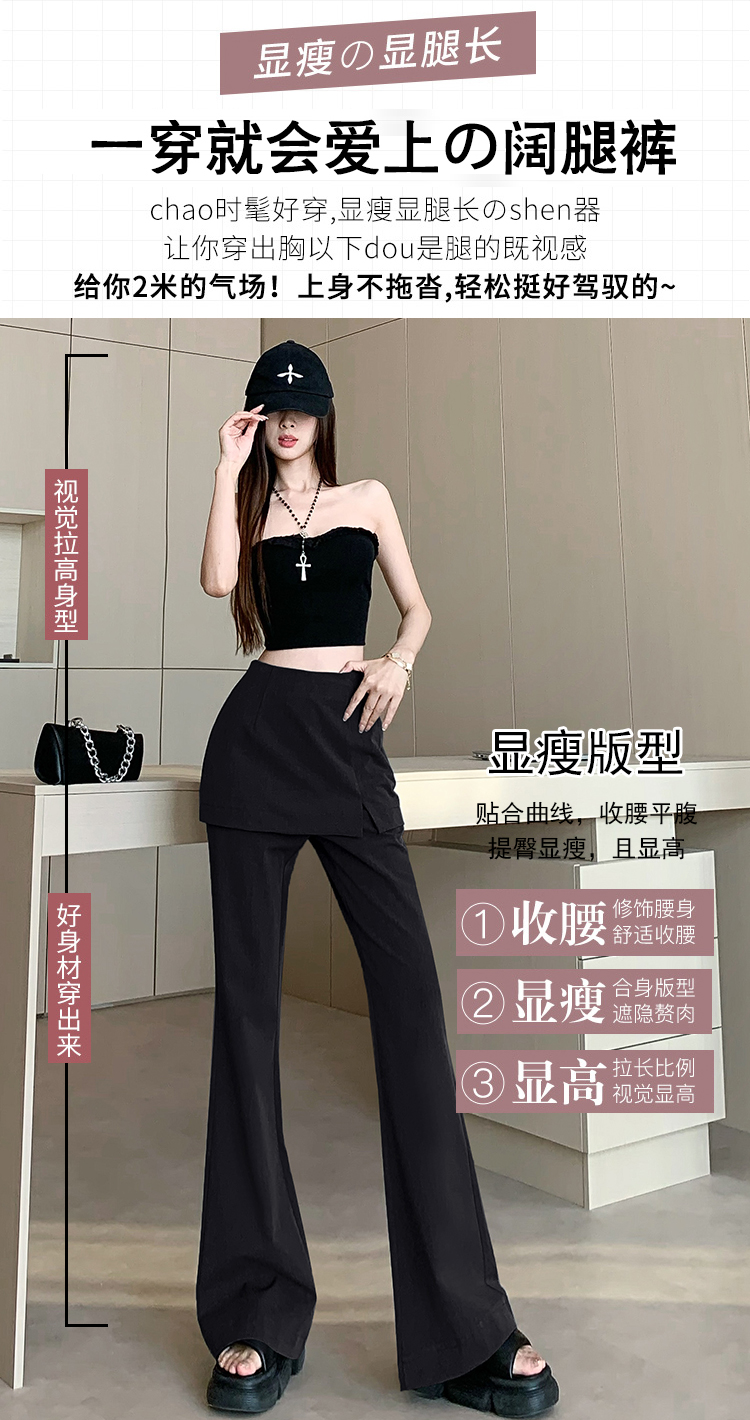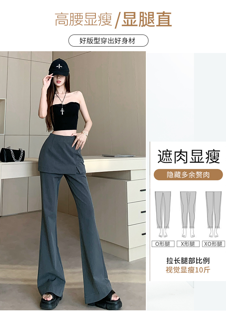 实拍设计感假两件屁帘微喇裤女春季新款高腰显瘦百搭拖地休闲长裤