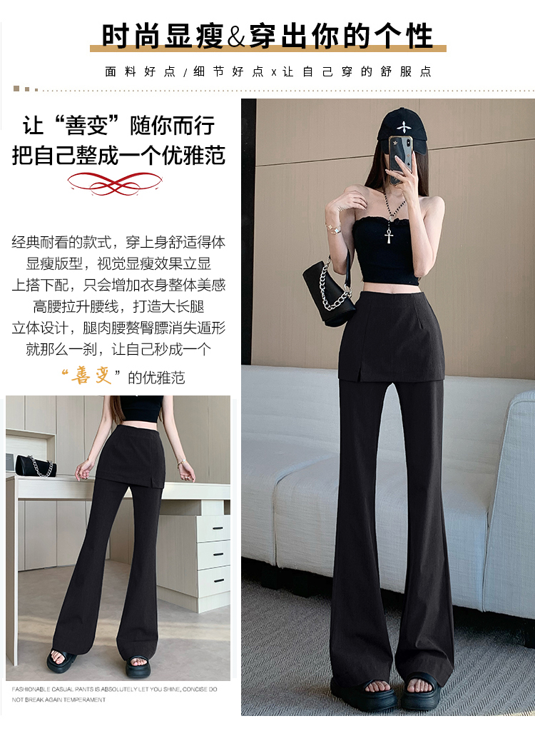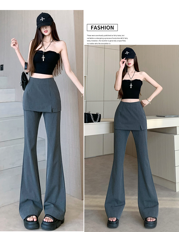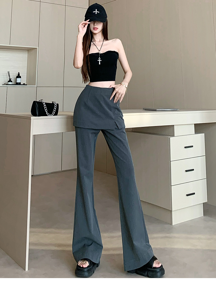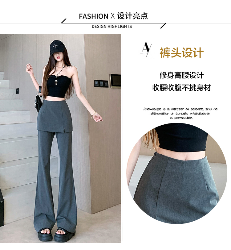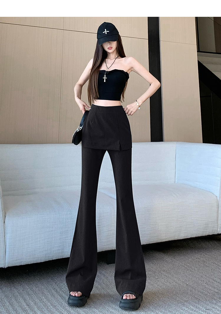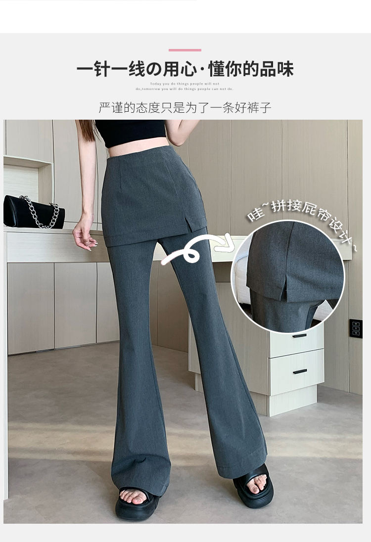 实拍设计感假两件屁帘微喇裤女春季新款高腰显瘦百搭拖地休闲长裤