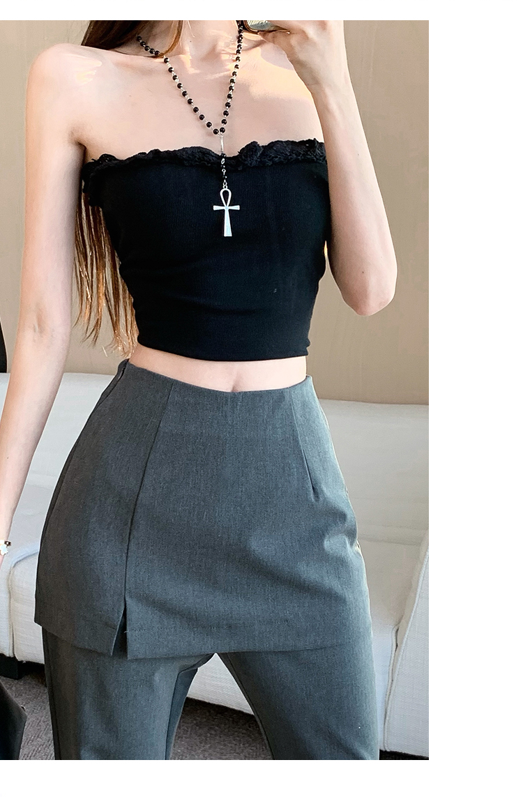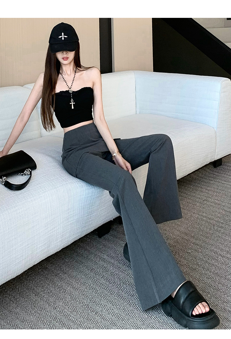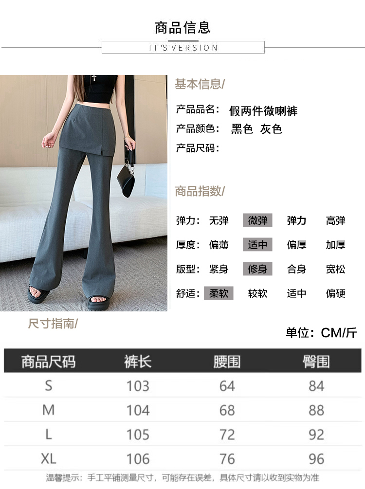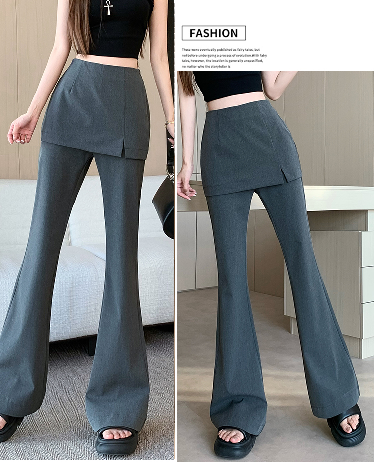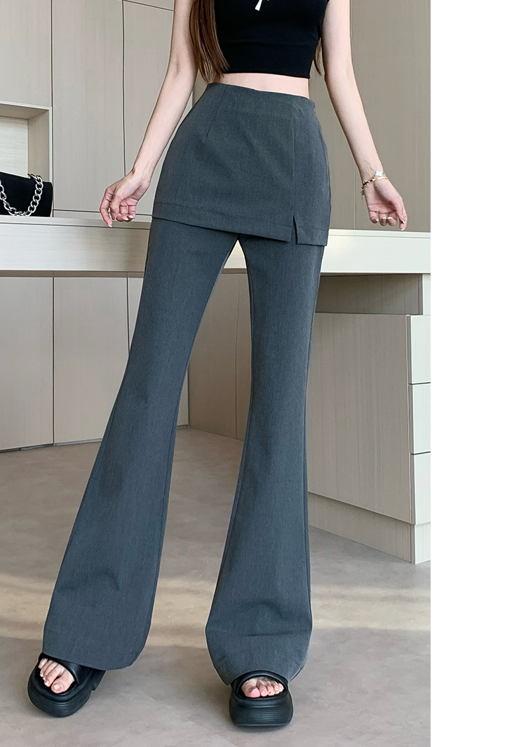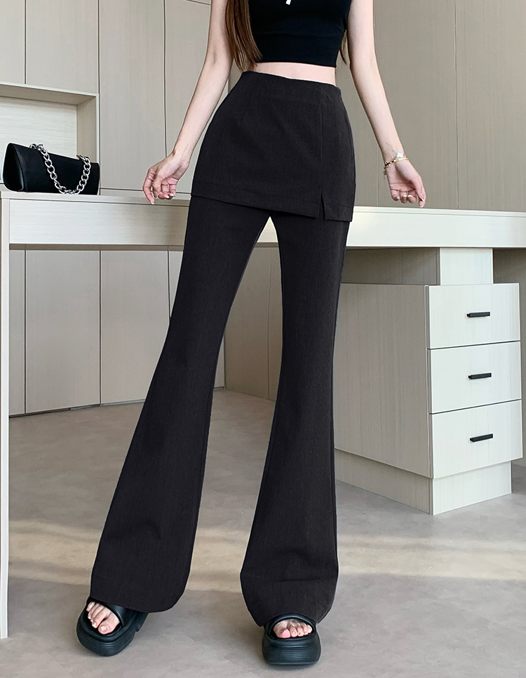 实拍设计感假两件屁帘微喇裤女春季新款高腰显瘦百搭拖地休闲长裤