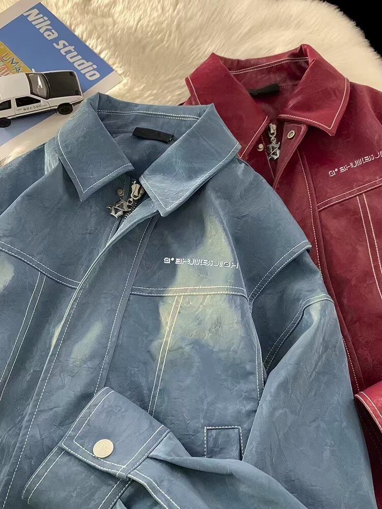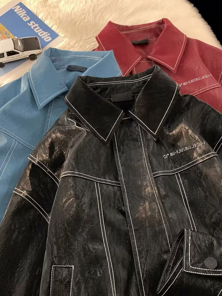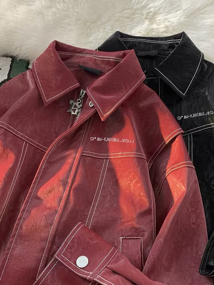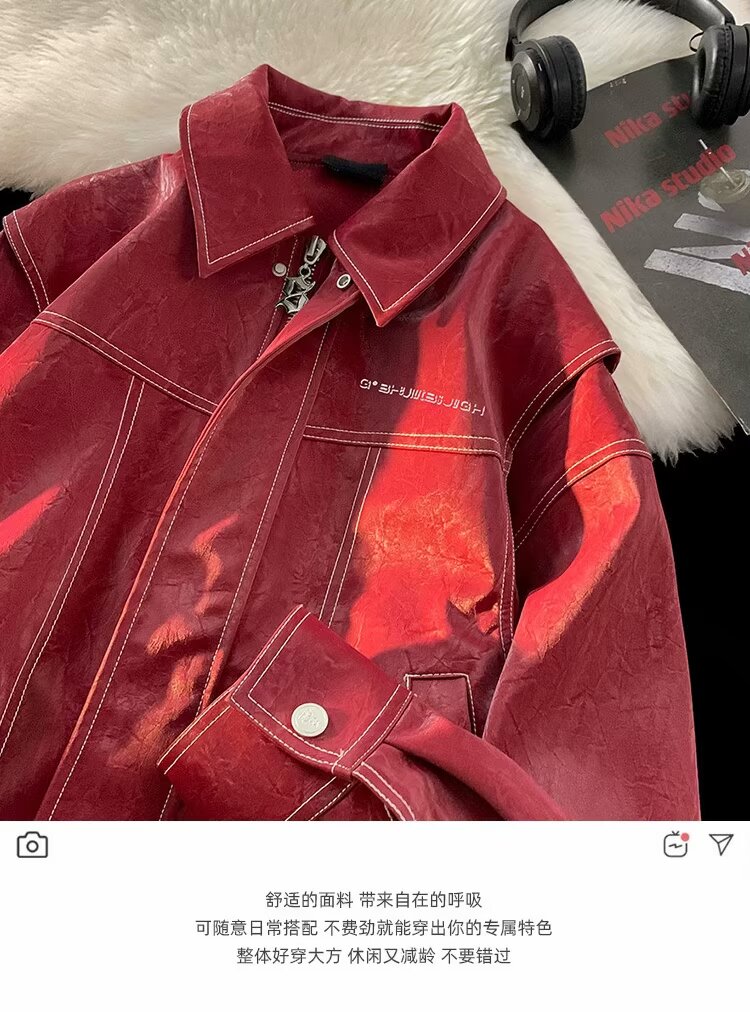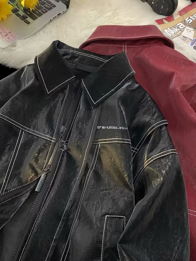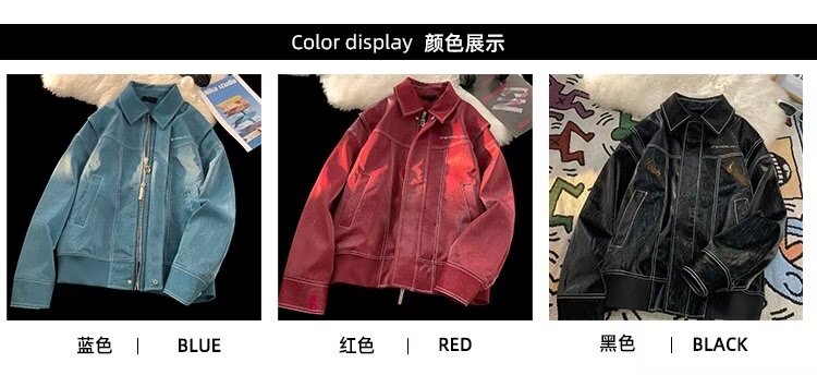 皮衣外套男秋季设计感小众拼接夹克春秋款潮牌美式复古衣服