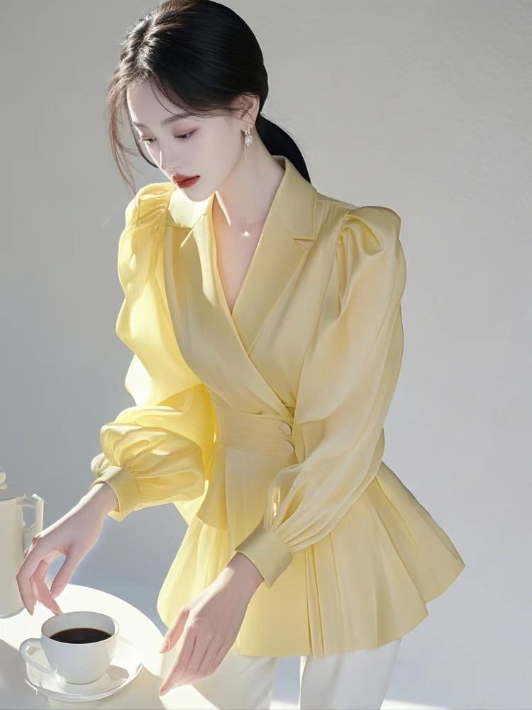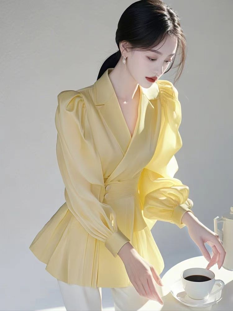 2025超火春季新款独特漂亮上衣法式气质轻奢高级感超好看黄色衬衫