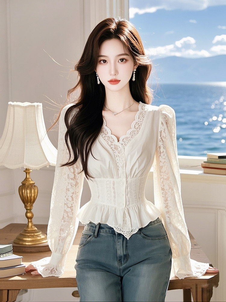 法式风情万种洋气独特别致白色蕾丝衬衫女冬轻奢高级感小众