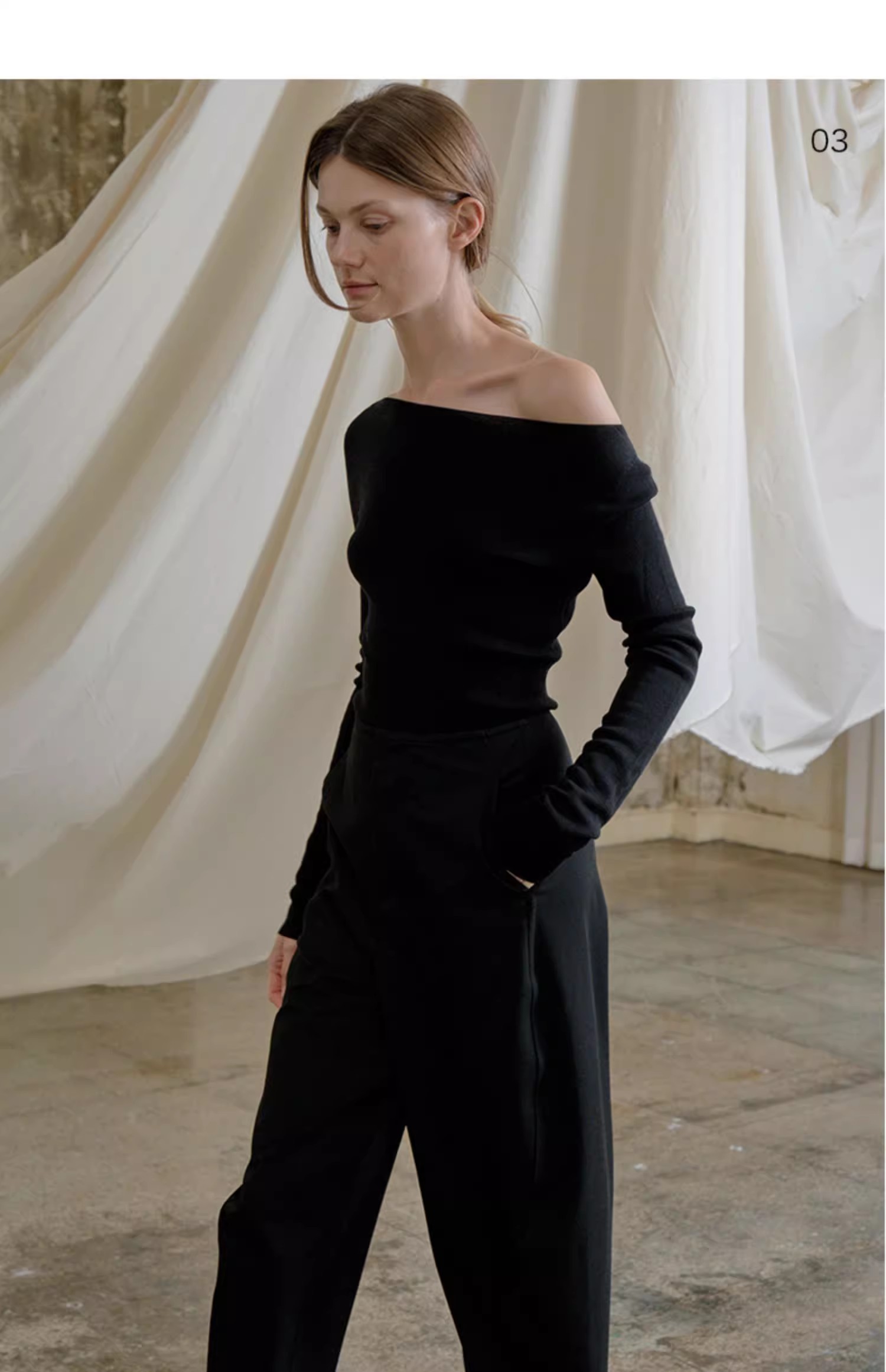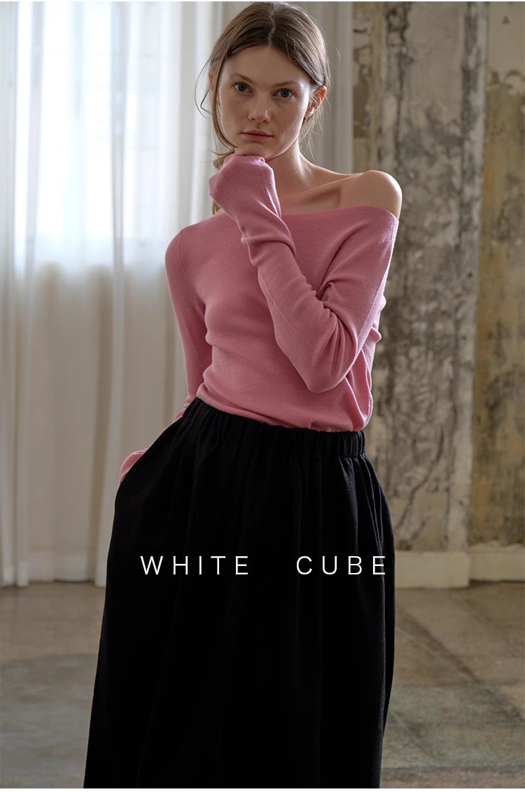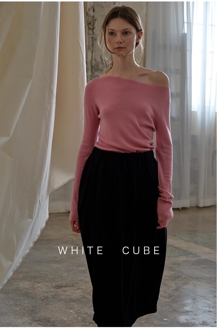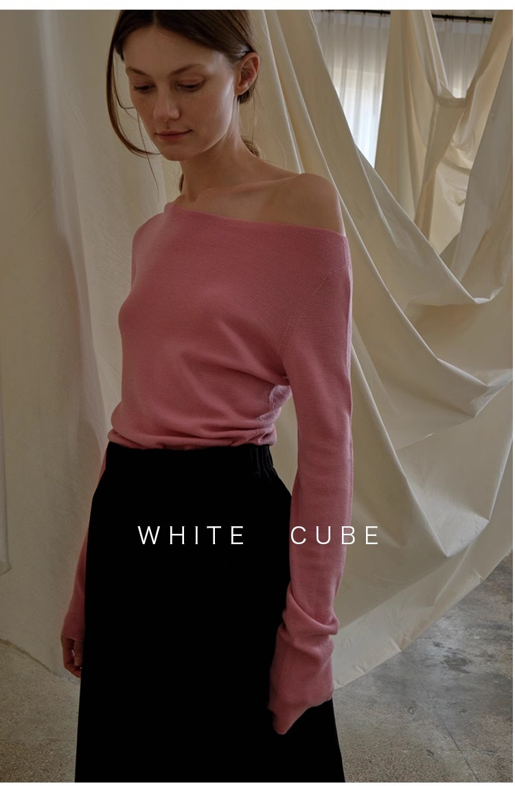 Whitecube wool base sweater long sleeve seamless 0 pressure sense one-shoulder sweater swan neck top women's clothing