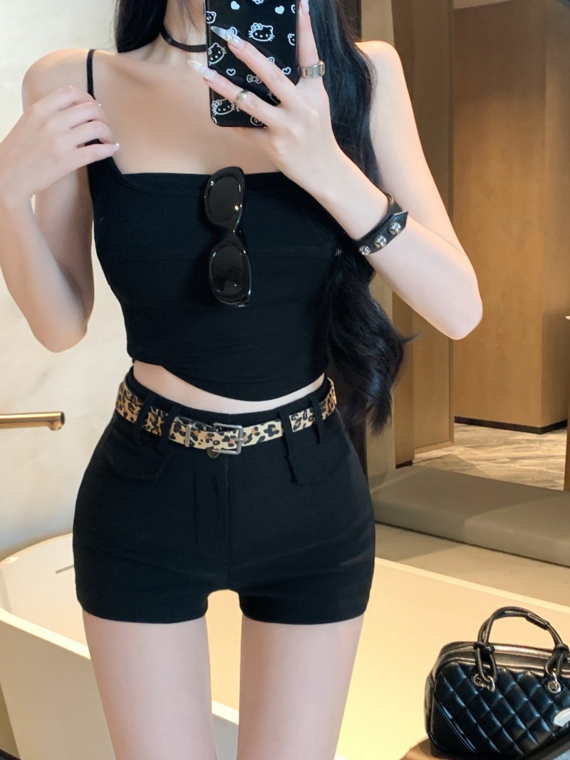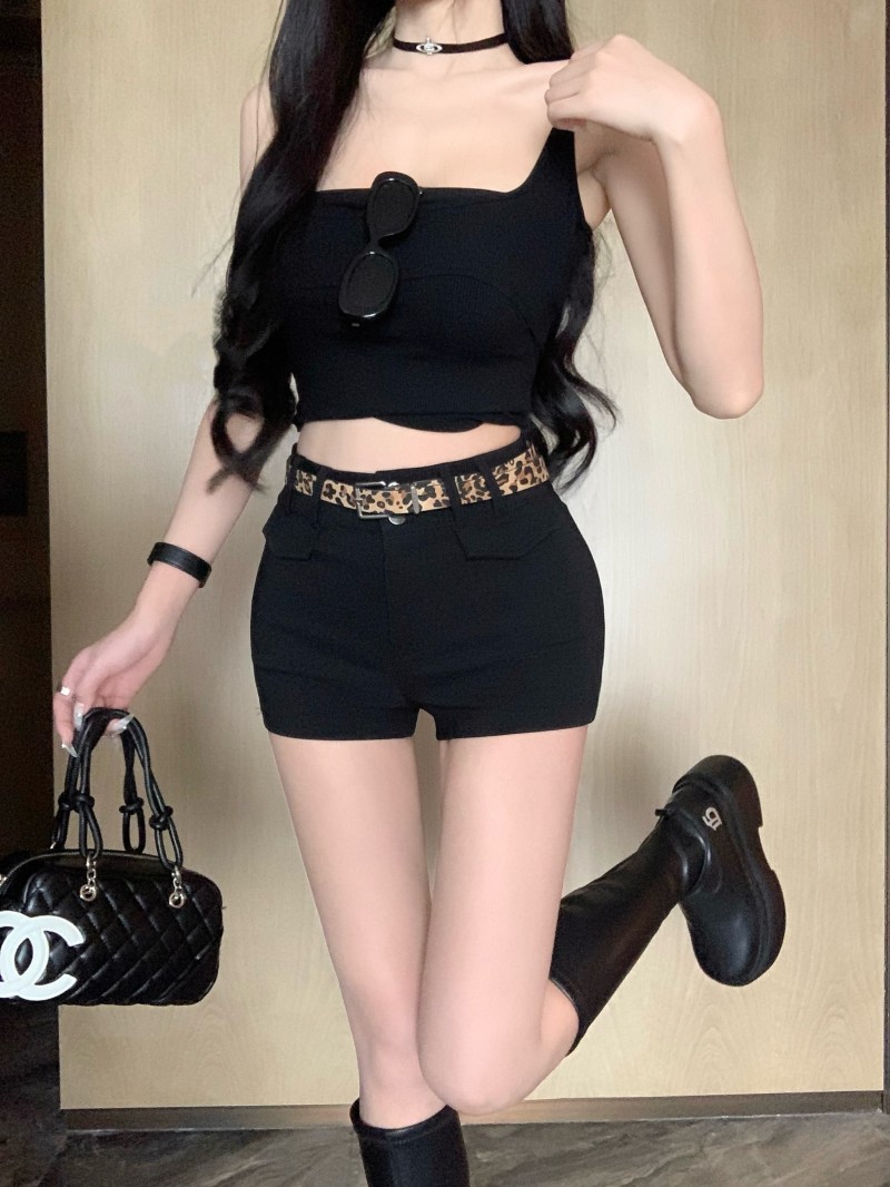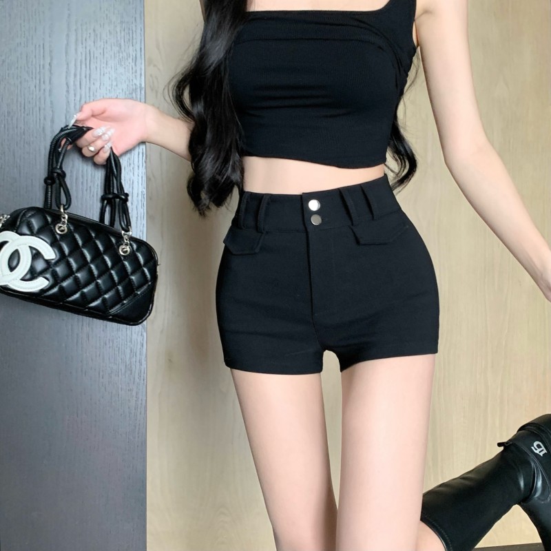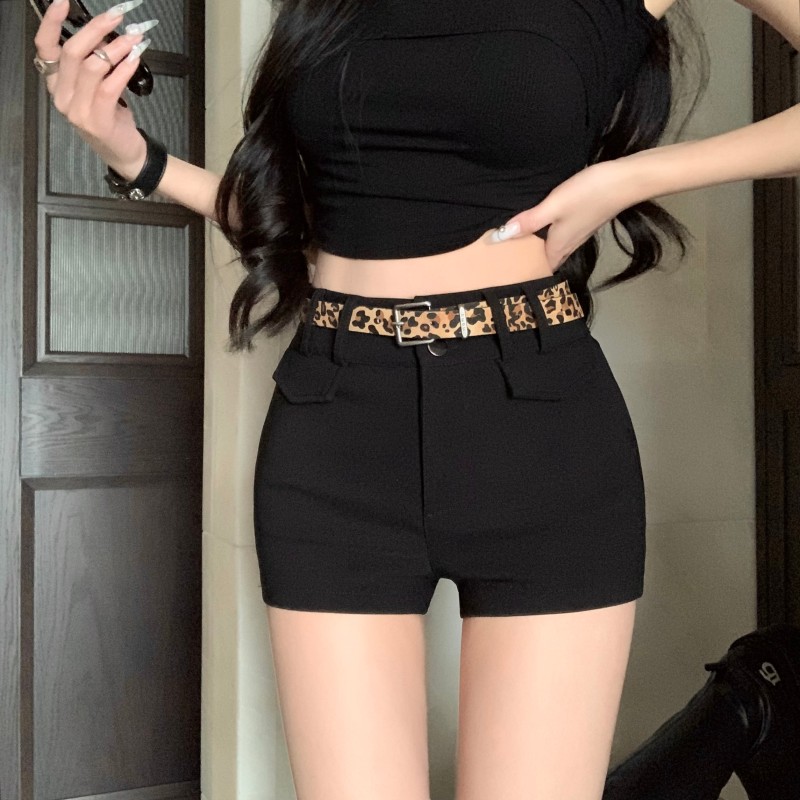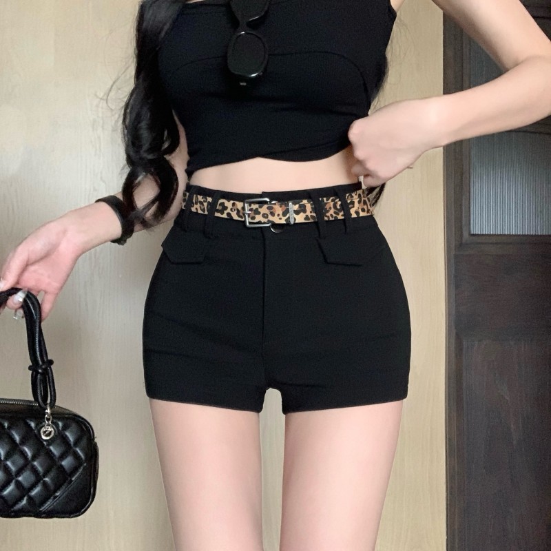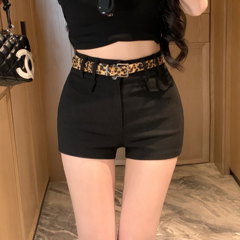 Real shot, real price, hot girl black shorts, Internet celebrity wear retro low waist shorts