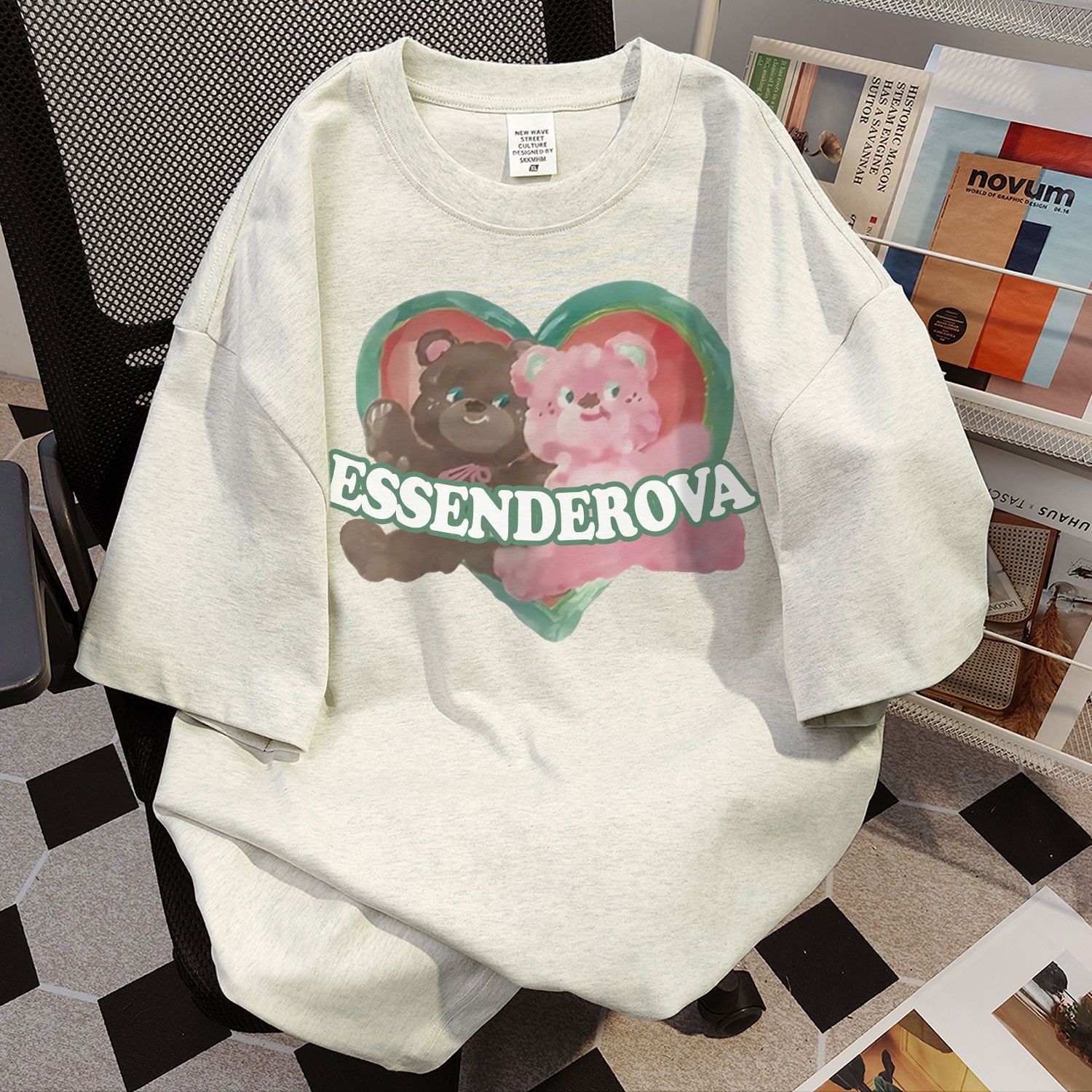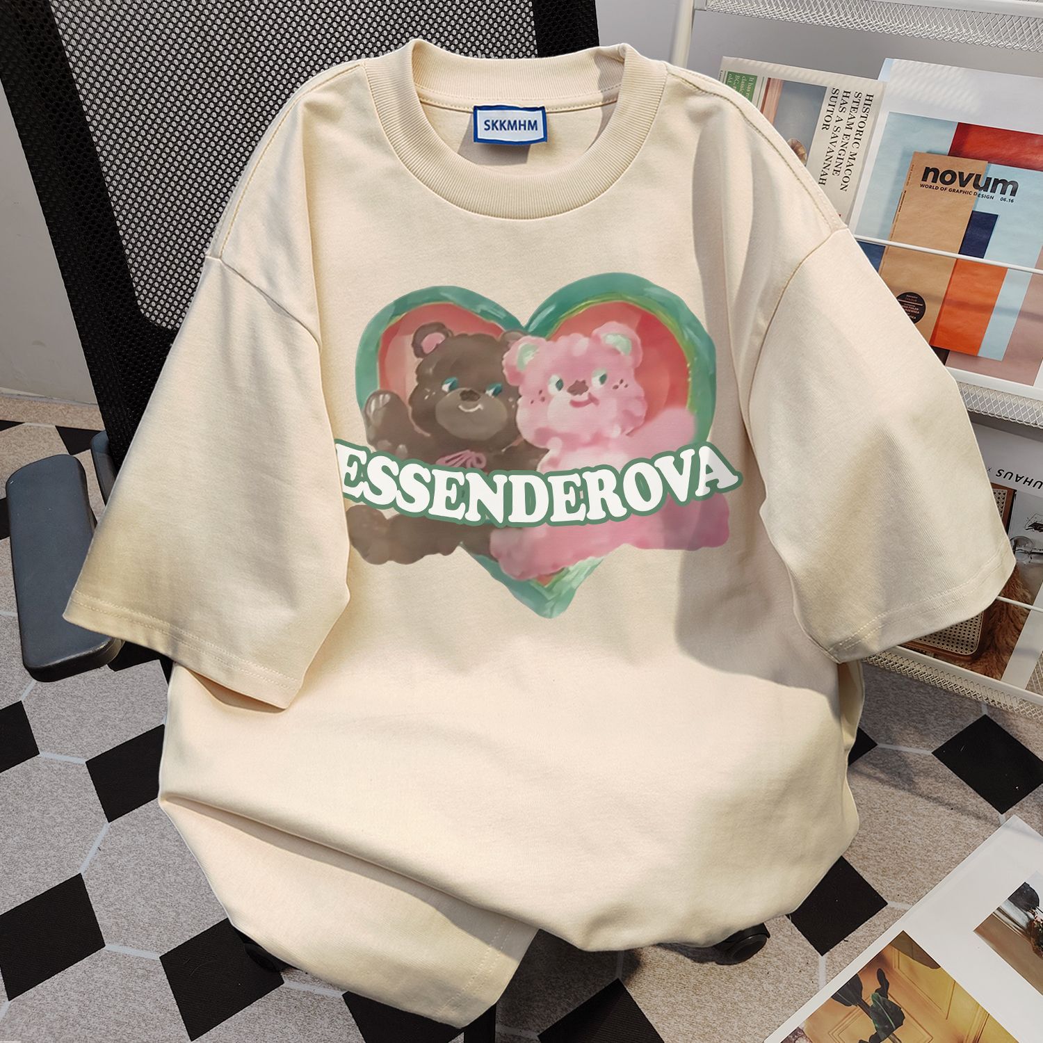 首发官图200克纯棉大码韩版宽松休闲印花T恤夏新款百搭落肩短袖女
