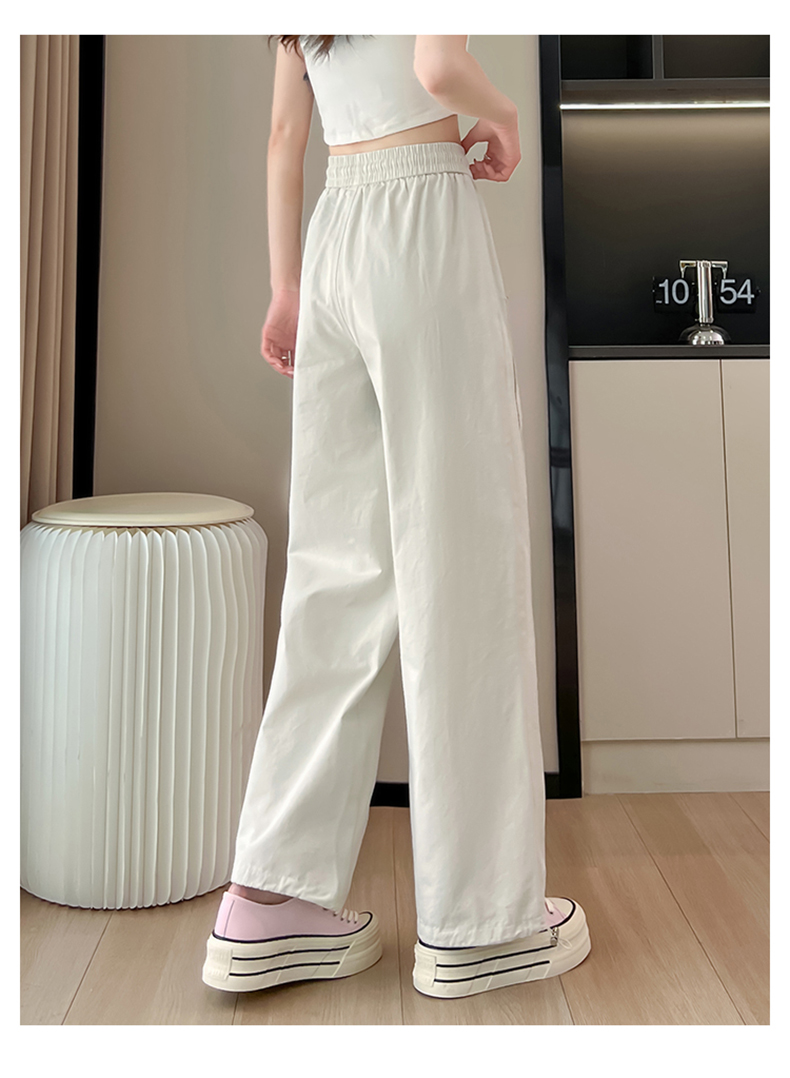 New spring and summer wide-leg pants with cuffs, two-way wear, high-waisted pure cotton sports pants, versatile casual pants, loose retro straight pants