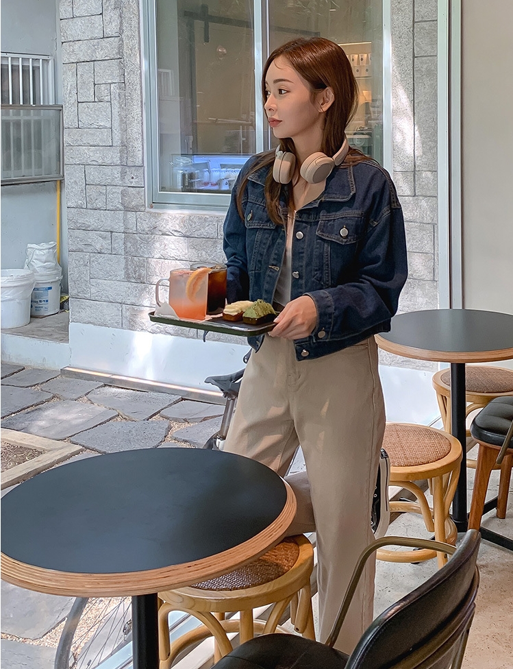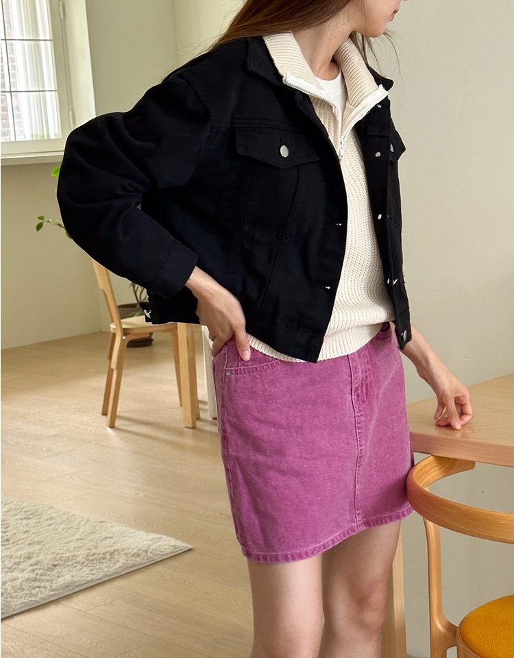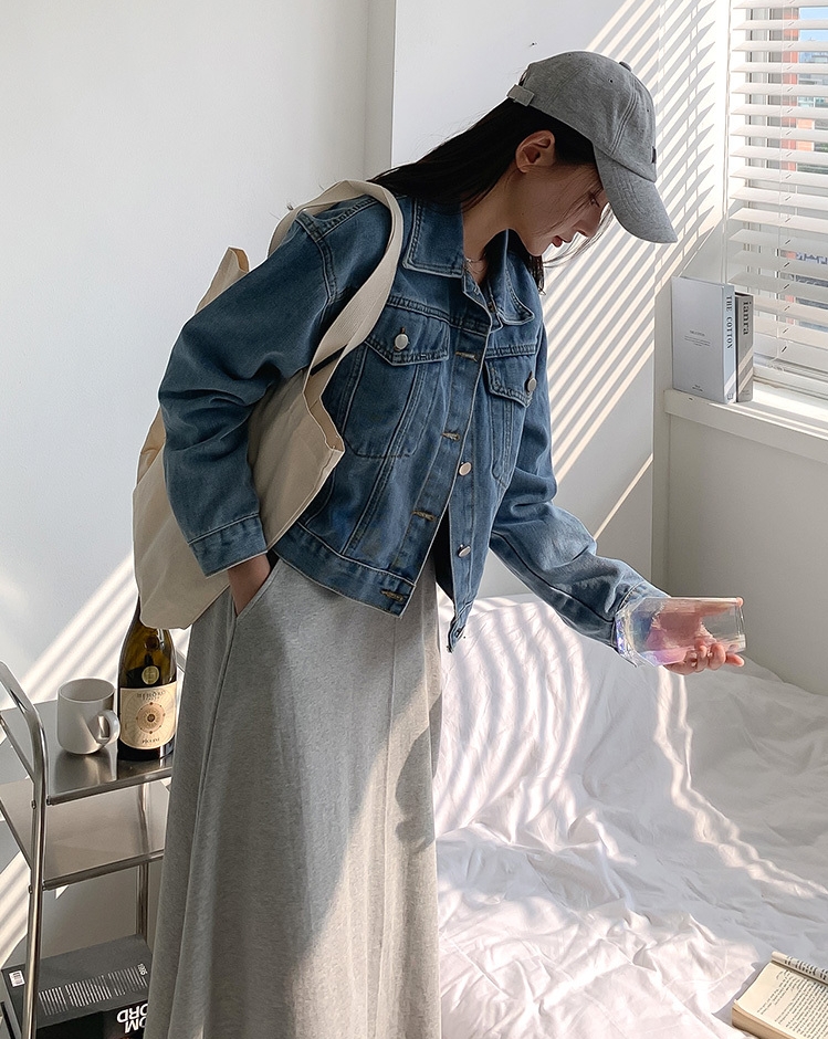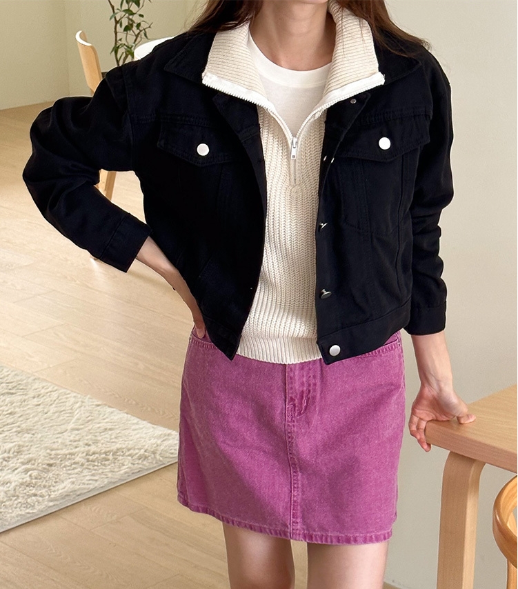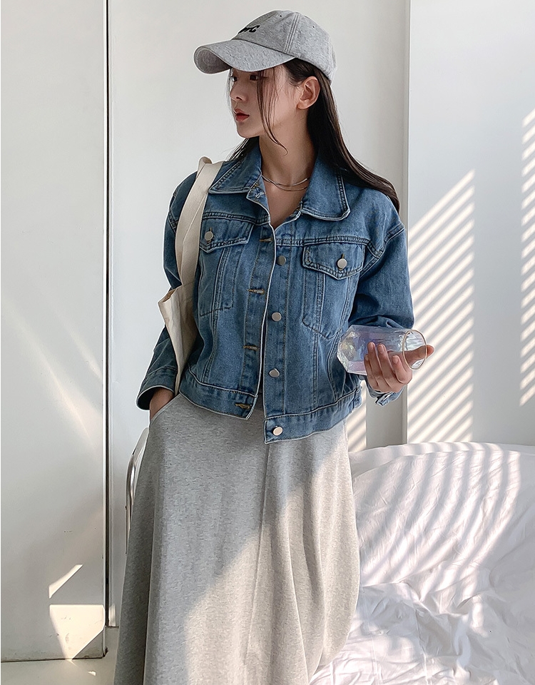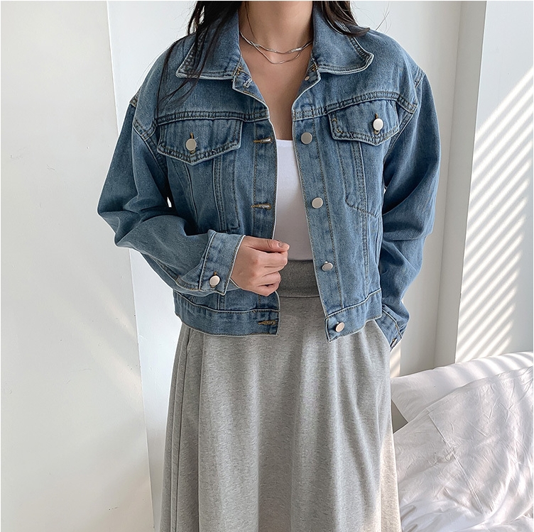 Ready-to-stock spring classic pocket lapel denim short jacket for women