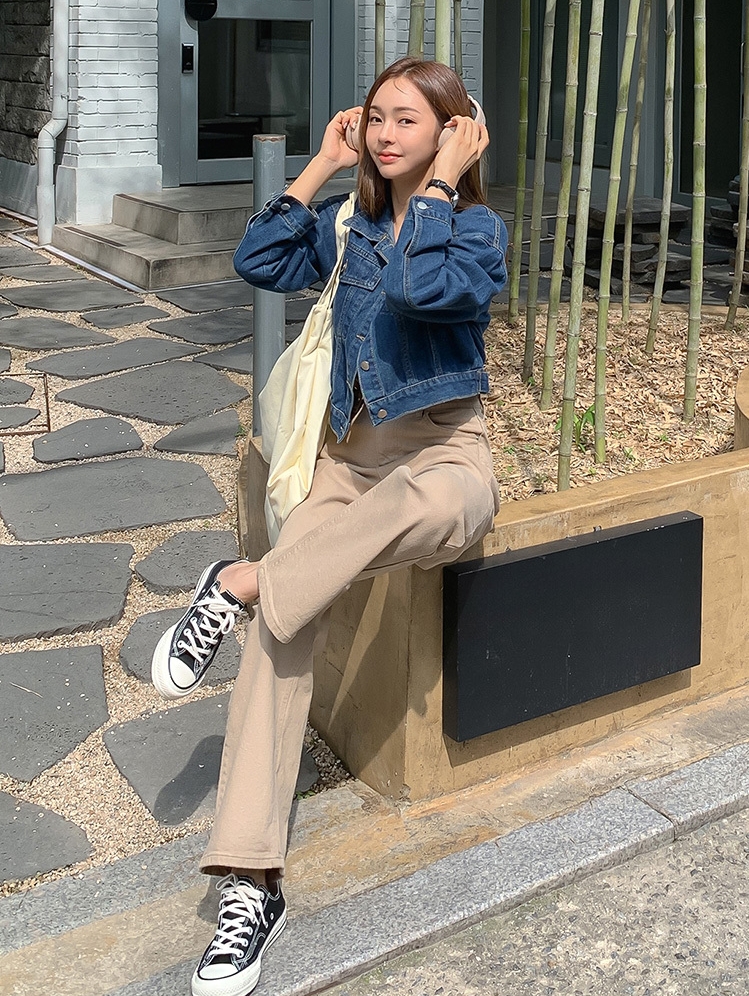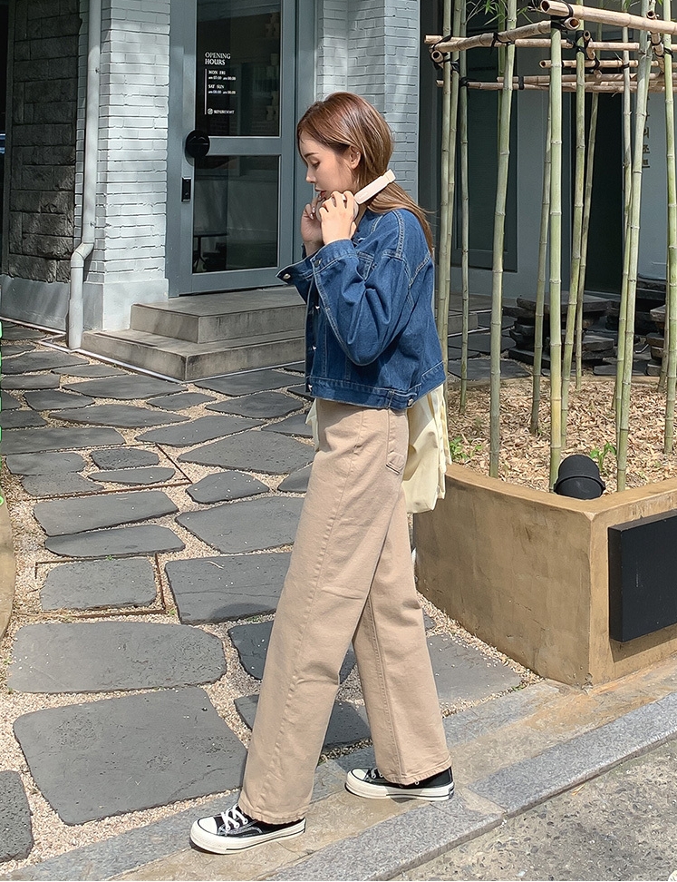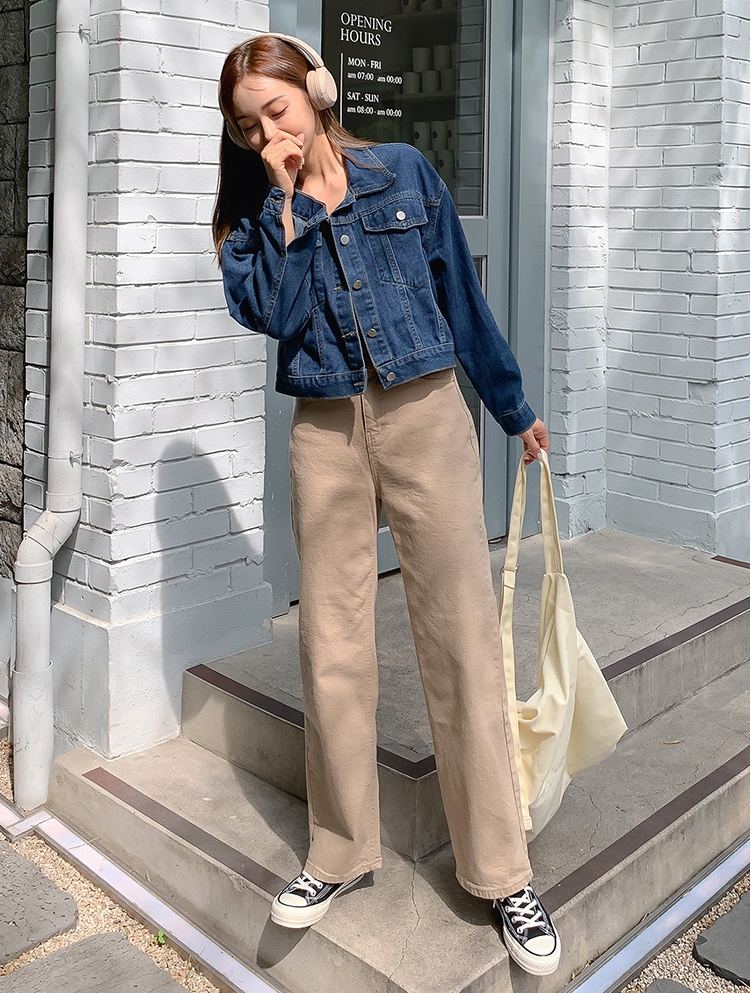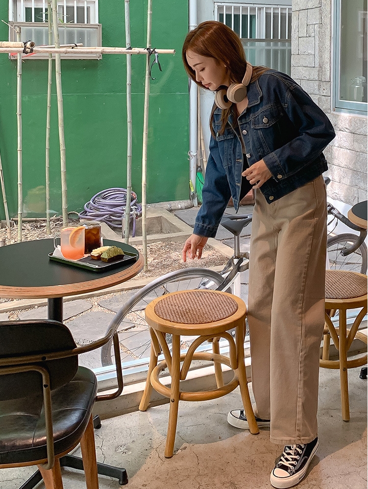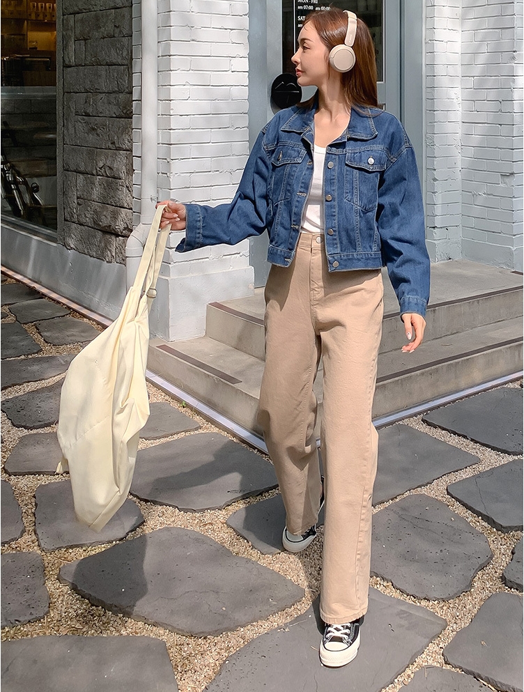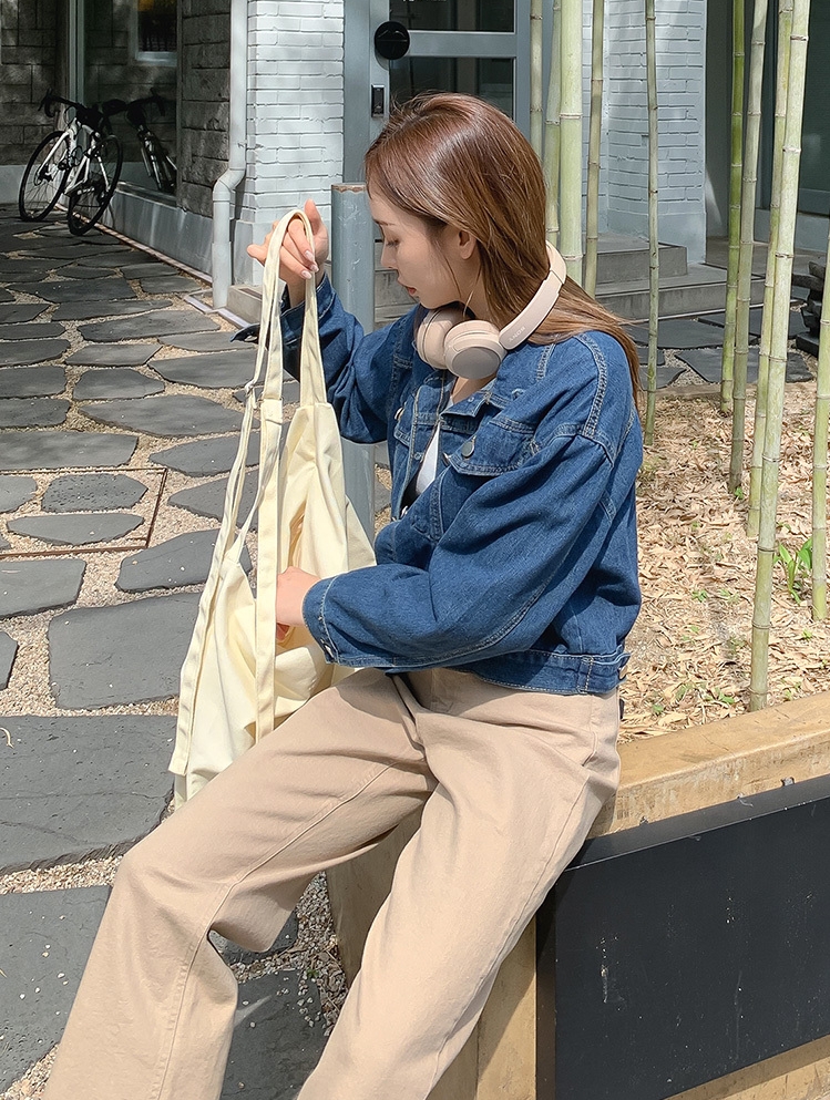 Ready-to-stock spring classic pocket lapel denim short jacket for women