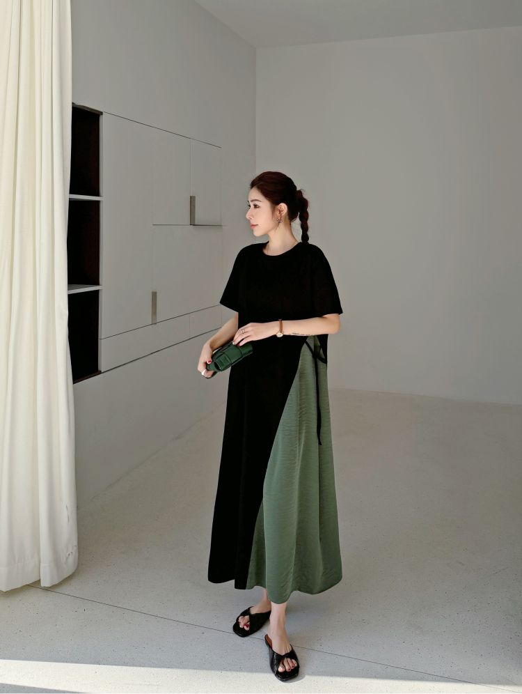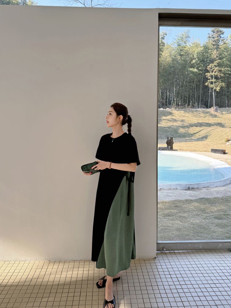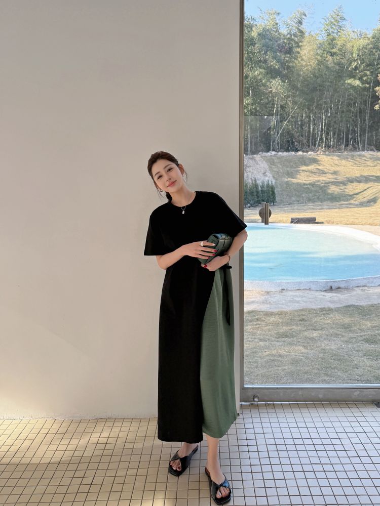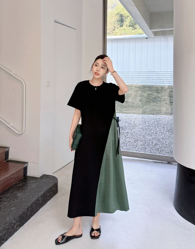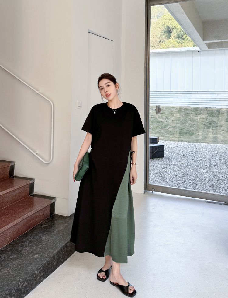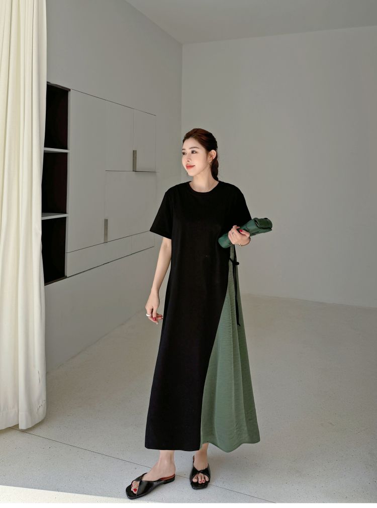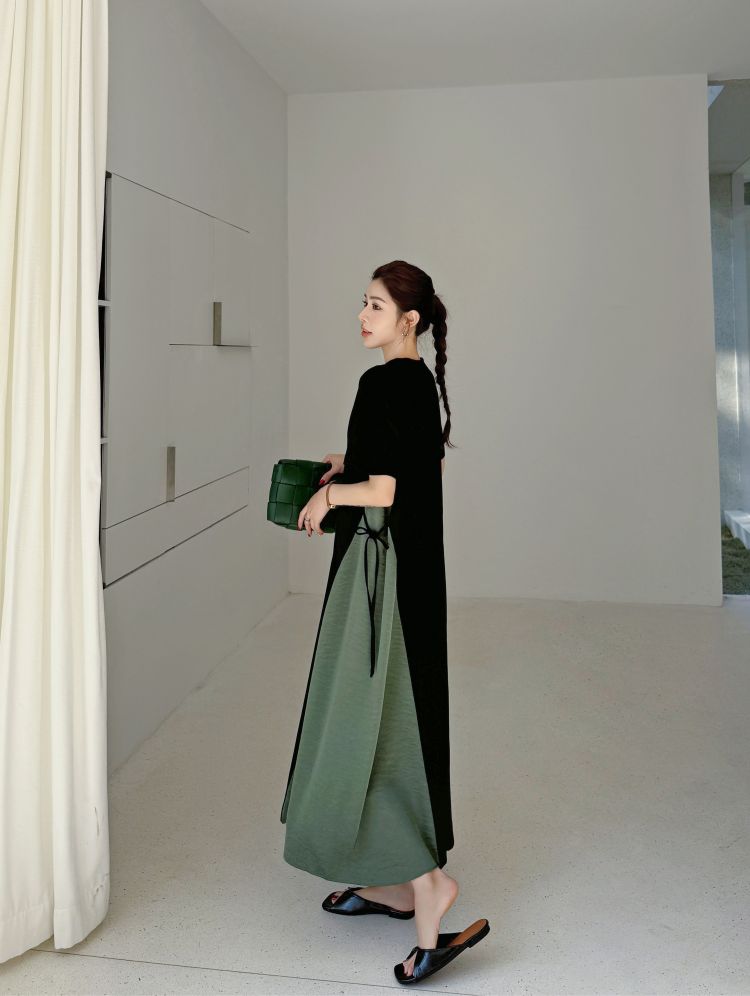 Real shot in stock 2025 summer new style/long plus size spliced acetate satin slim French lace short-sleeved dress