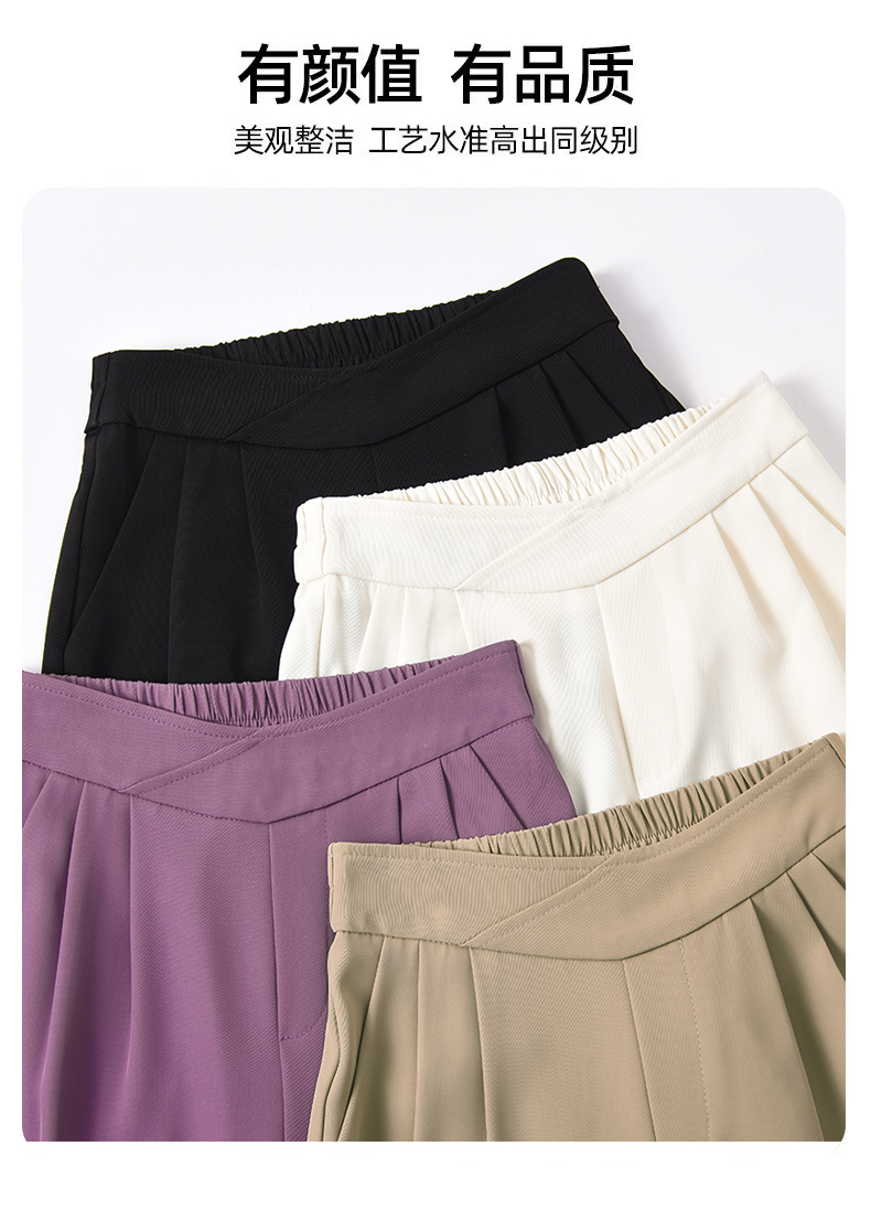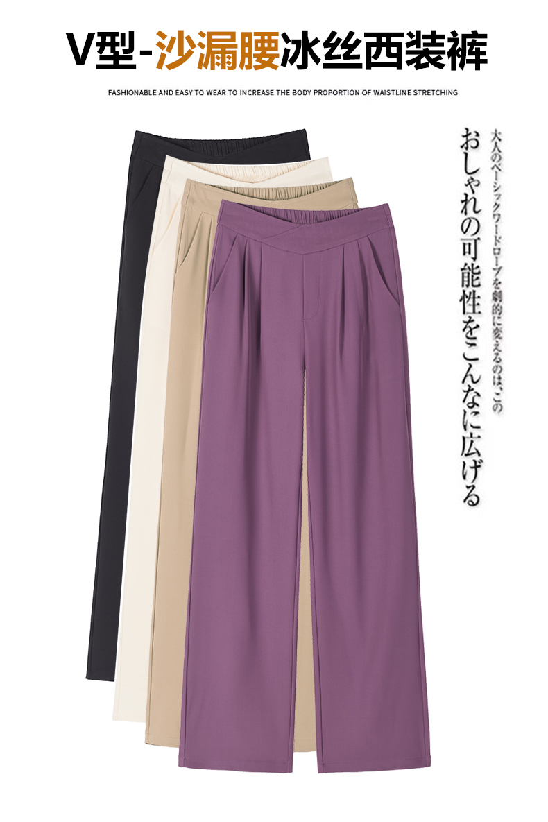 实拍#大码黑色低腰修身V型西裤 美式辣妹复古休闲显瘦阔腿冰丝裤